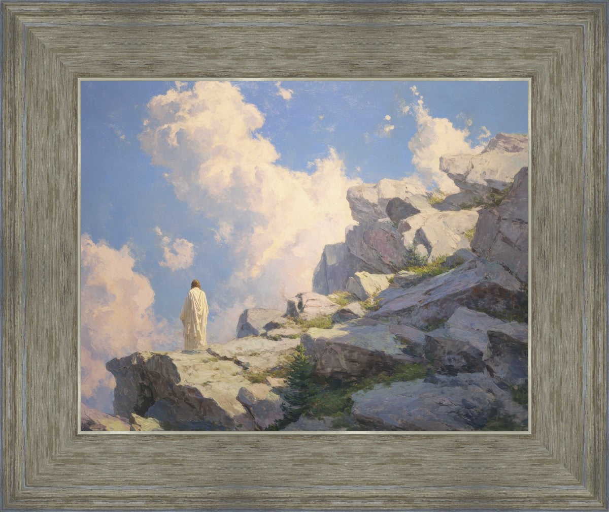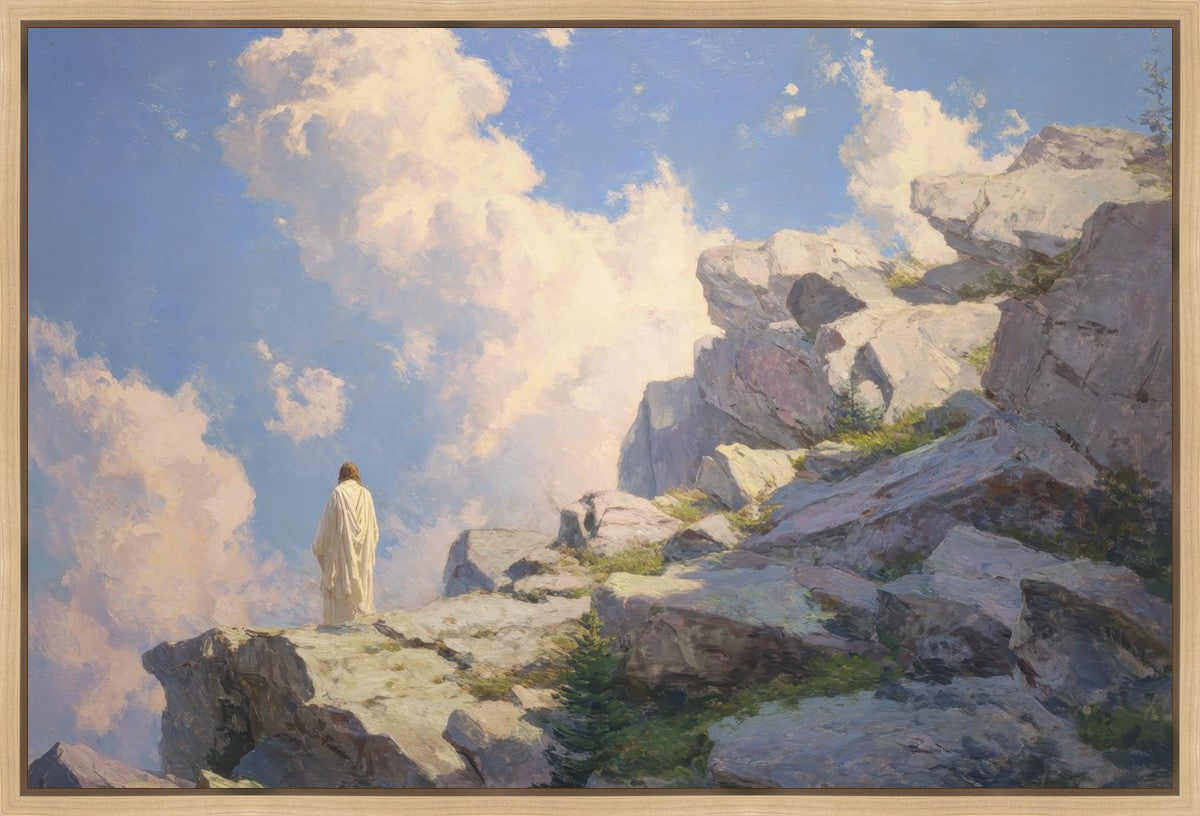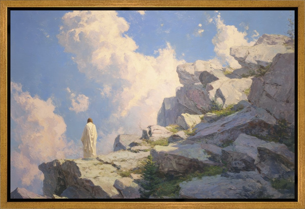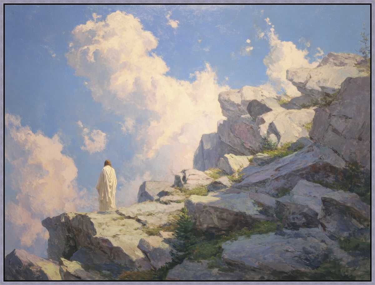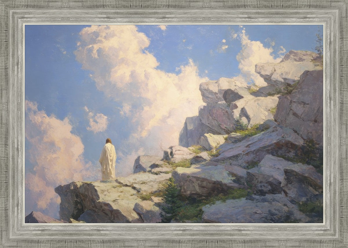 Throughout His mortal ministry, the Savior often withdrew to quiet places to pray, reflect, and commune with His Father. On Holy Ground captures that stillness. Christ stands alone in the mountains, surrounded by simultaneous majesty and peace. The scene reflects the beauty of solitude when it is filled with divine connection. In a world that is often loud and hurried, this image is a reminder of the holiness that can be found in solitude. We wanted this piece to evoke the idea that even the Savior took time to step away from everything and simply seek connection with heaven. As we make space to be alone with God, we too can find clarity, strength, and peace in His presence. Digital artwork created with Midjourney and Photoshop. Created 2026.