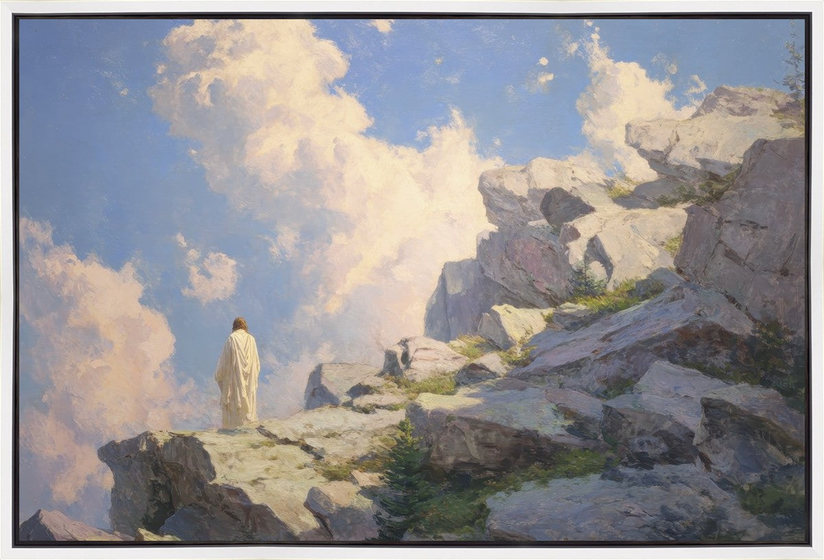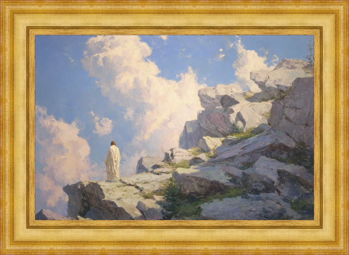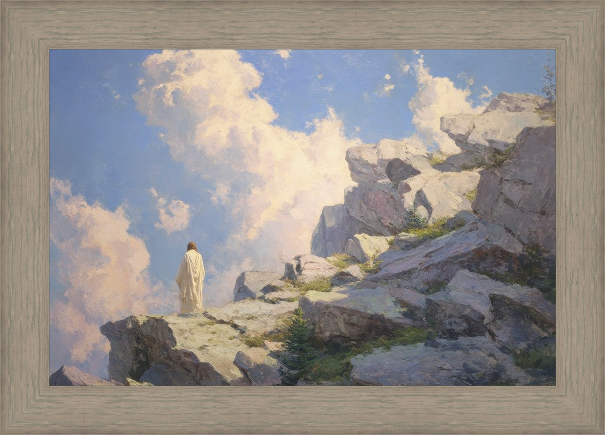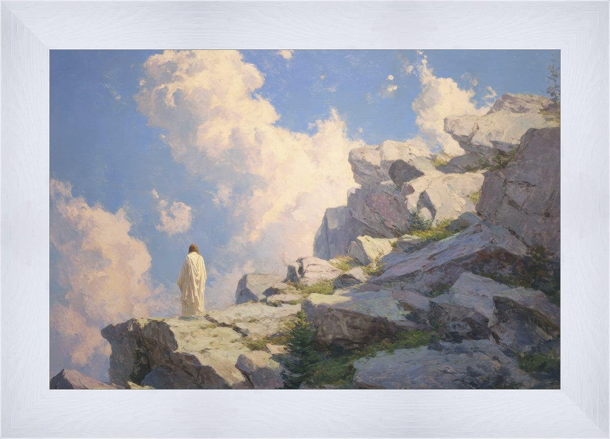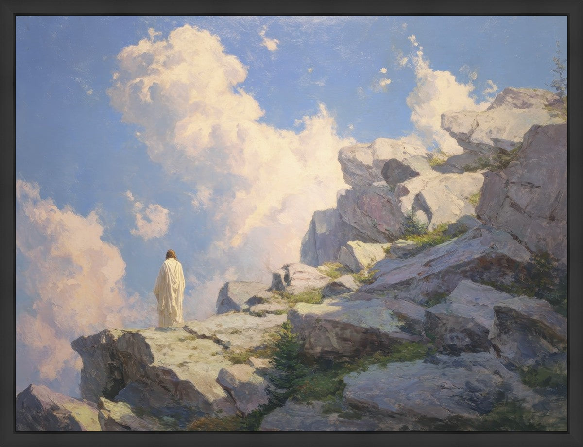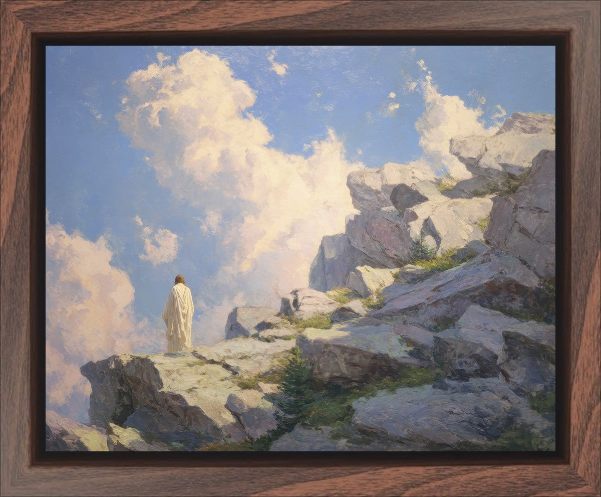Throughout His mortal ministry, the Savior often withdrew to quiet places to pray, reflect, and commune with His Father. On Holy Ground captures that stillness. Christ stands alone in the mountains, surrounded by simultaneous majesty and peace. The scene reflects the beauty of solitude when it is filled with divine connection. In a world that is often loud and hurried, this image is a reminder of the holiness that can be found in solitude. We wanted this piece to evoke the idea that even the Savior took time to step away from everything and simply seek connection with heaven. As we make space to be alone with God, we too can find clarity, strength, and peace in His presence. Digital artwork created with Midjourney and Photoshop. Created 2026.