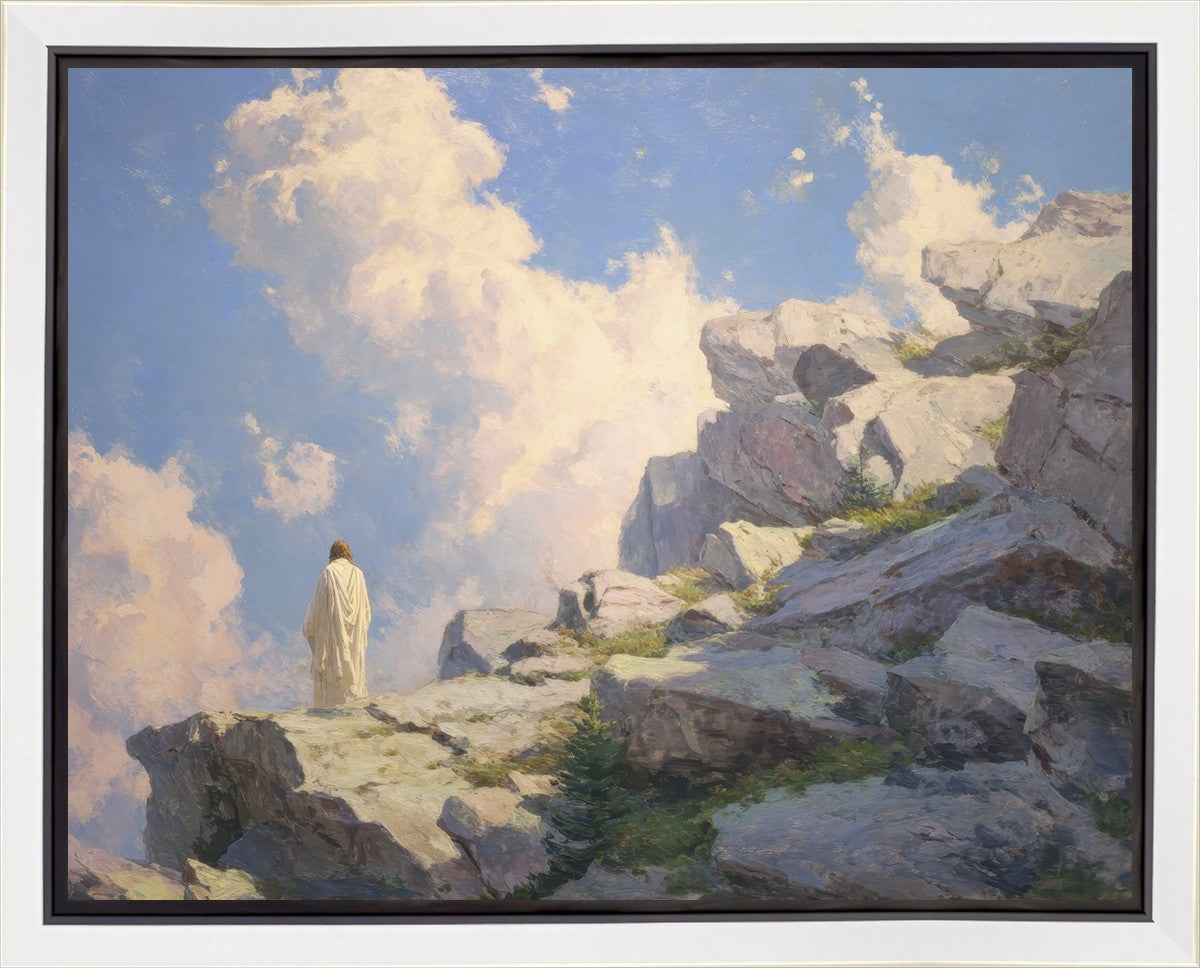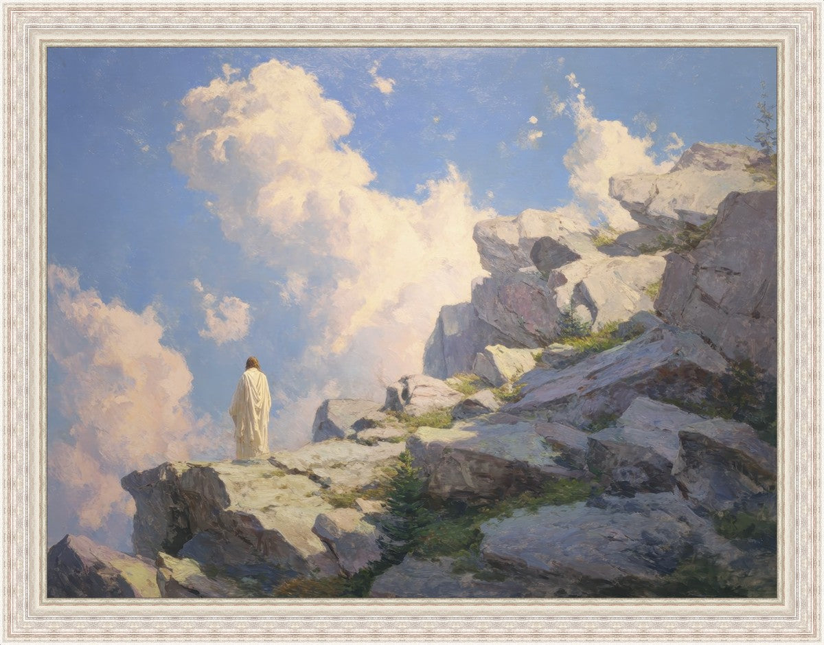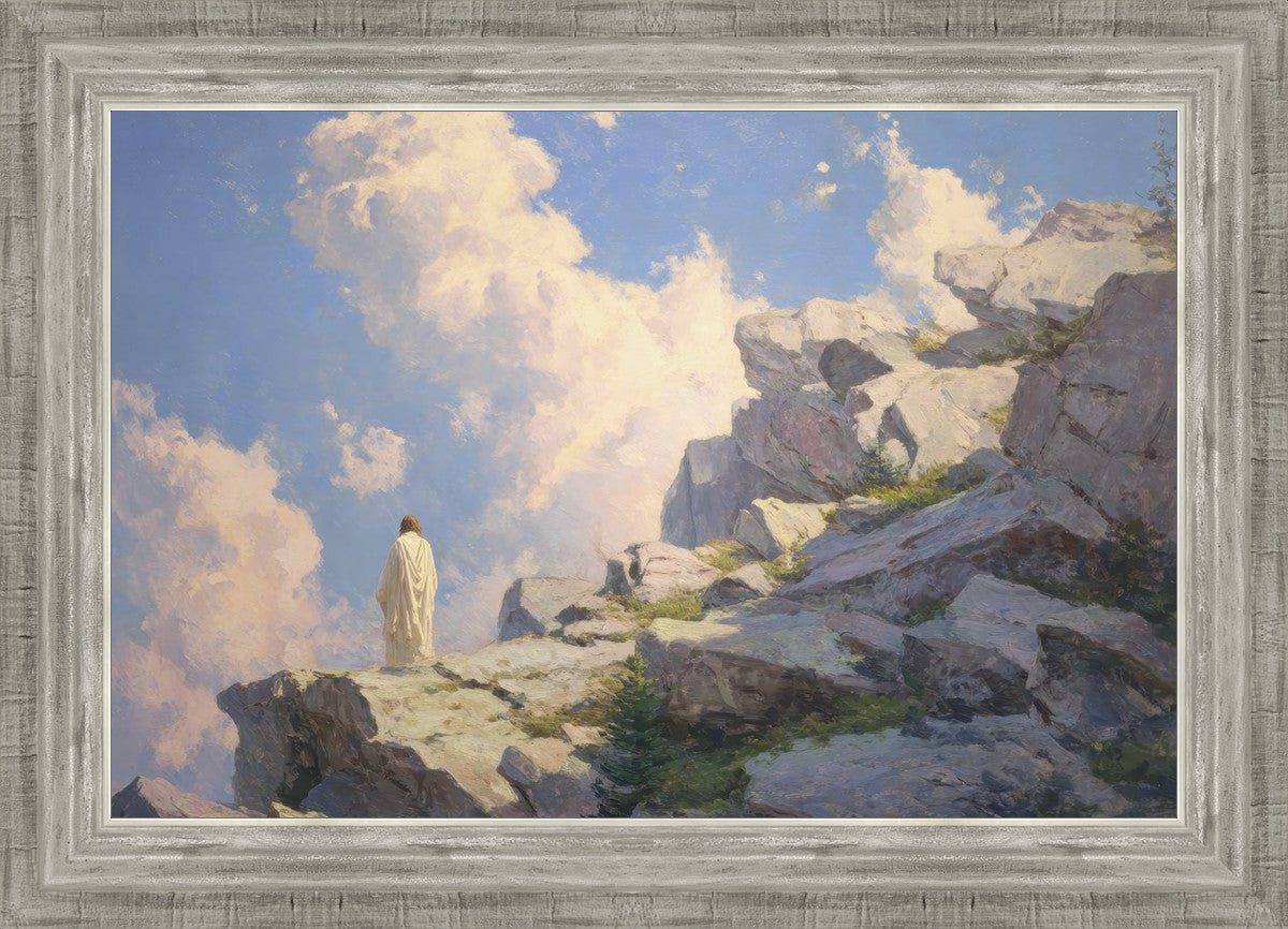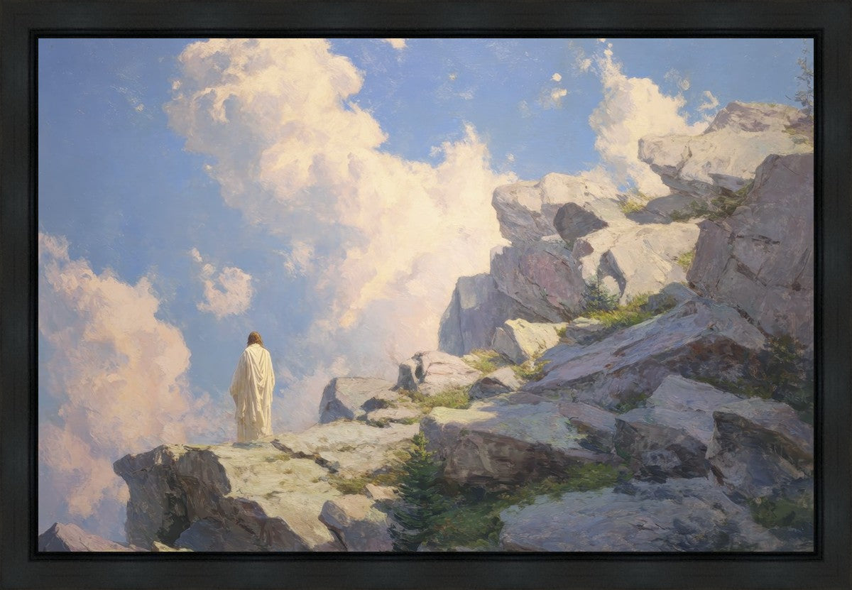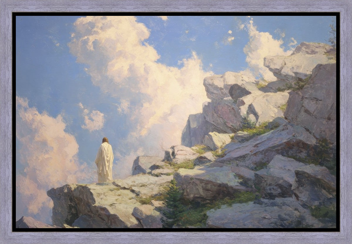 Throughout His mortal ministry, the Savior often withdrew to quiet places to pray, reflect, and commune with His Father. On Holy Ground captures that stillness. Christ stands alone in the mountains, surrounded by simultaneous majesty and peace. The scene reflects the beauty of solitude when it is filled with divine connection. In a world that is often loud and hurried, this image is a reminder of the holiness that can be found in solitude. We wanted this piece to evoke the idea that even the Savior took time to step away from everything and simply seek connection with heaven. As we make space to be alone with God, we too can find clarity, strength, and peace in His presence. Digital artwork created with Midjourney and Photoshop. Created 2026.