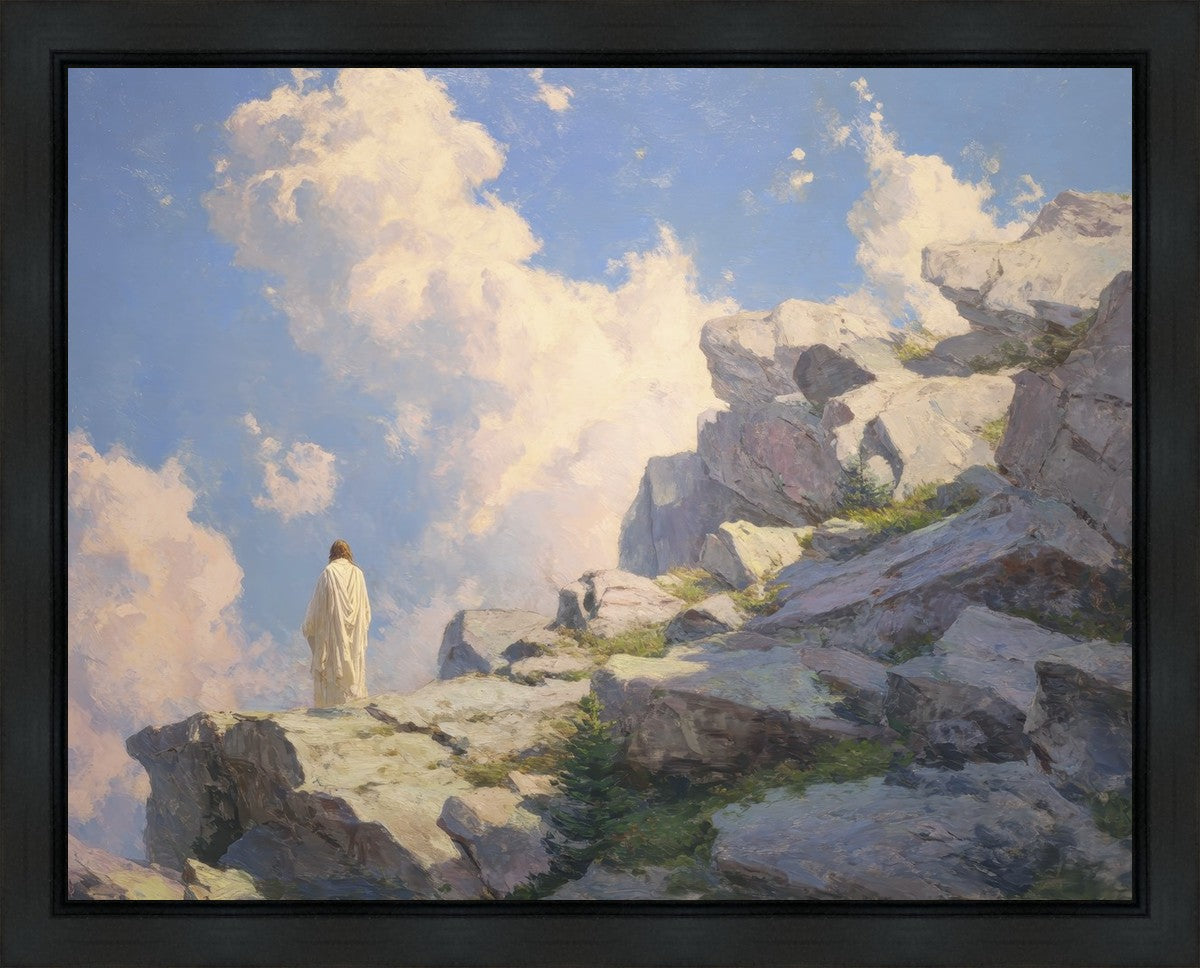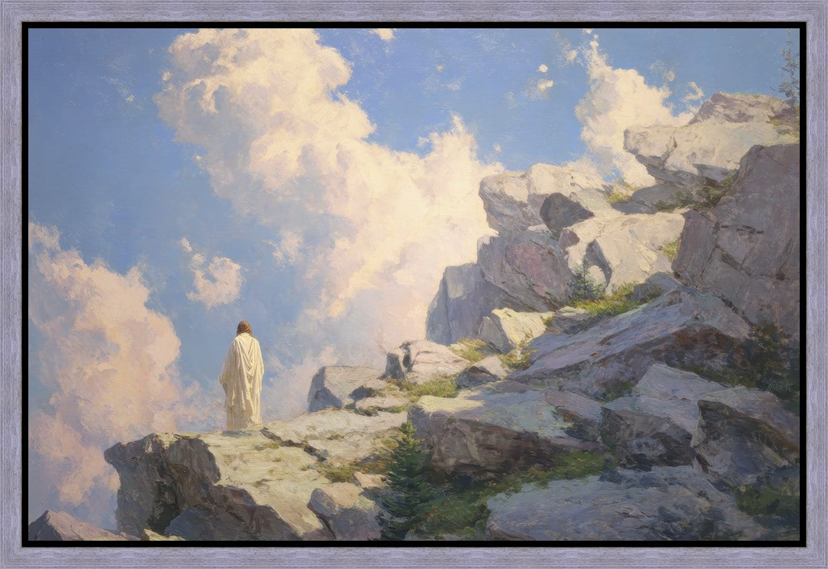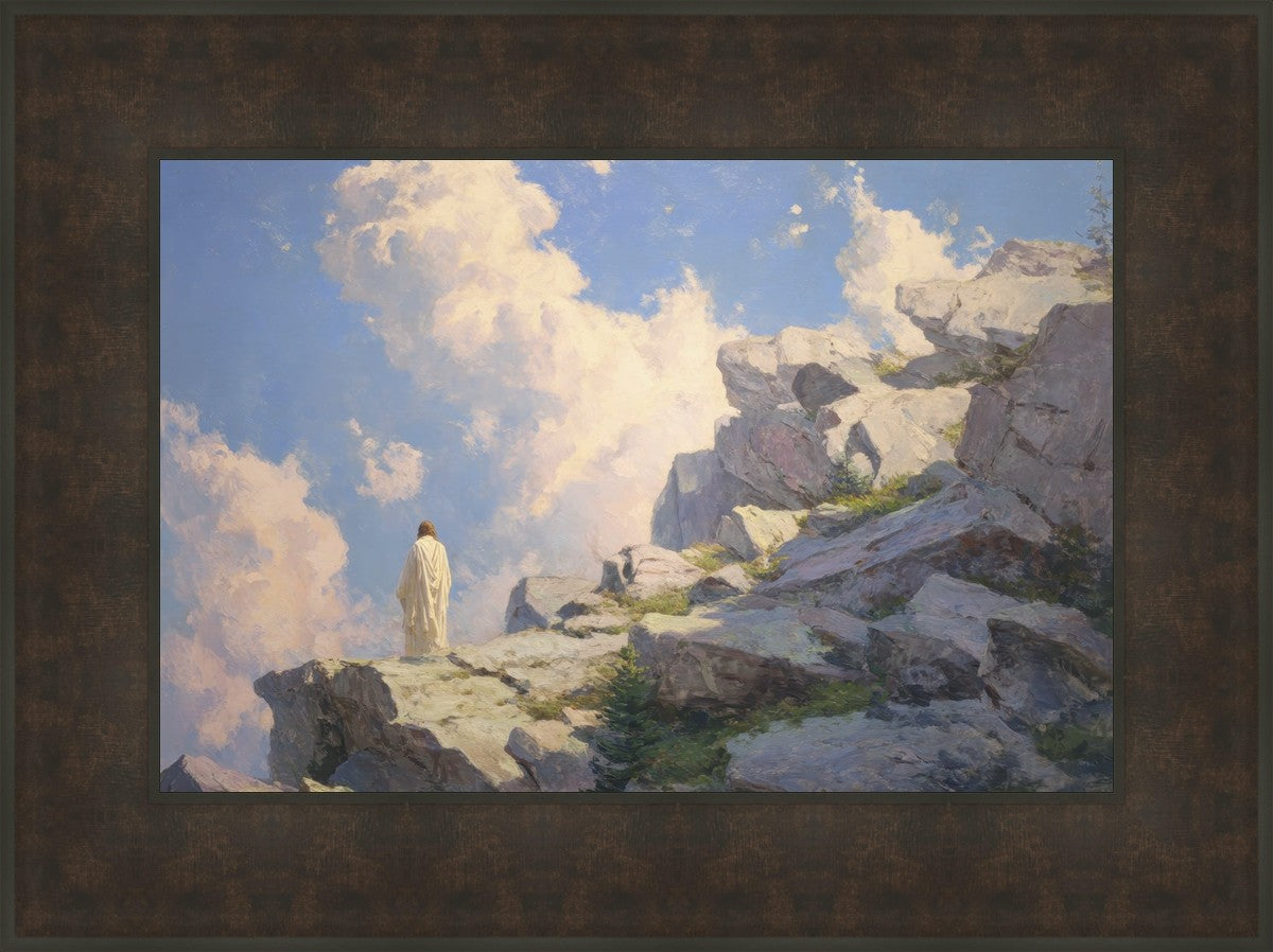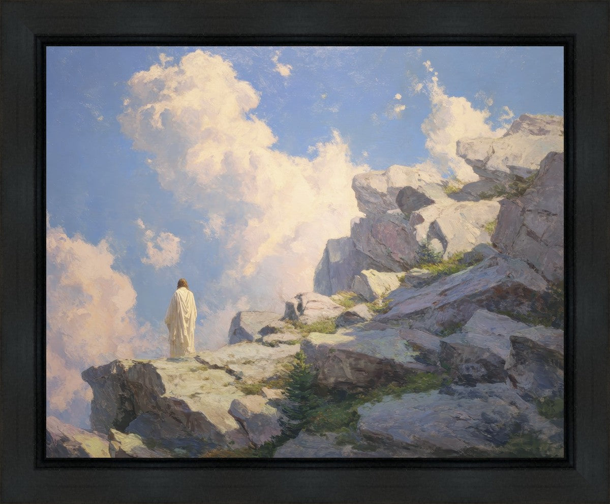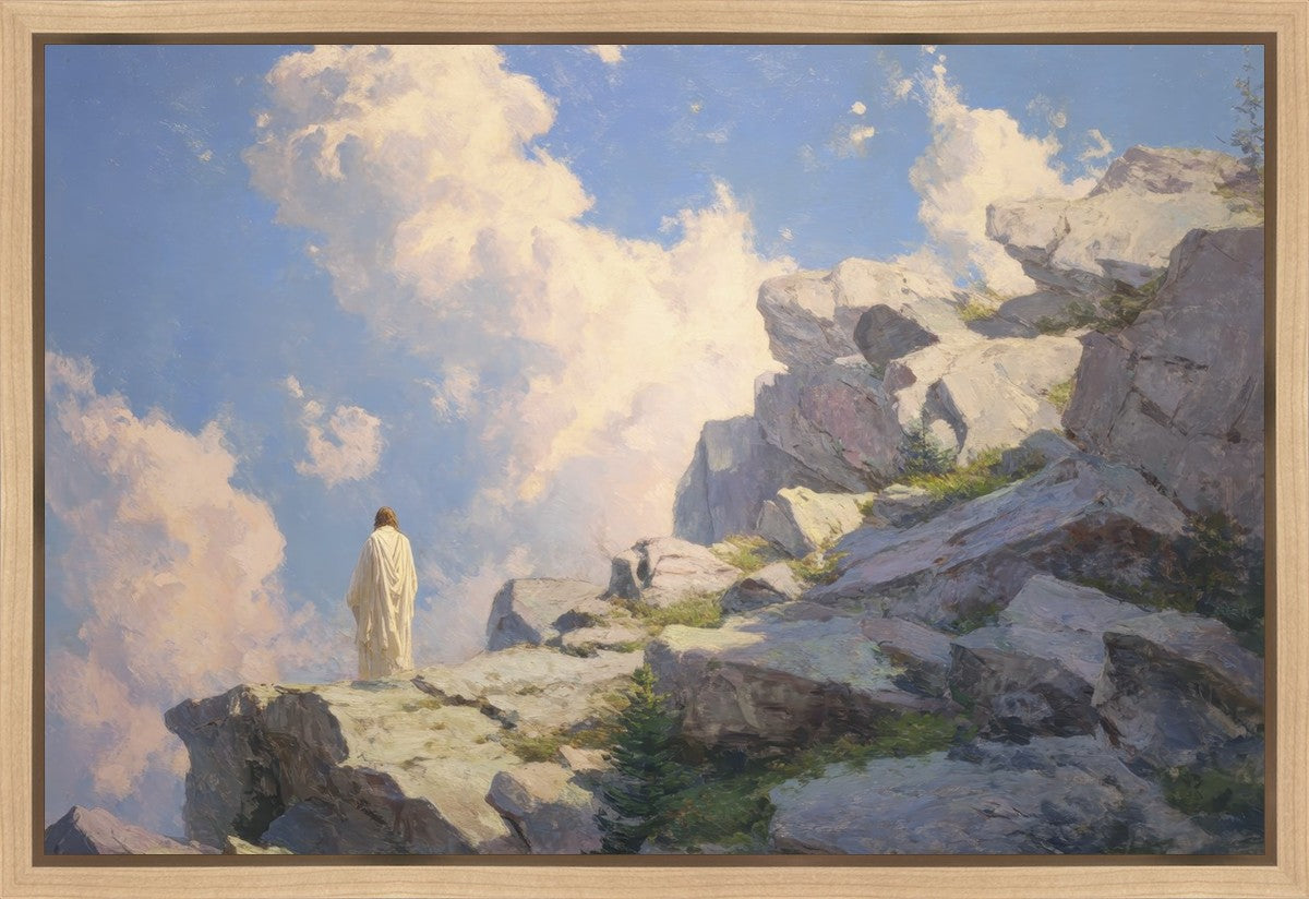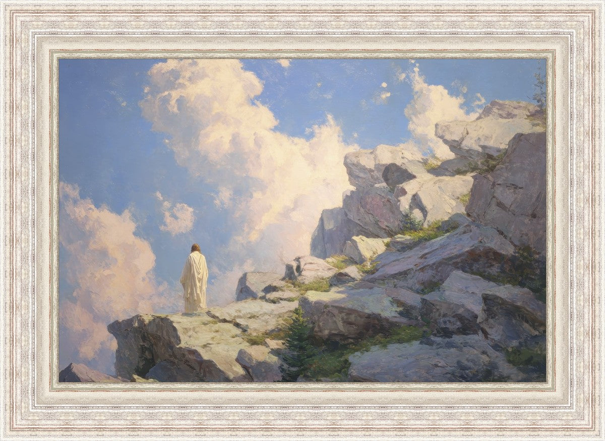 Throughout His mortal ministry, the Savior often withdrew to quiet places to pray, reflect, and commune with His Father. On Holy Ground captures that stillness. Christ stands alone in the mountains, surrounded by simultaneous majesty and peace. The scene reflects the beauty of solitude when it is filled with divine connection. In a world that is often loud and hurried, this image is a reminder of the holiness that can be found in solitude. We wanted this piece to evoke the idea that even the Savior took time to step away from everything and simply seek connection with heaven. As we make space to be alone with God, we too can find clarity, strength, and peace in His presence. Digital artwork created with Midjourney and Photoshop. Created 2026.