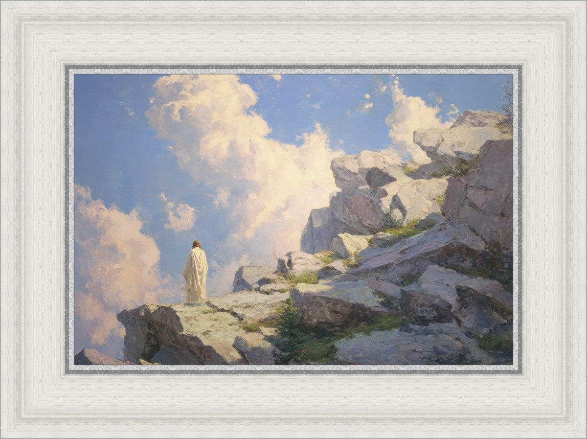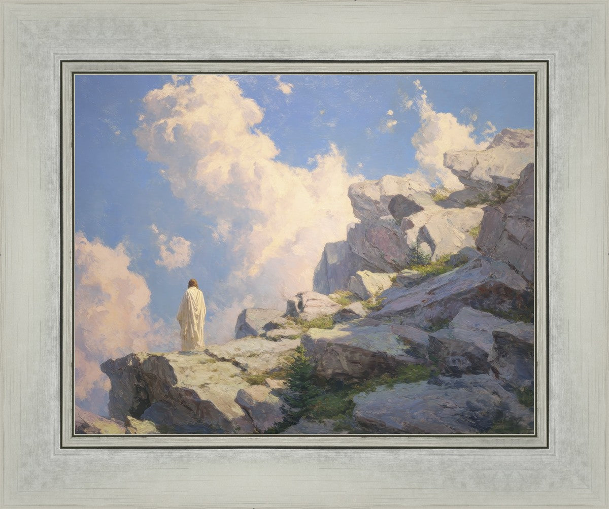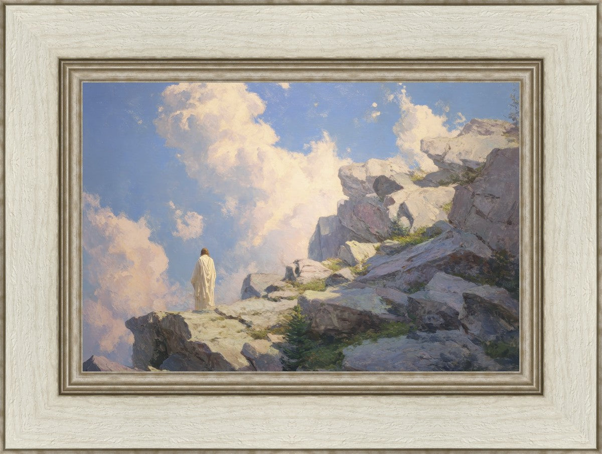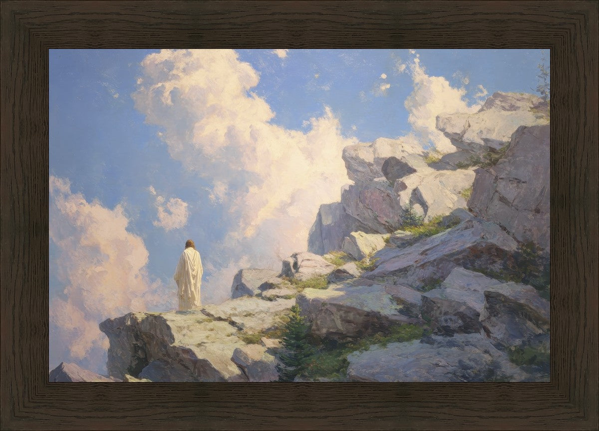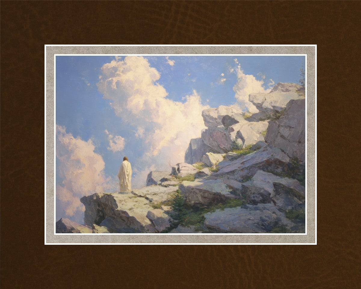 Throughout His mortal ministry, the Savior often withdrew to quiet places to pray, reflect, and commune with His Father. On Holy Ground captures that stillness. Christ stands alone in the mountains, surrounded by simultaneous majesty and peace. The scene reflects the beauty of solitude when it is filled with divine connection. In a world that is often loud and hurried, this image is a reminder of the holiness that can be found in solitude. We wanted this piece to evoke the idea that even the Savior took time to step away from everything and simply seek connection with heaven. As we make space to be alone with God, we too can find clarity, strength, and peace in His presence. Digital artwork created with Midjourney and Photoshop. Created 2026.