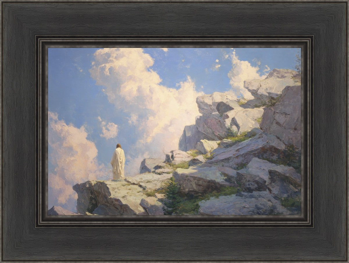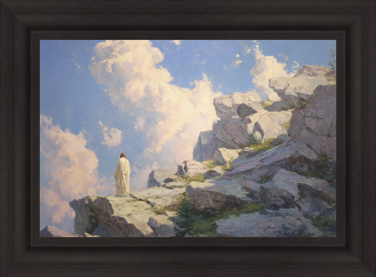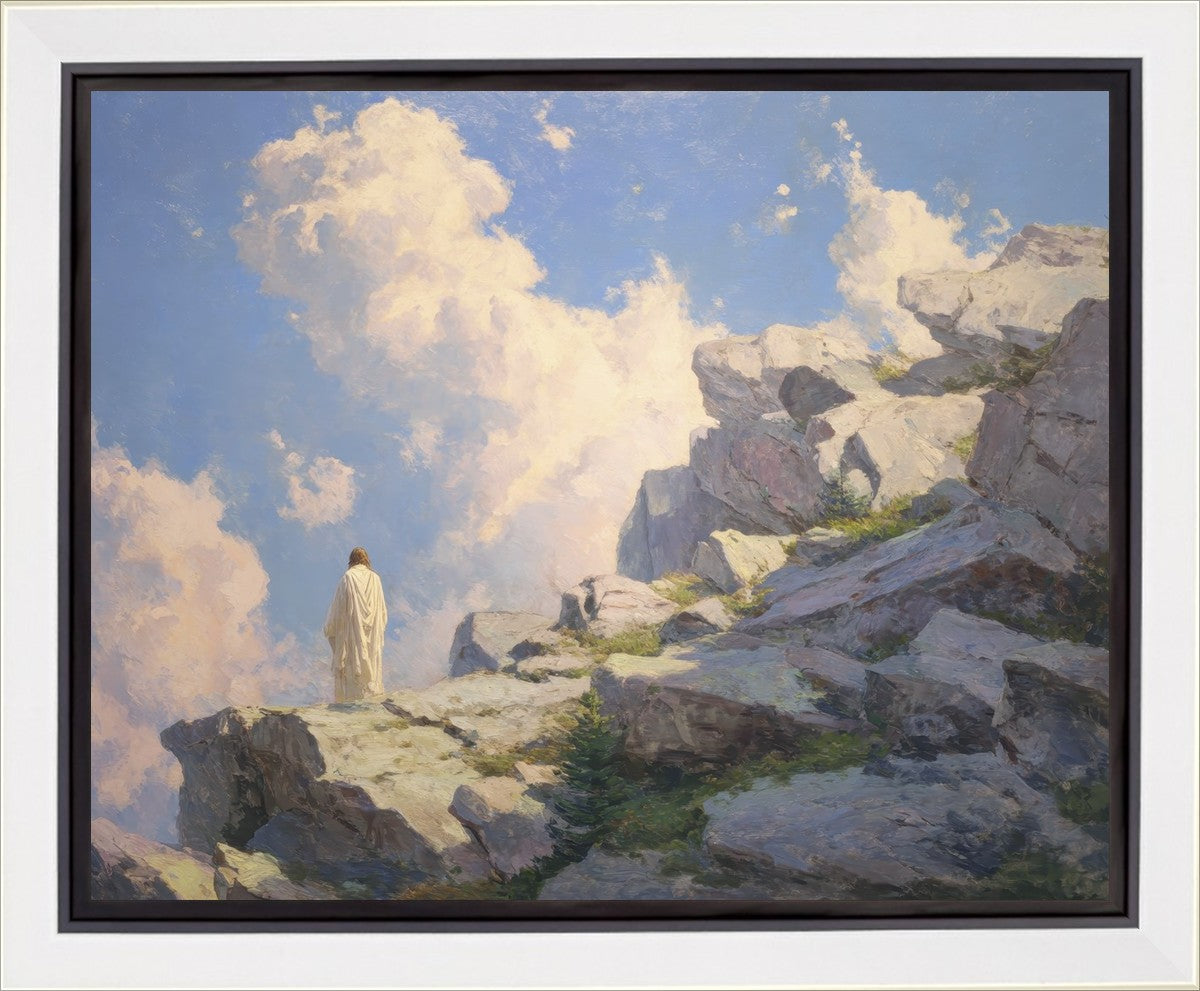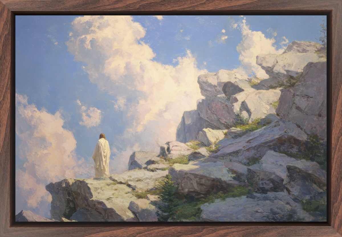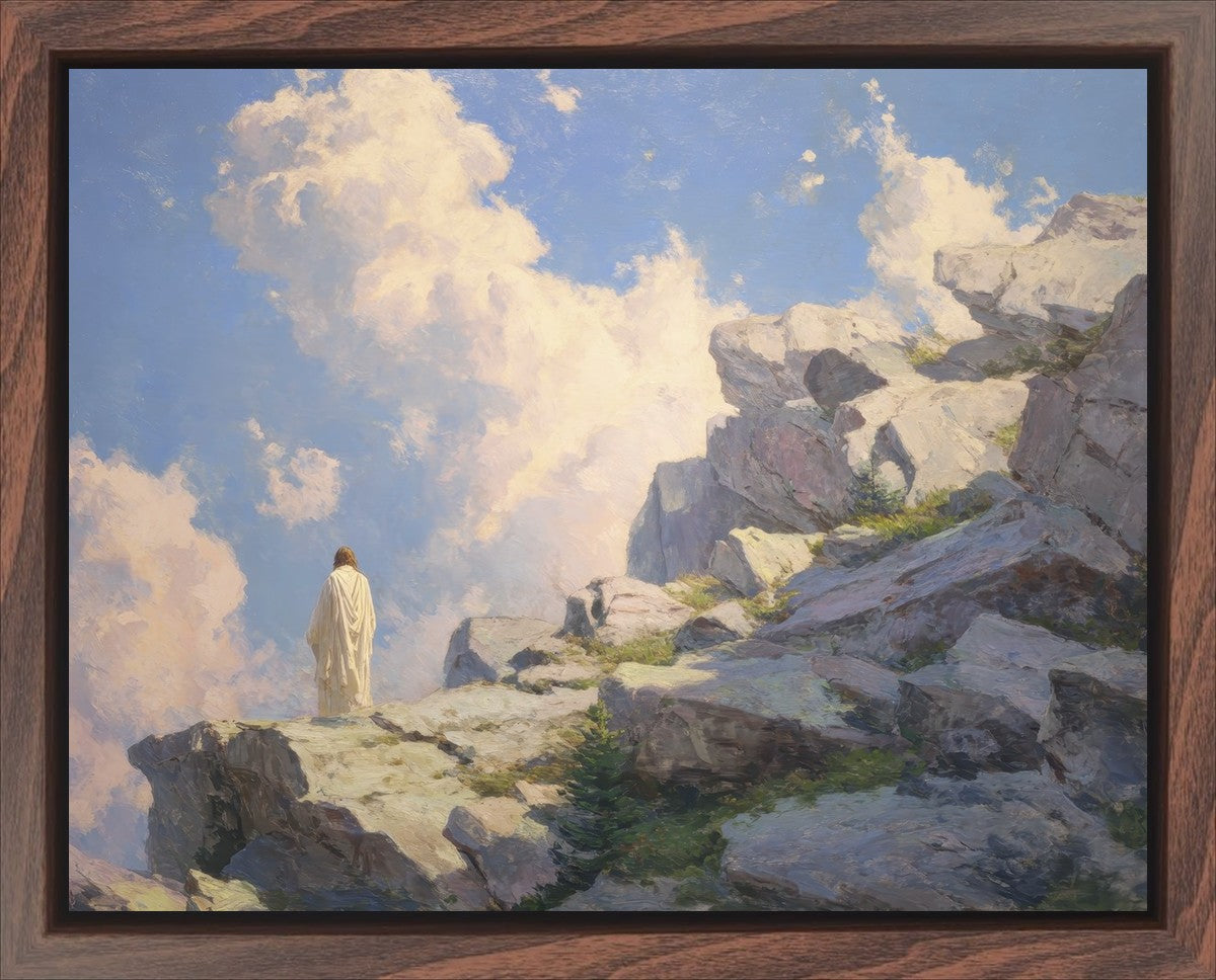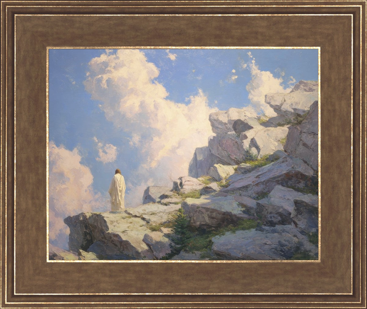 Throughout His mortal ministry, the Savior often withdrew to quiet places to pray, reflect, and commune with His Father. On Holy Ground captures that stillness. Christ stands alone in the mountains, surrounded by simultaneous majesty and peace. The scene reflects the beauty of solitude when it is filled with divine connection. In a world that is often loud and hurried, this image is a reminder of the holiness that can be found in solitude. We wanted this piece to evoke the idea that even the Savior took time to step away from everything and simply seek connection with heaven. As we make space to be alone with God, we too can find clarity, strength, and peace in His presence. Digital artwork created with Midjourney and Photoshop. Created 2026.