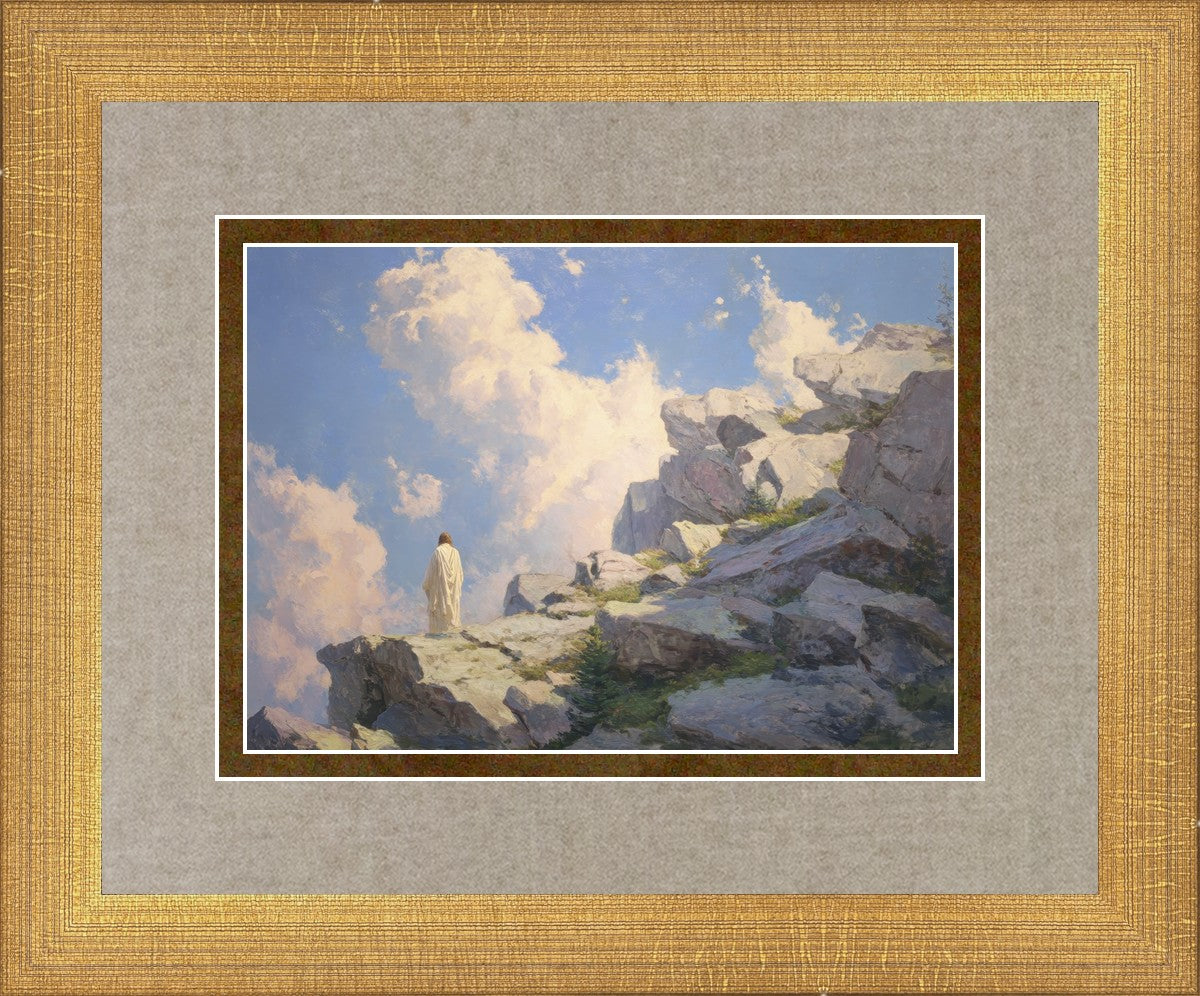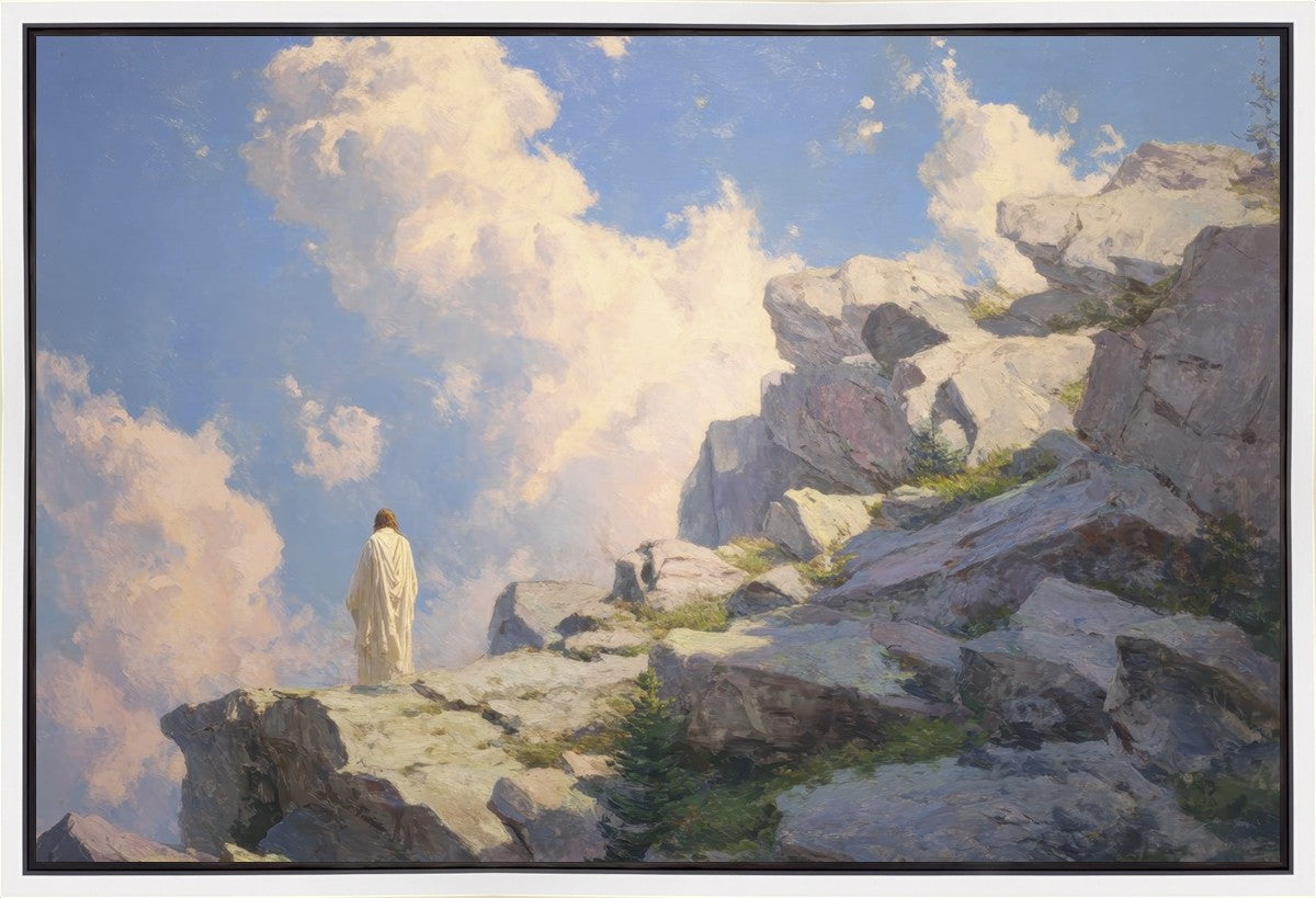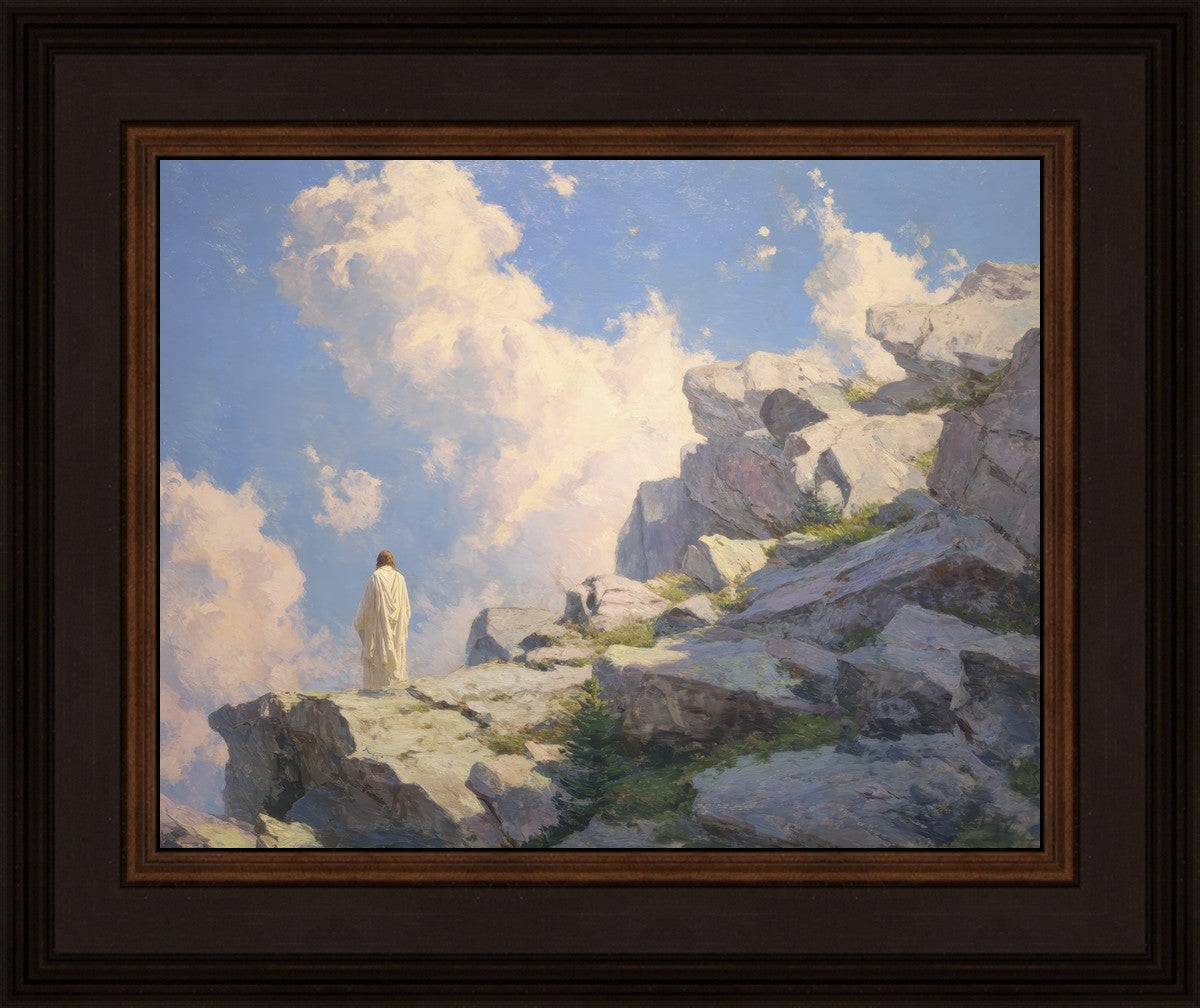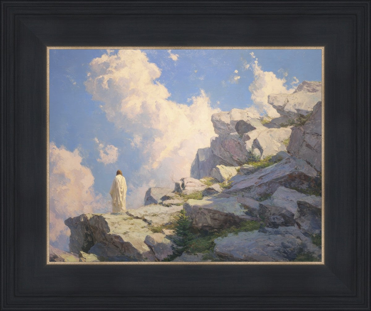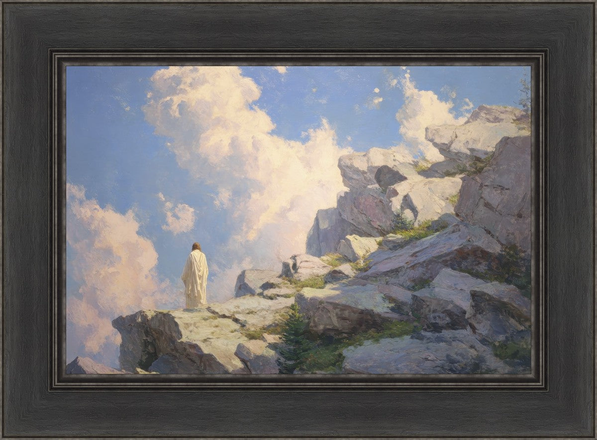 Throughout His mortal ministry, the Savior often withdrew to quiet places to pray, reflect, and commune with His Father. On Holy Ground captures that stillness. Christ stands alone in the mountains, surrounded by simultaneous majesty and peace. The scene reflects the beauty of solitude when it is filled with divine connection. In a world that is often loud and hurried, this image is a reminder of the holiness that can be found in solitude. We wanted this piece to evoke the idea that even the Savior took time to step away from everything and simply seek connection with heaven. As we make space to be alone with God, we too can find clarity, strength, and peace in His presence. Digital artwork created with Midjourney and Photoshop. Created 2026.