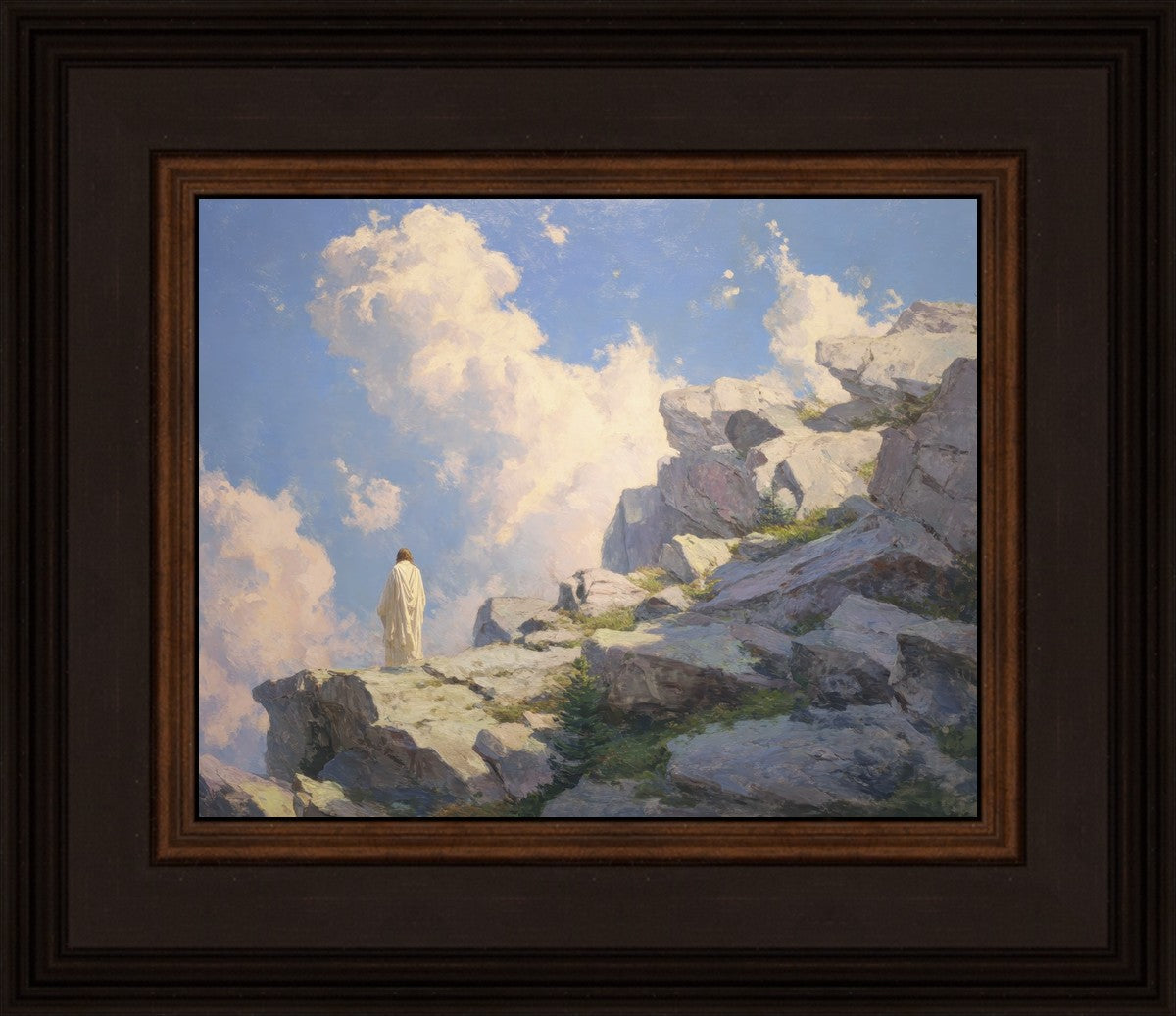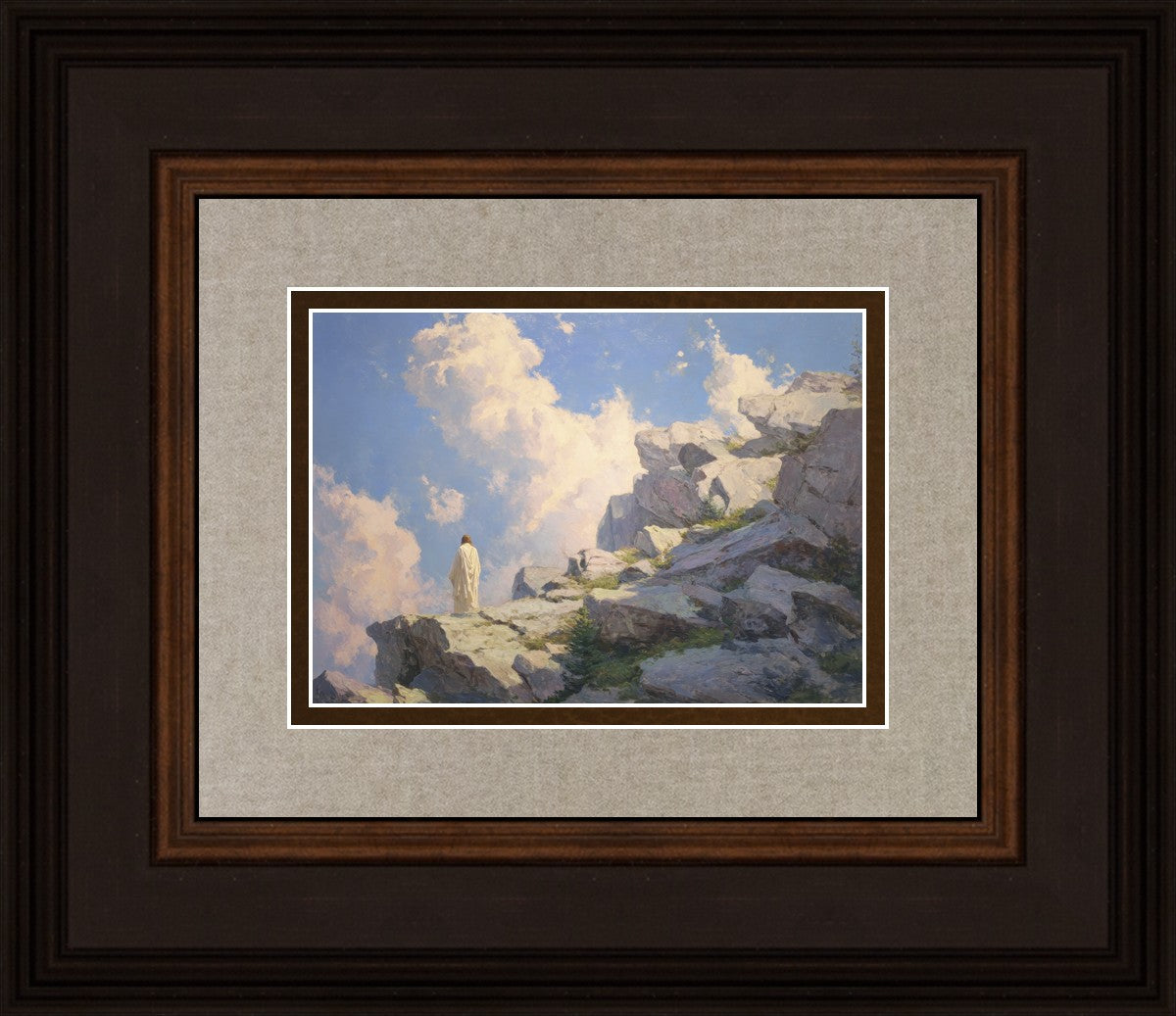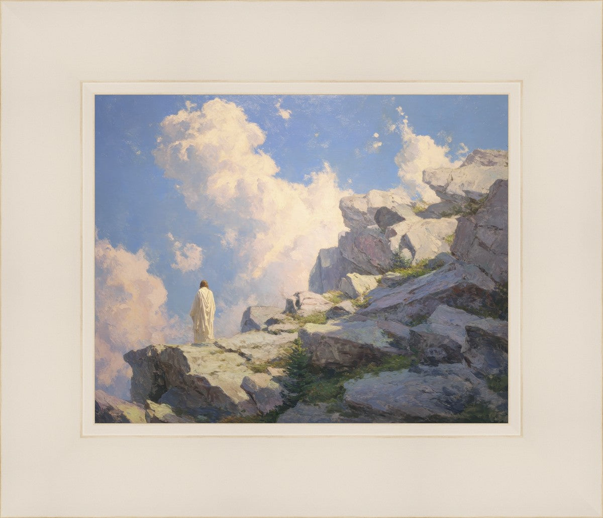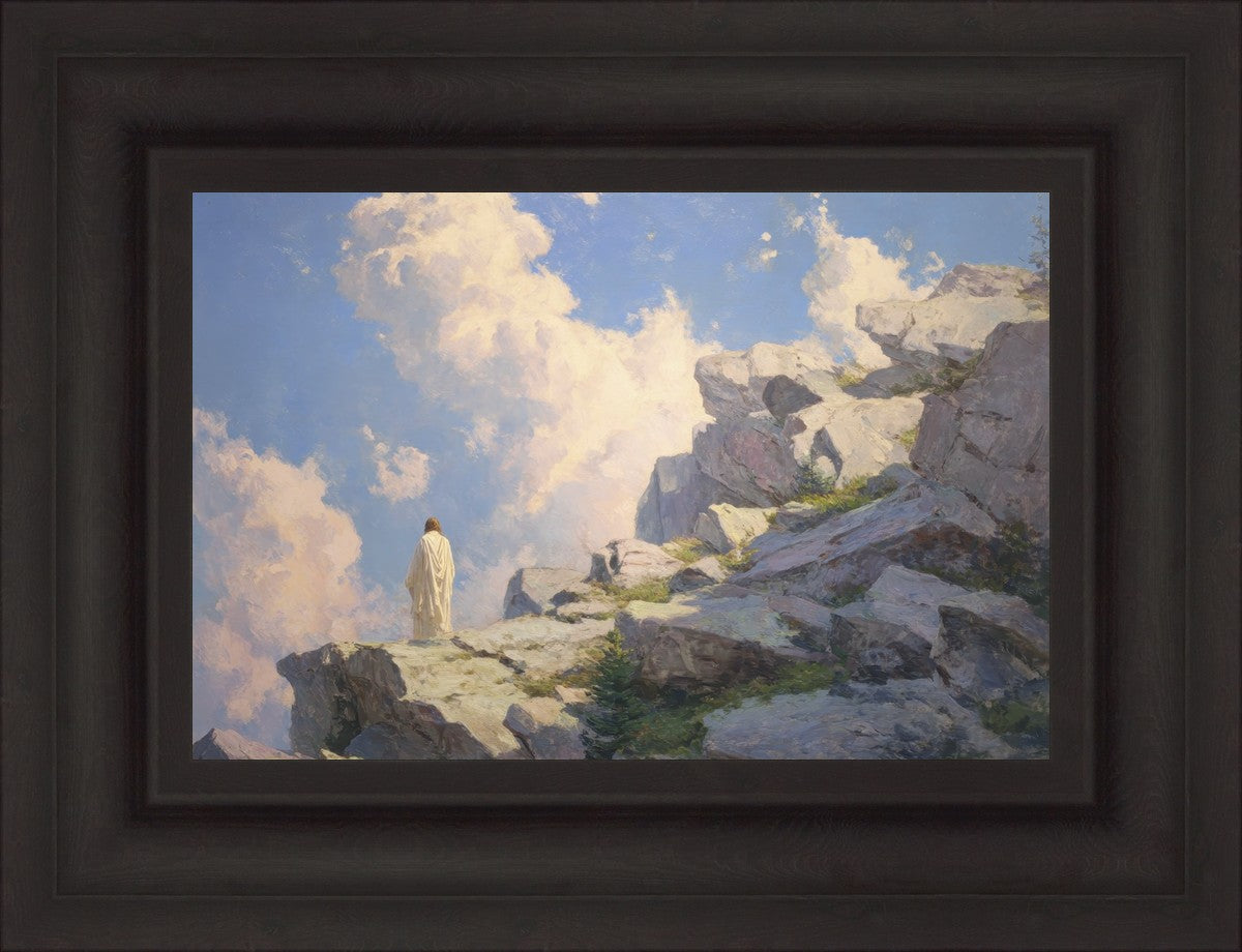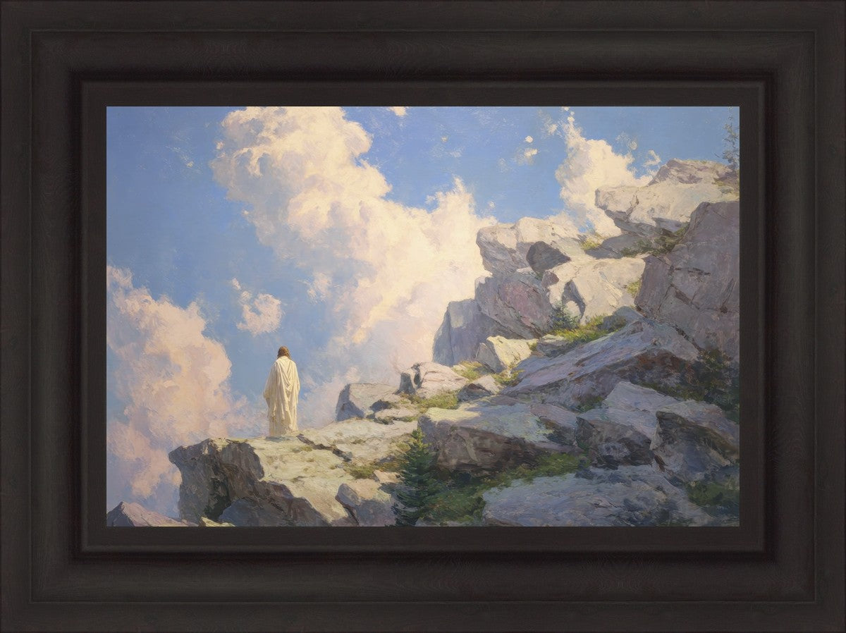 Throughout His mortal ministry, the Savior often withdrew to quiet places to pray, reflect, and commune with His Father. On Holy Ground captures that stillness. Christ stands alone in the mountains, surrounded by simultaneous majesty and peace. The scene reflects the beauty of solitude when it is filled with divine connection. In a world that is often loud and hurried, this image is a reminder of the holiness that can be found in solitude. We wanted this piece to evoke the idea that even the Savior took time to step away from everything and simply seek connection with heaven. As we make space to be alone with God, we too can find clarity, strength, and peace in His presence. Digital artwork created with Midjourney and Photoshop. Created 2026.