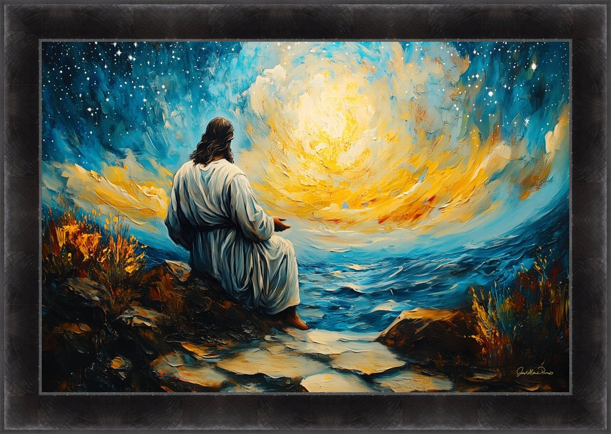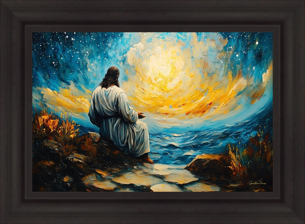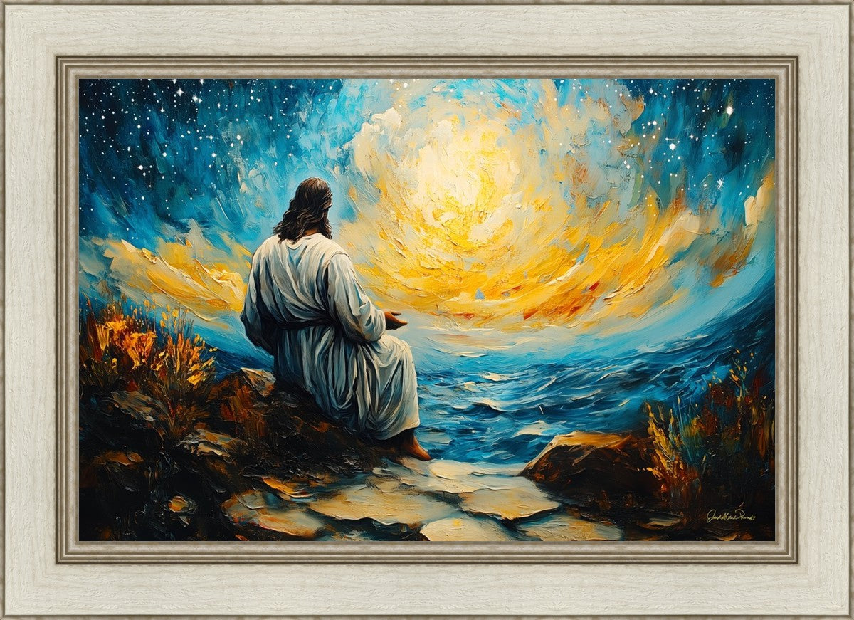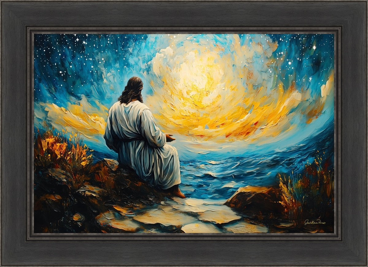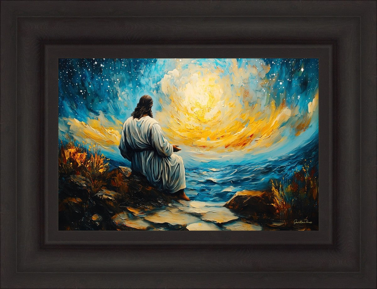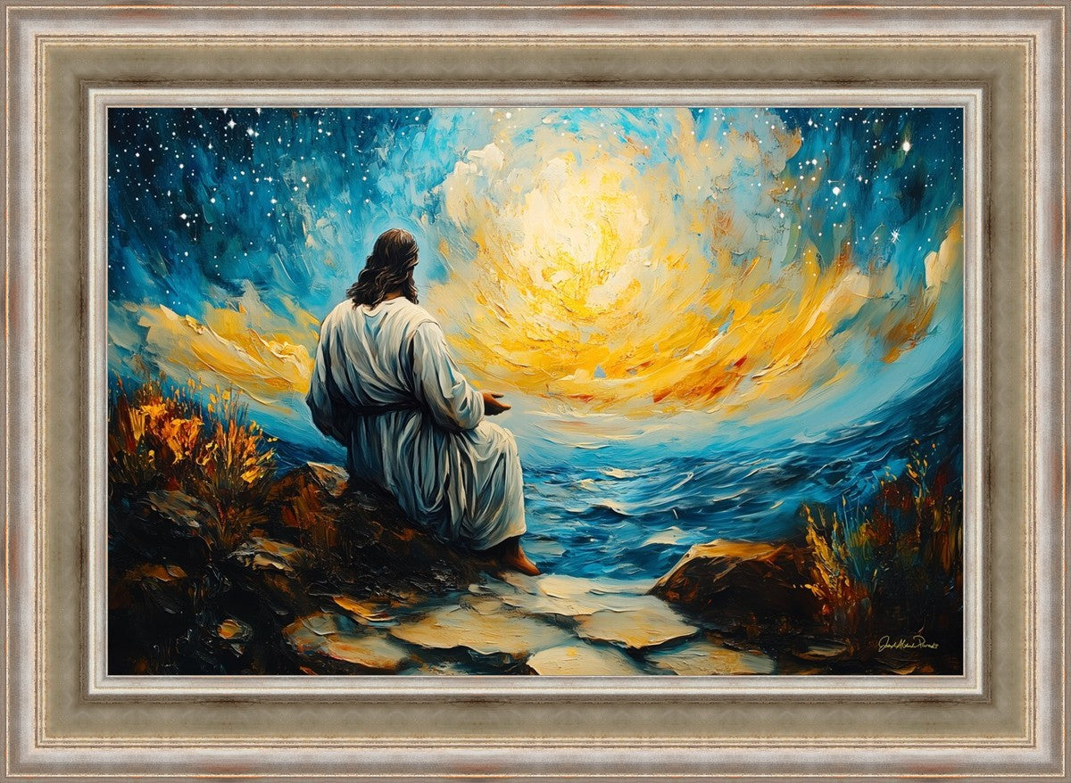 What if the Lord asked you to come sit with Him under a night sky? What would He tell you? What would He show you? How would you feel? This colorful piece ponders the serenity of the thought and explores the possibilities and curiosity of all creation.