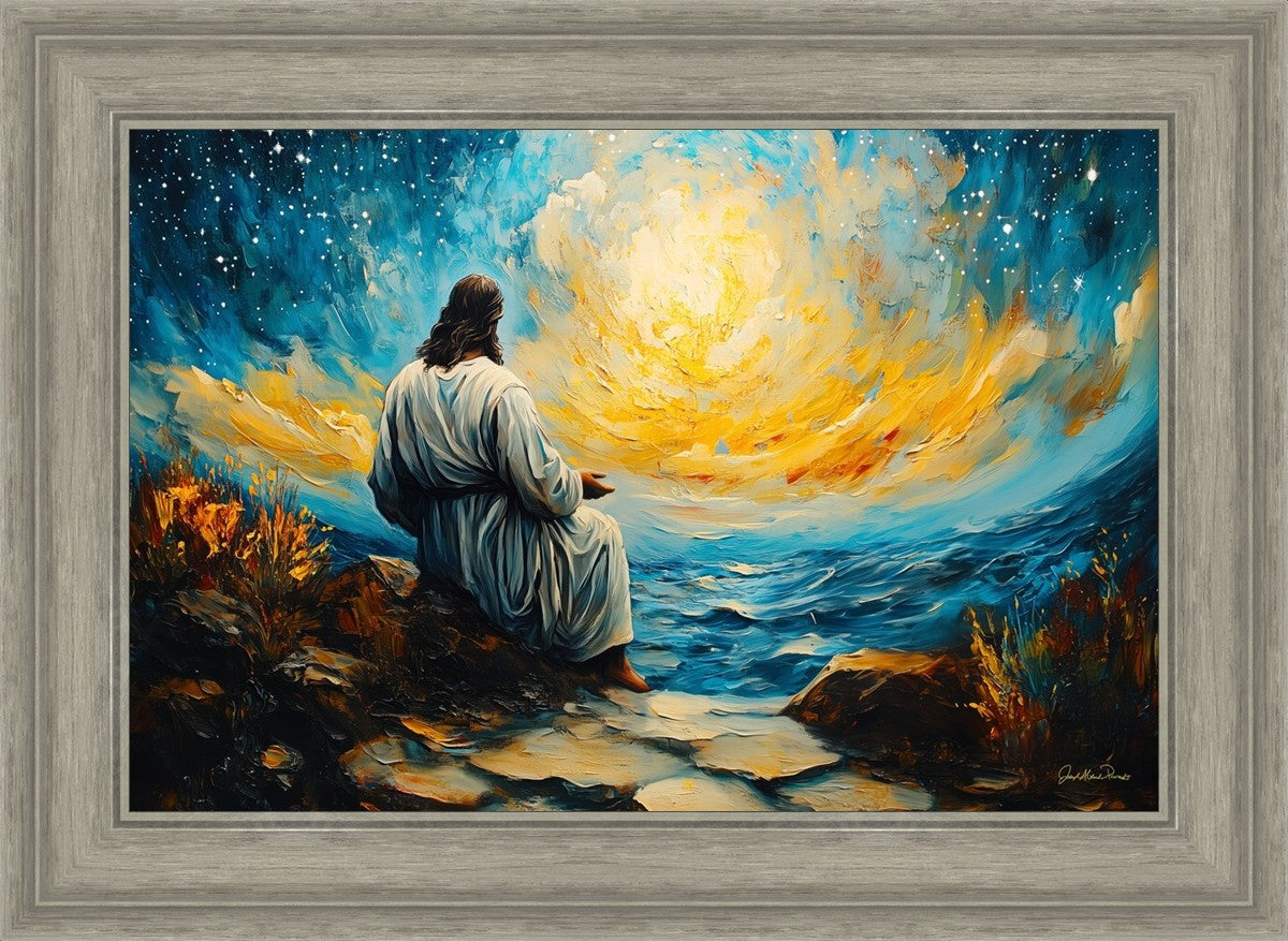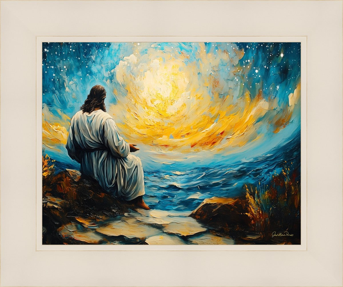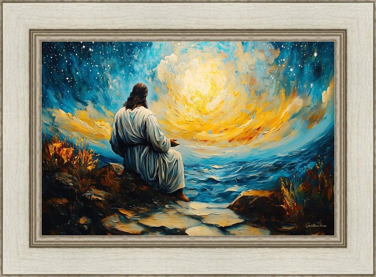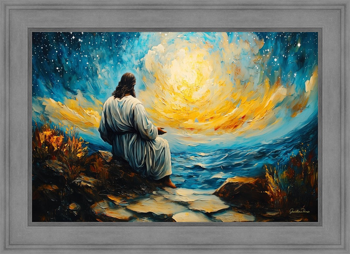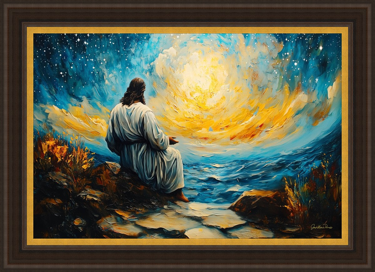 What if the Lord asked you to come sit with Him under a night sky? What would He tell you? What would He show you? How would you feel? This colorful piece ponders the serenity of the thought and explores the possibilities and curiosity of all creation.