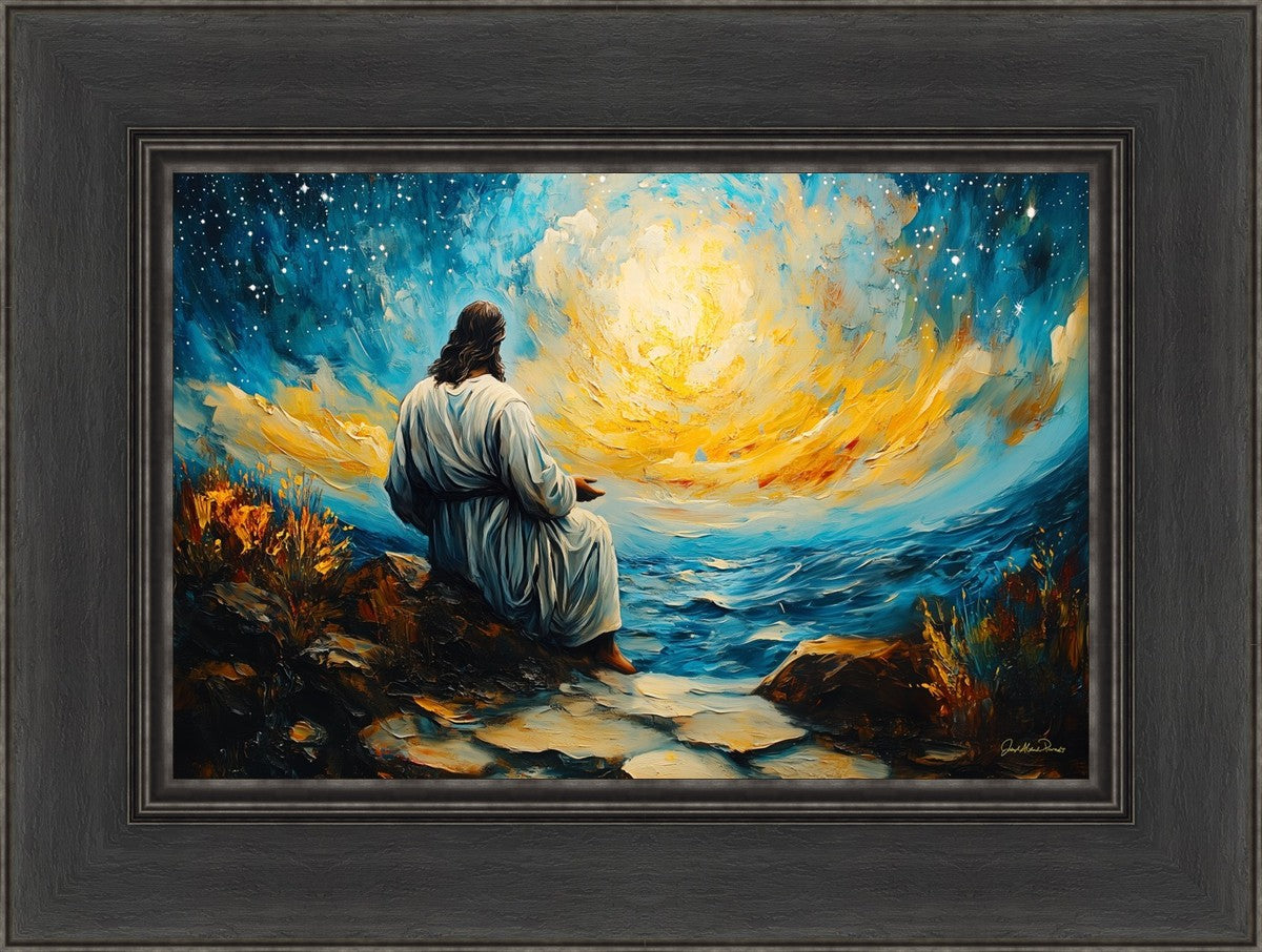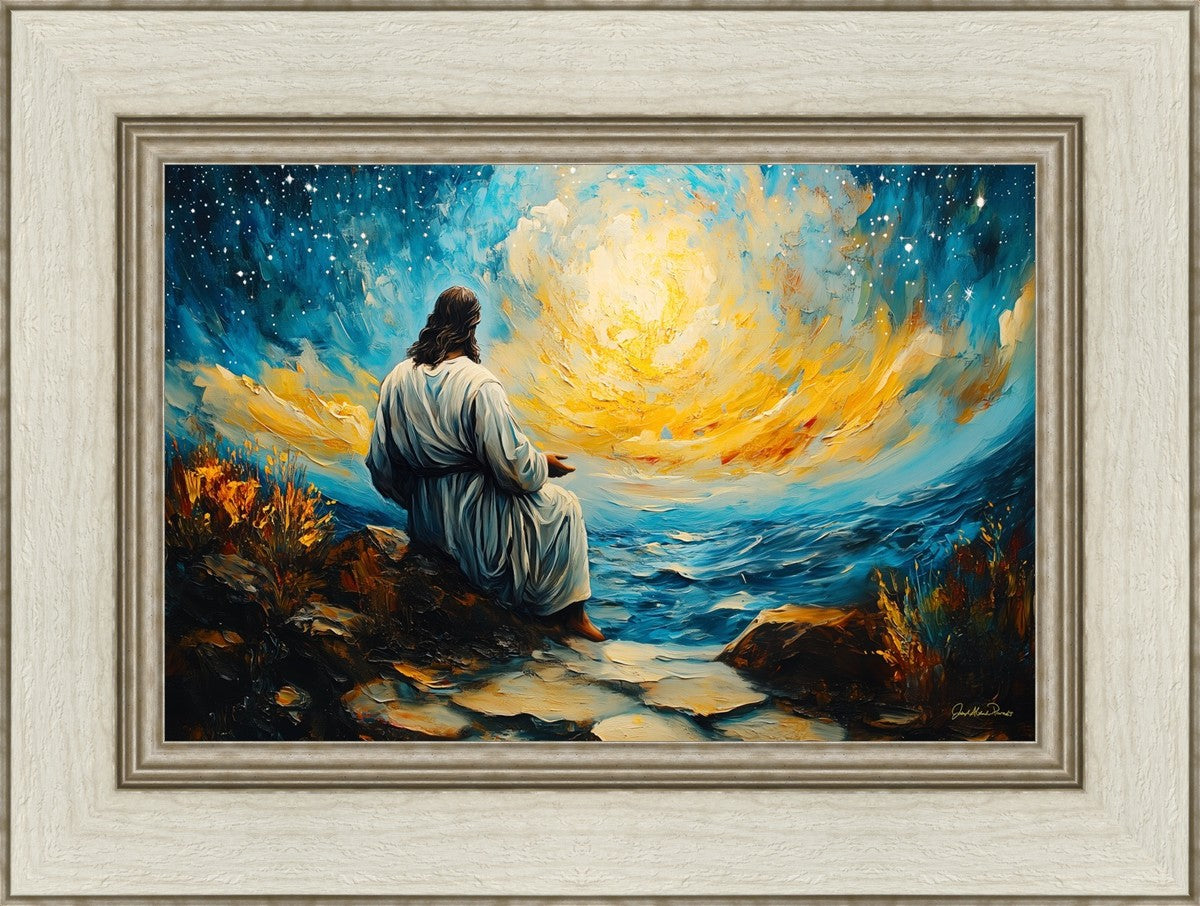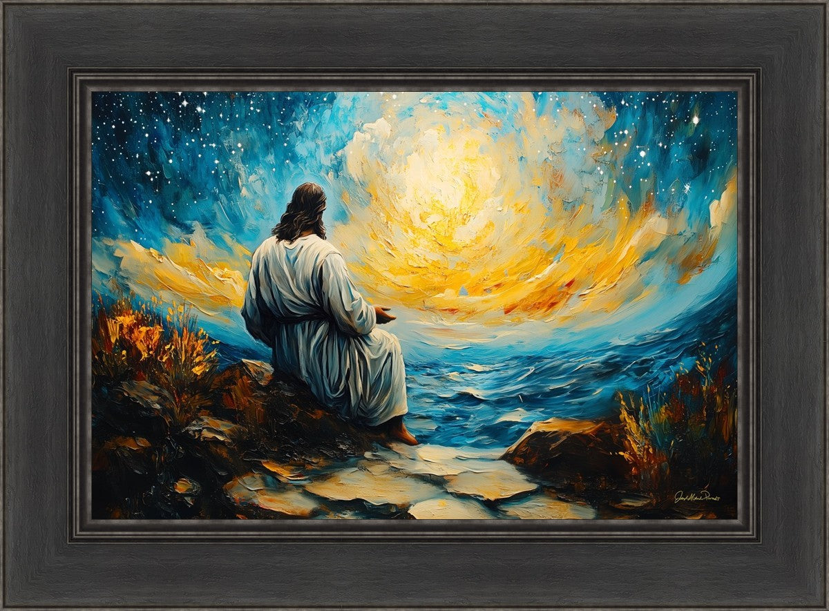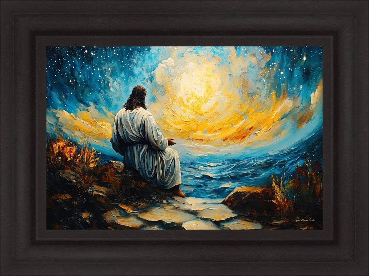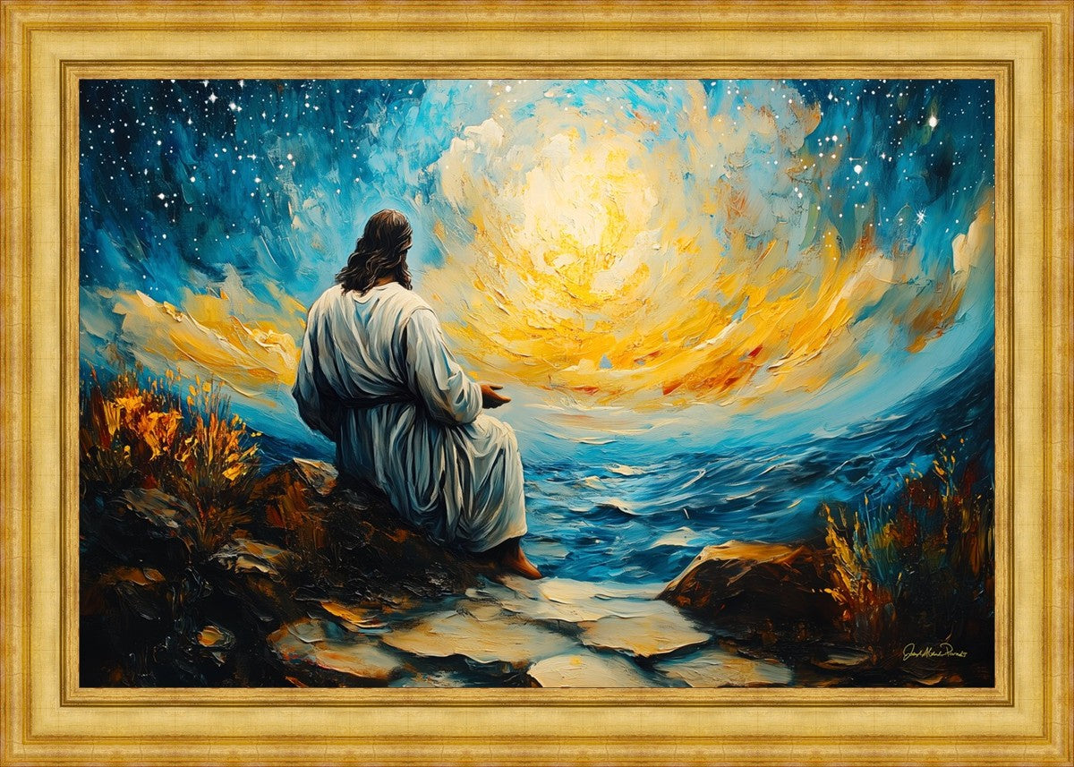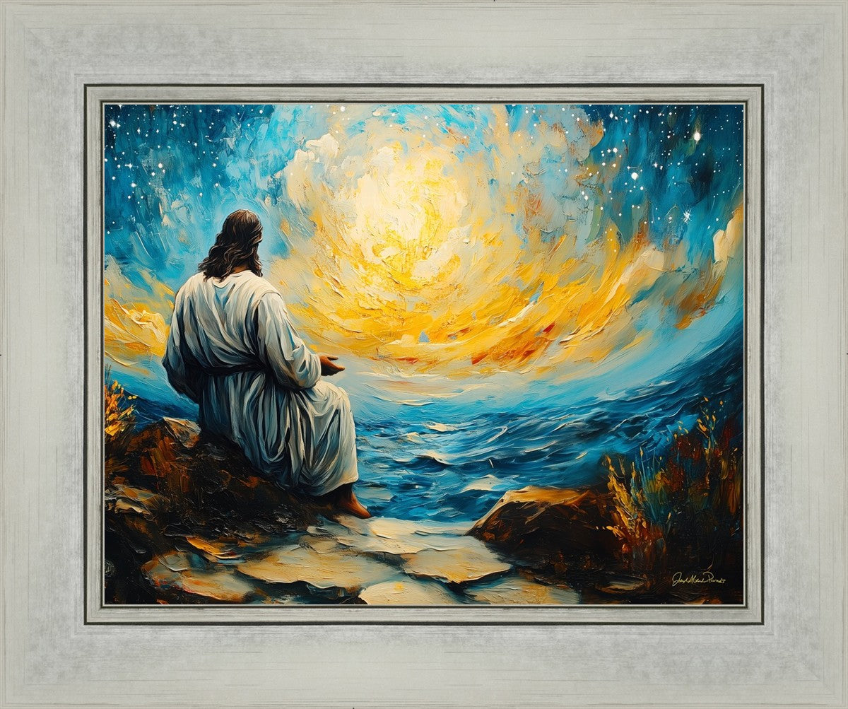What if the Lord asked you to come sit with Him under a night sky? What would He tell you? What would He show you? How would you feel? This colorful piece ponders the serenity of the thought and explores the possibilities and curiosity of all creation.