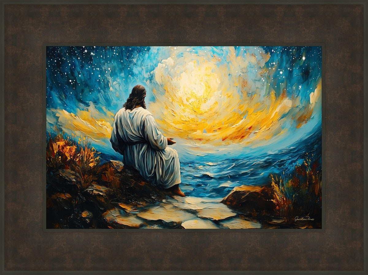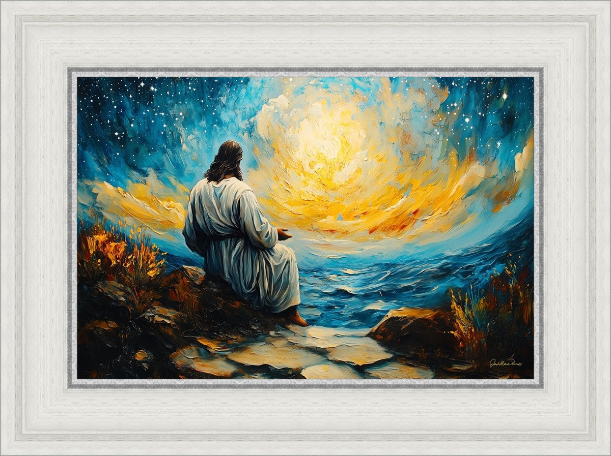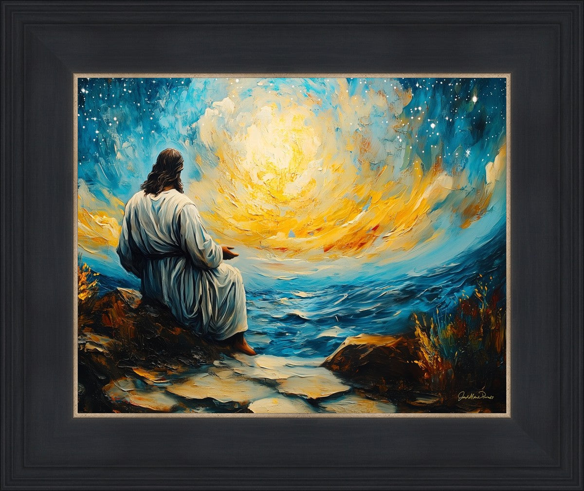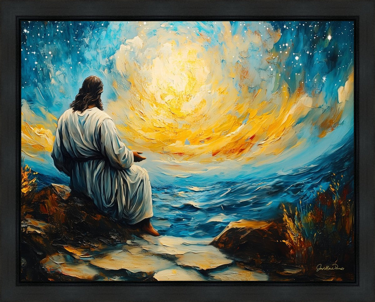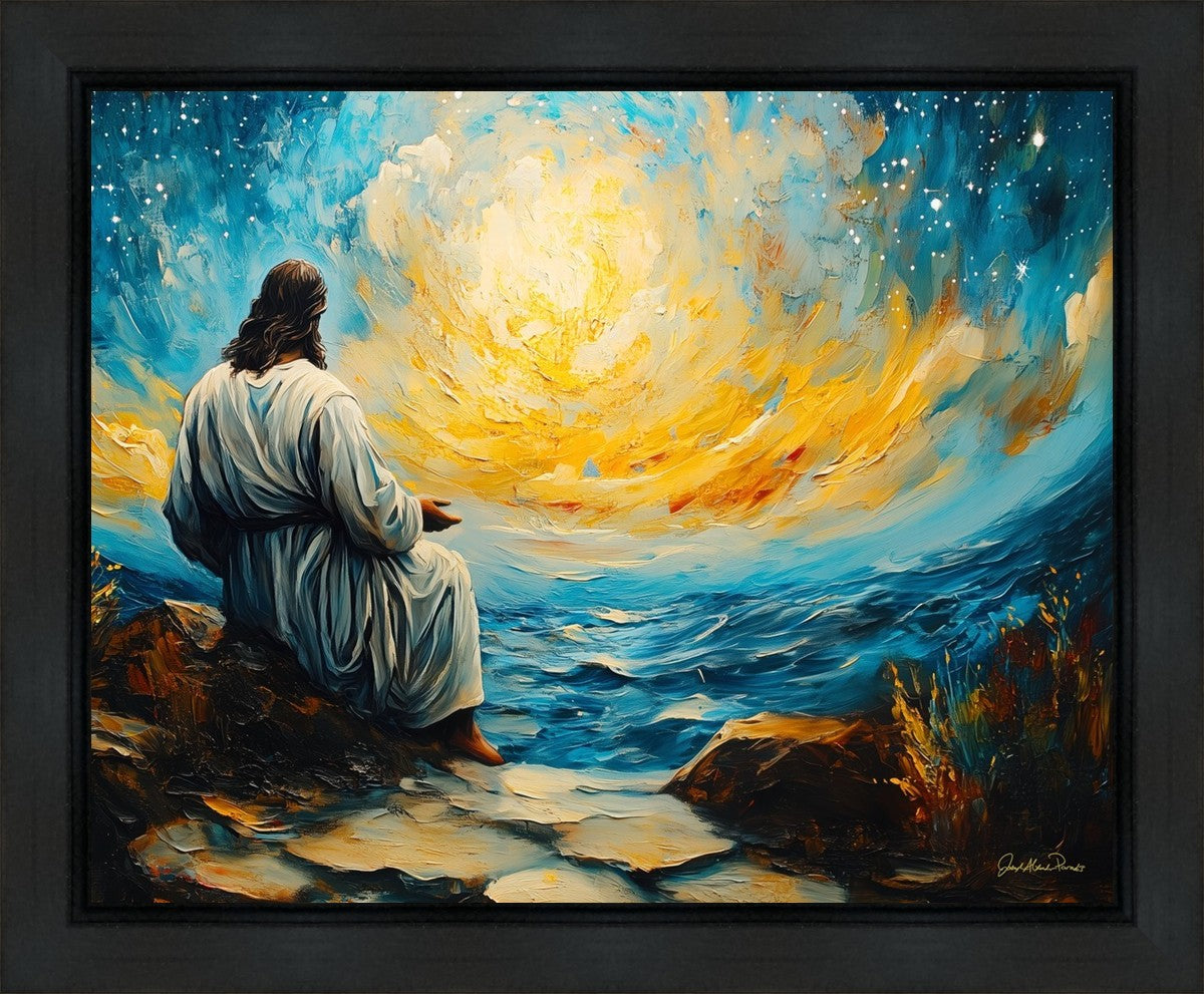 What if the Lord asked you to come sit with Him under a night sky? What would He tell you? What would He show you? How would you feel? This colorful piece ponders the serenity of the thought and explores the possibilities and curiosity of all creation.