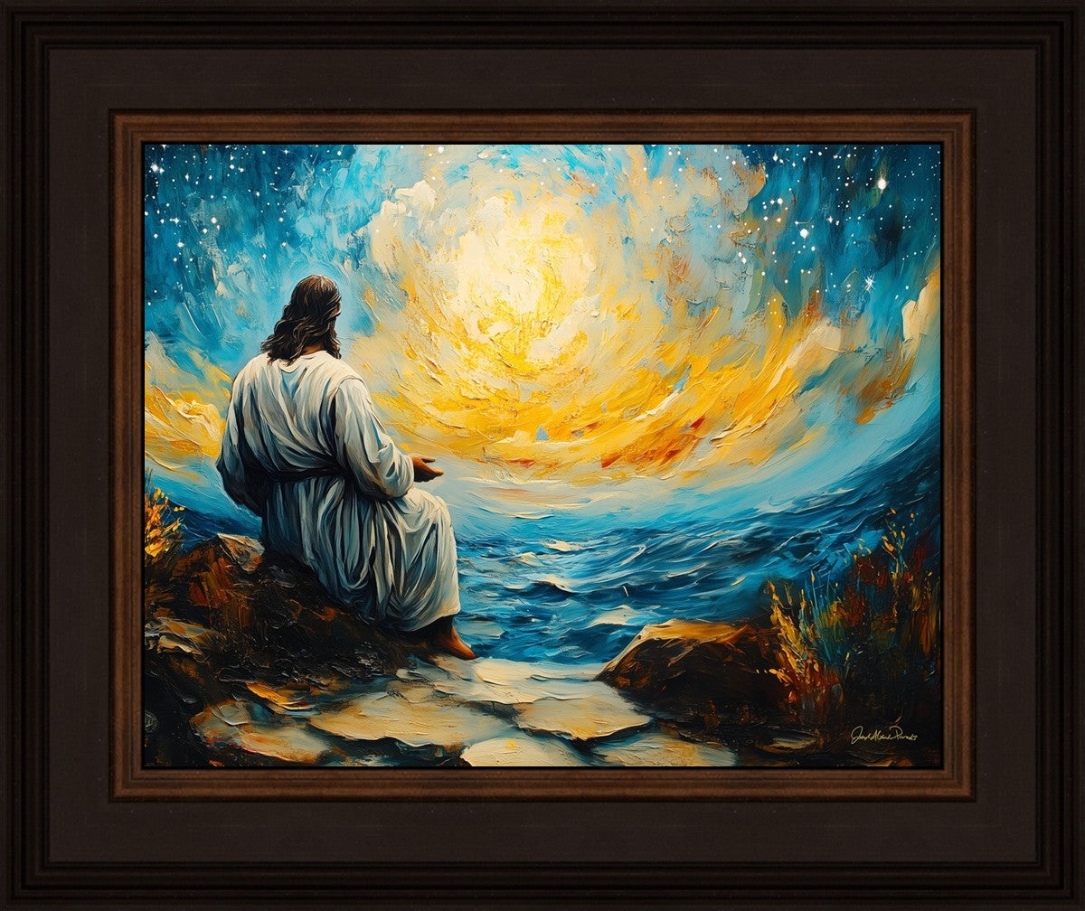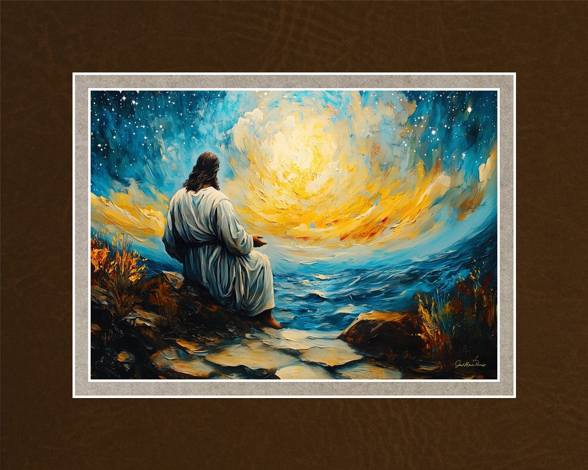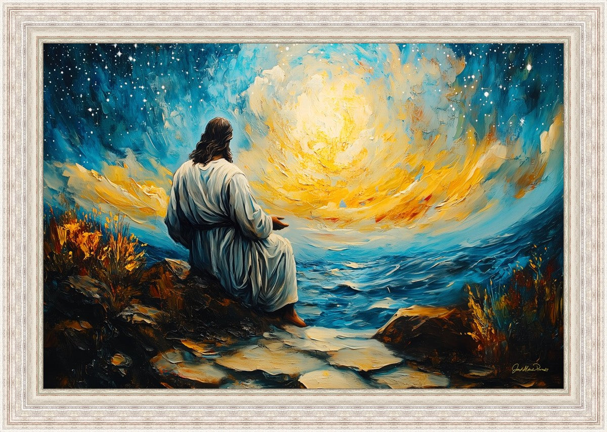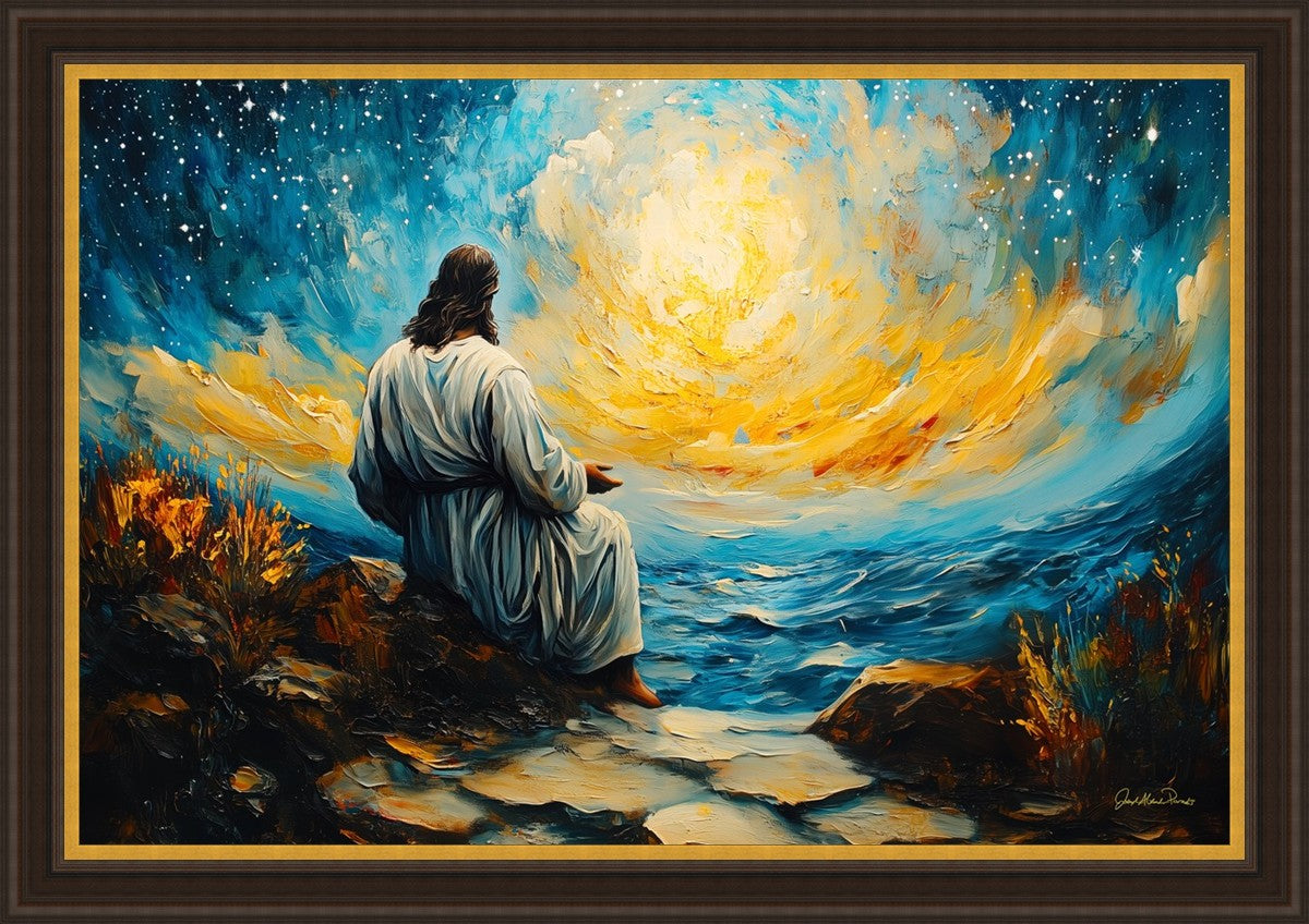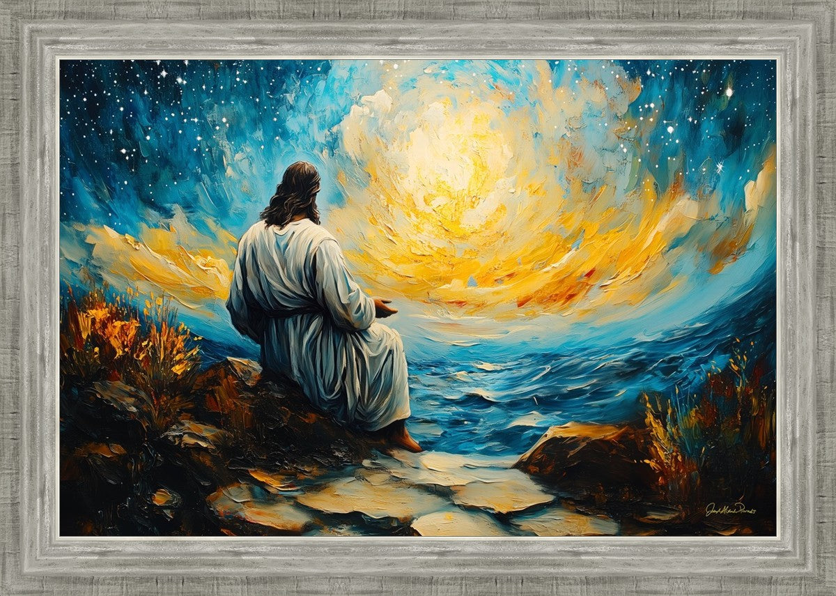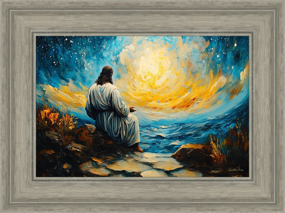 What if the Lord asked you to come sit with Him under a night sky? What would He tell you? What would He show you? How would you feel? This colorful piece ponders the serenity of the thought and explores the possibilities and curiosity of all creation.