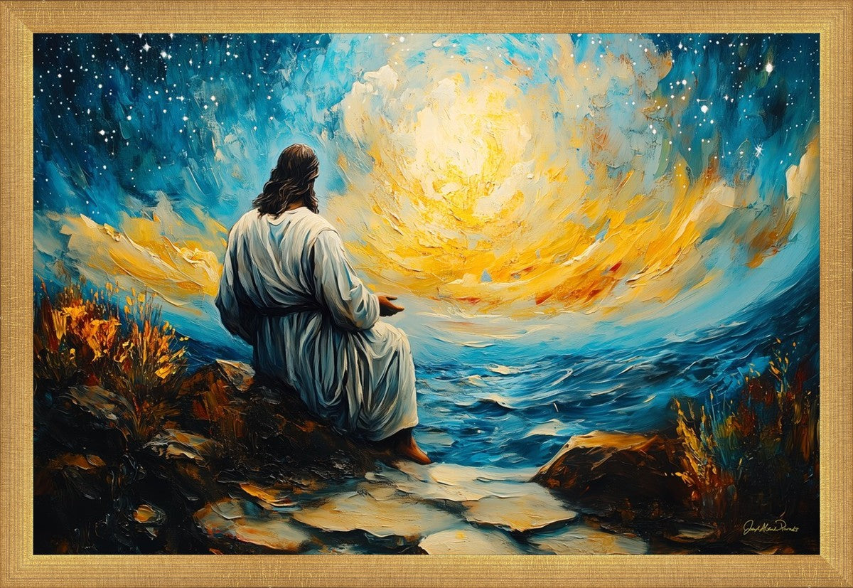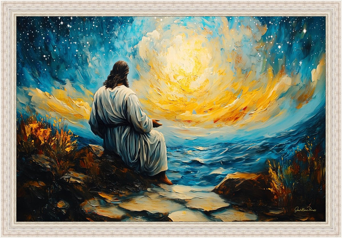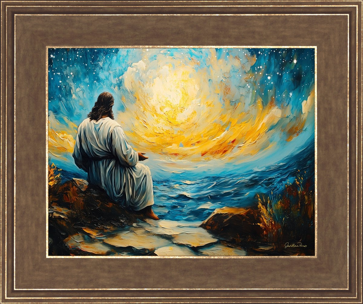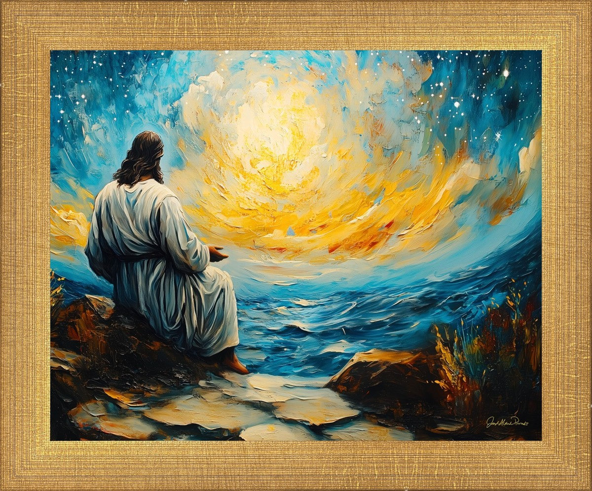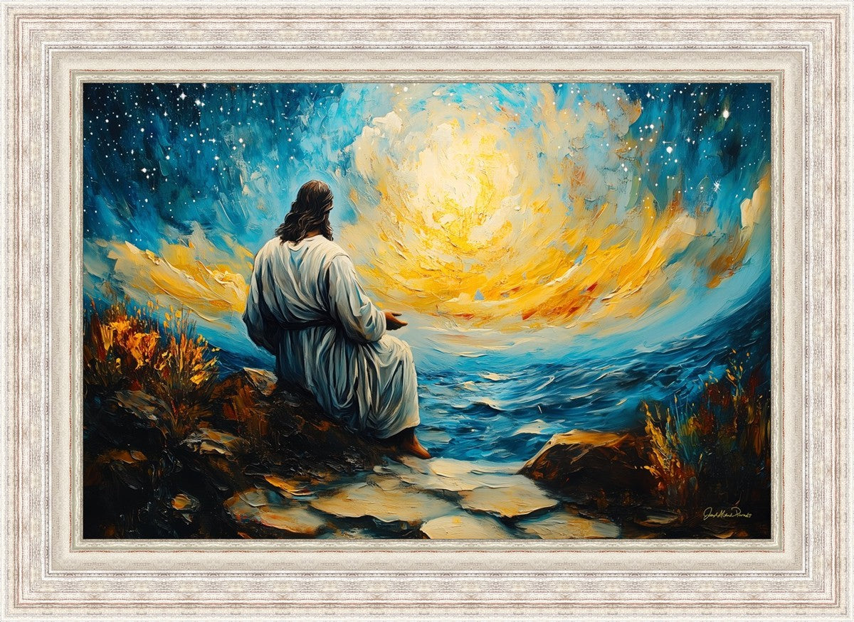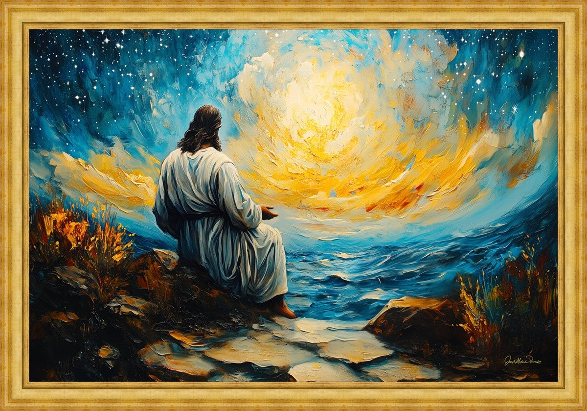 What if the Lord asked you to come sit with Him under a night sky? What would He tell you? What would He show you? How would you feel? This colorful piece ponders the serenity of the thought and explores the possibilities and curiosity of all creation.