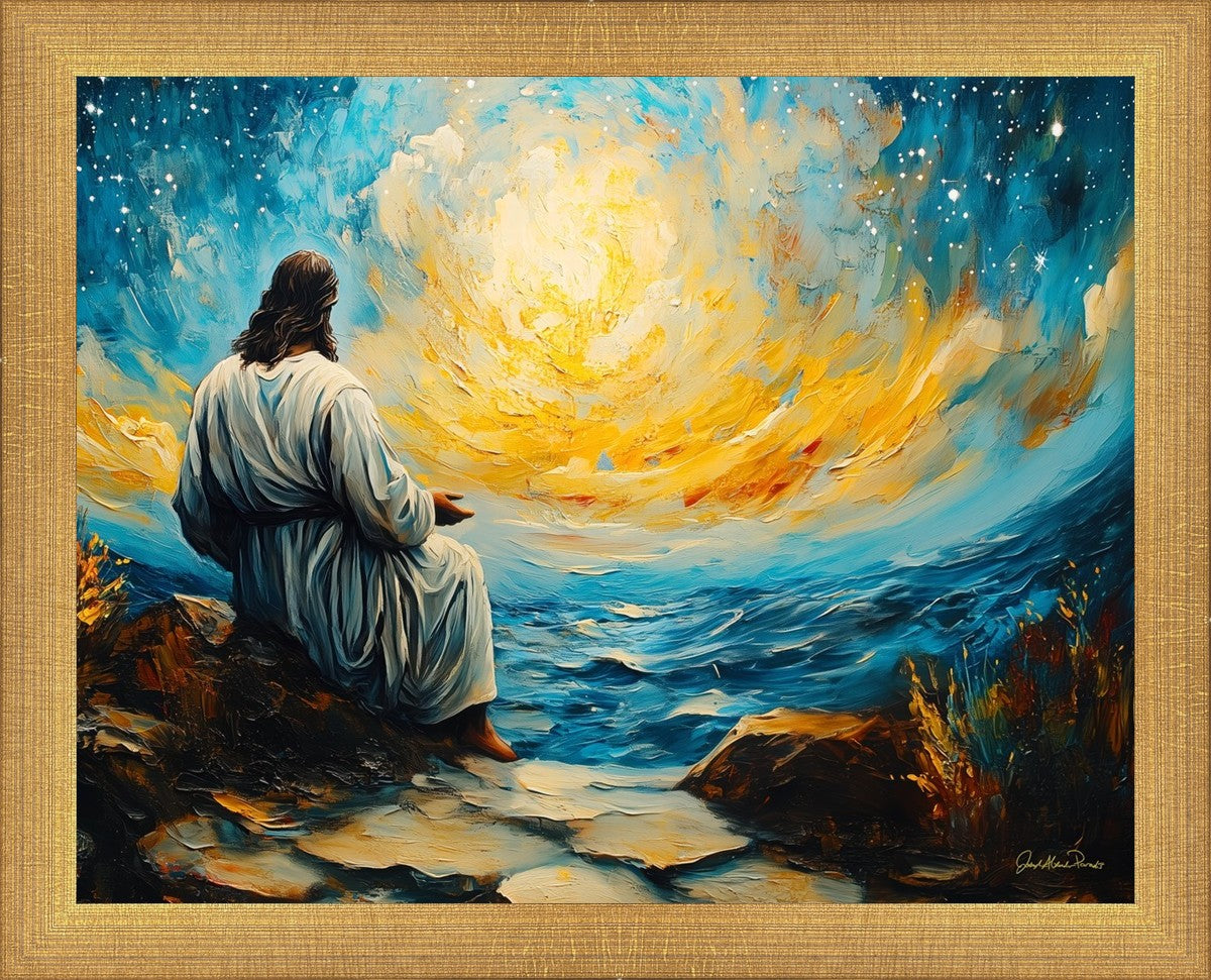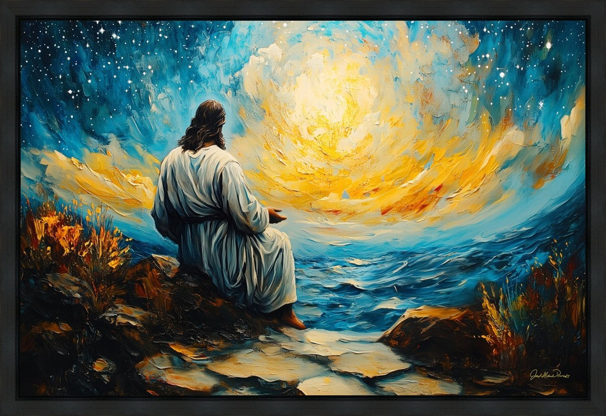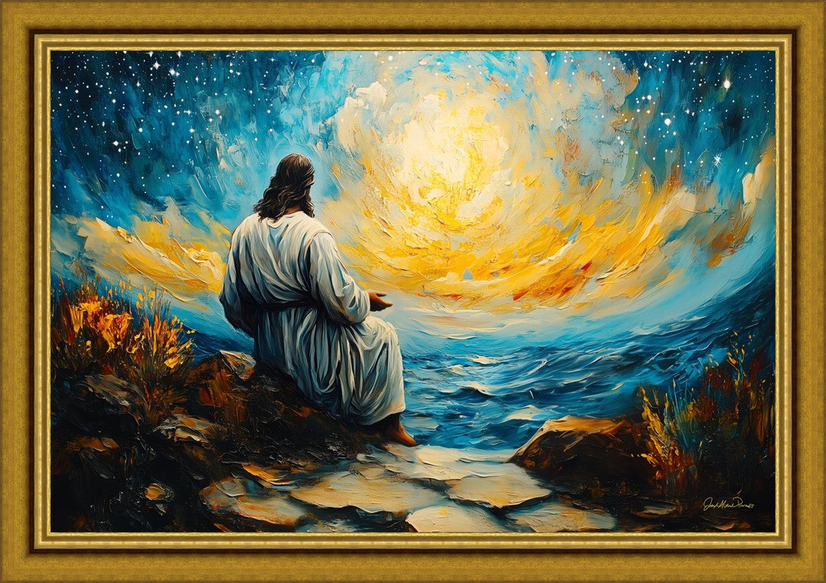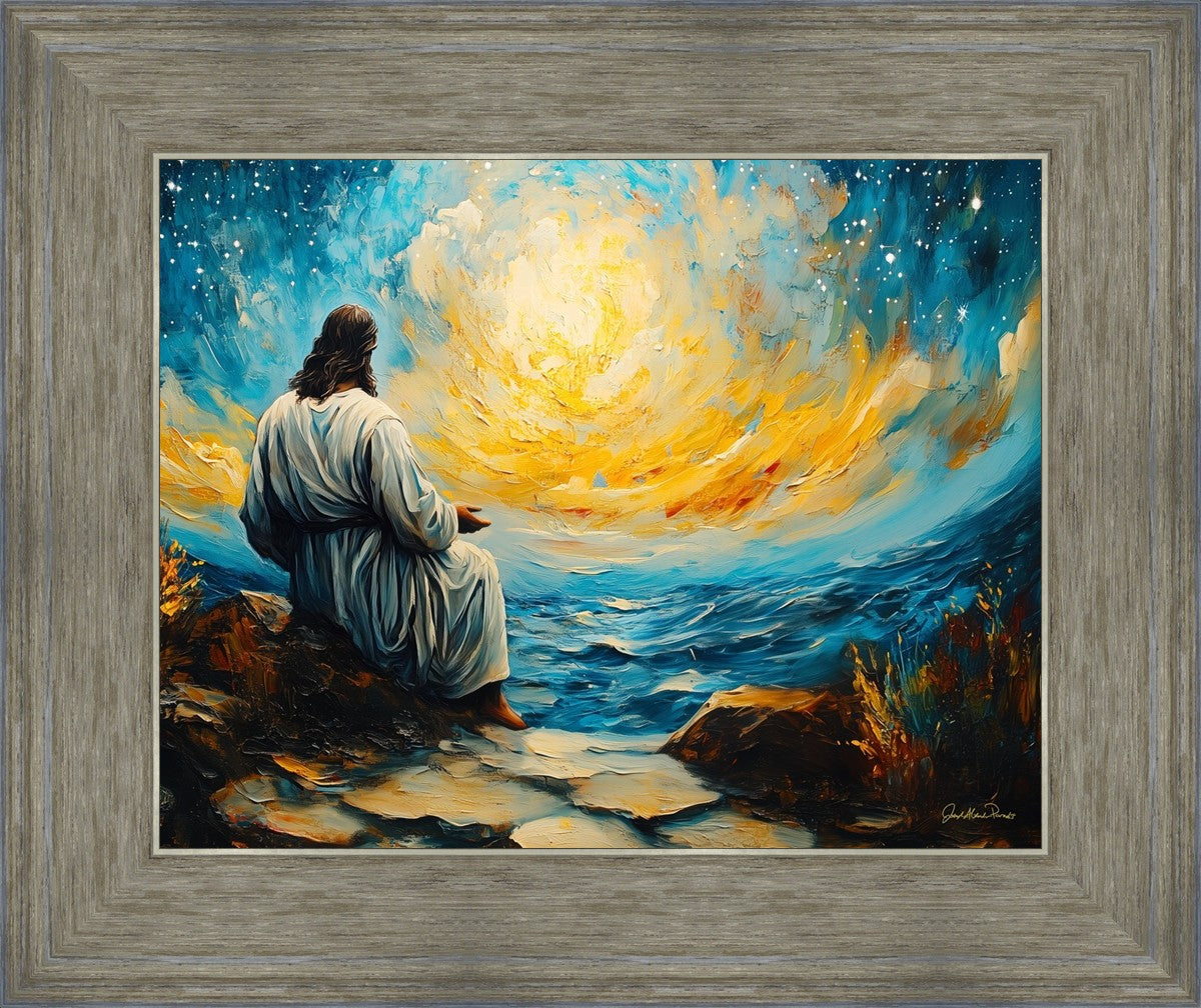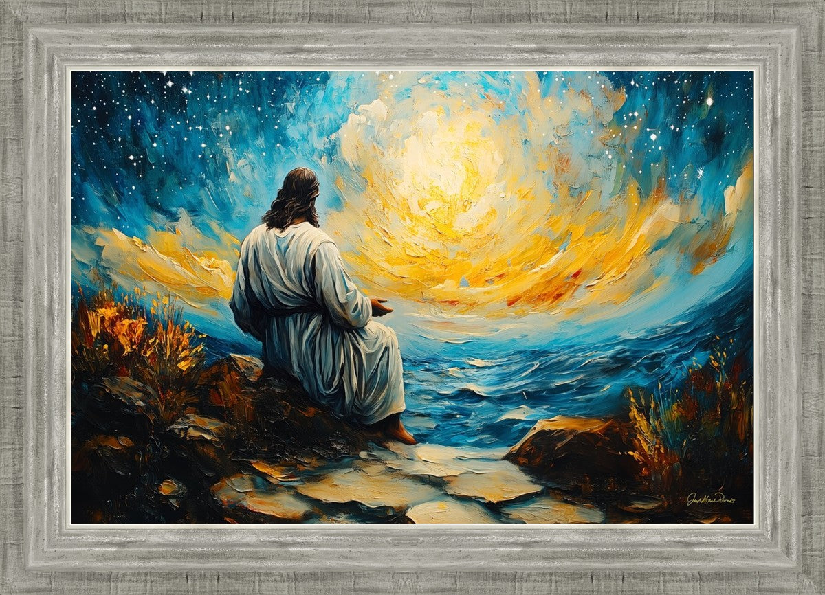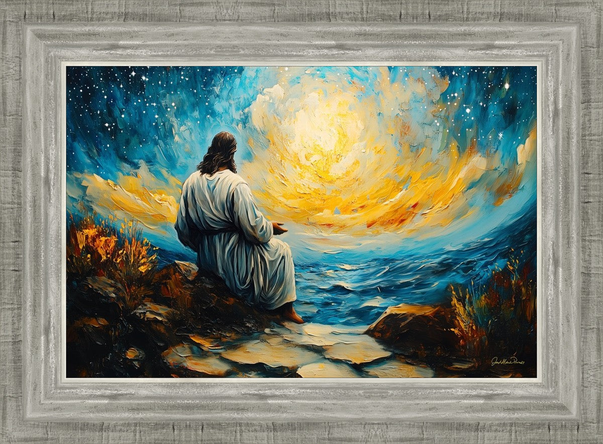 What if the Lord asked you to come sit with Him under a night sky? What would He tell you? What would He show you? How would you feel? This colorful piece ponders the serenity of the thought and explores the possibilities and curiosity of all creation.