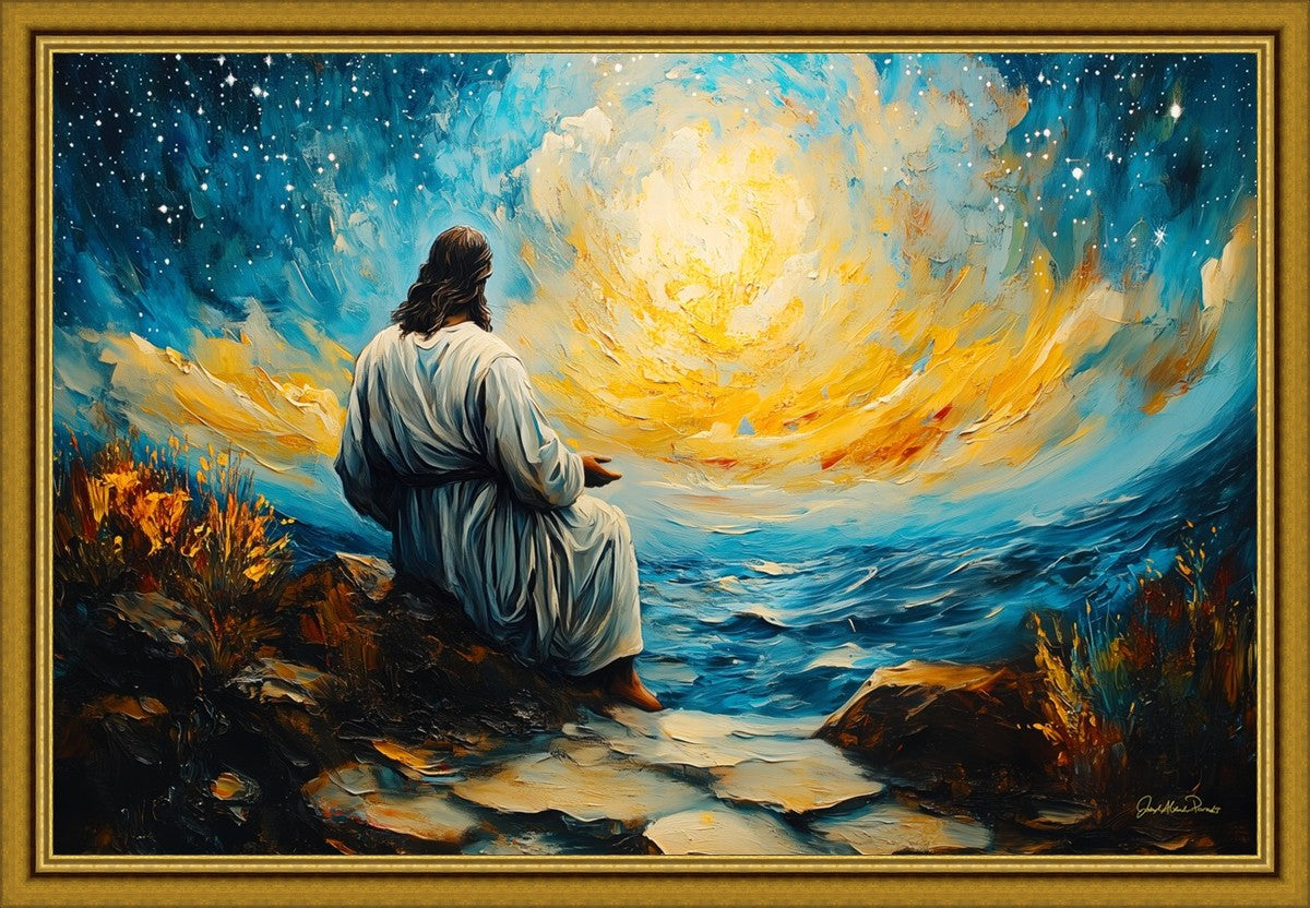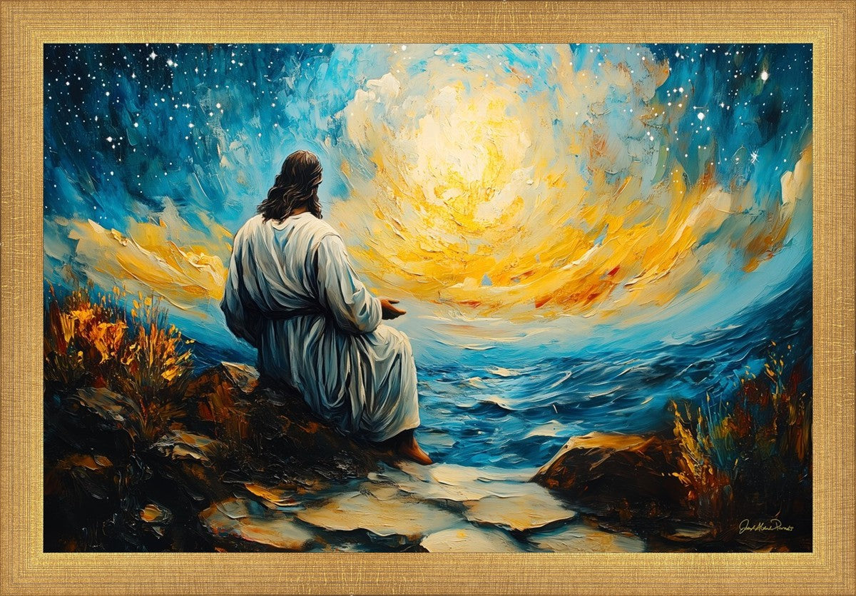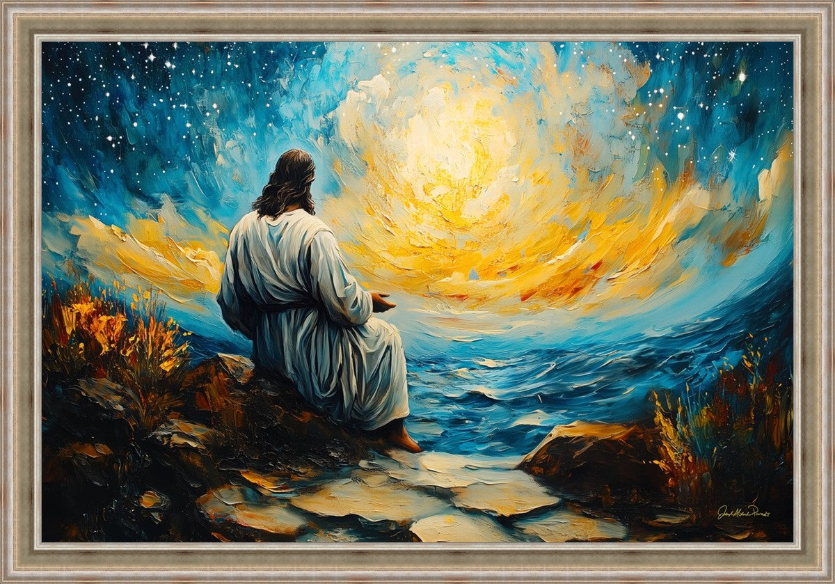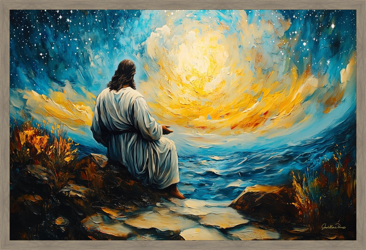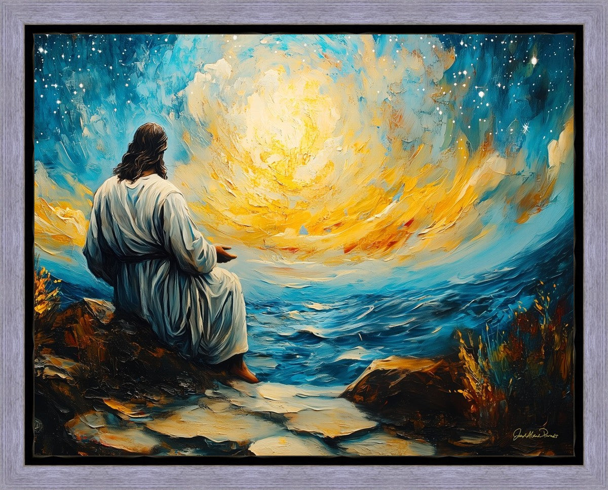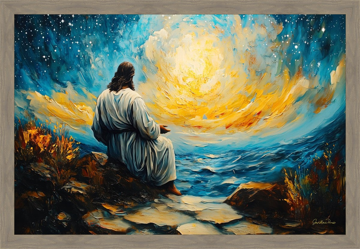 What if the Lord asked you to come sit with Him under a night sky? What would He tell you? What would He show you? How would you feel? This colorful piece ponders the serenity of the thought and explores the possibilities and curiosity of all creation.