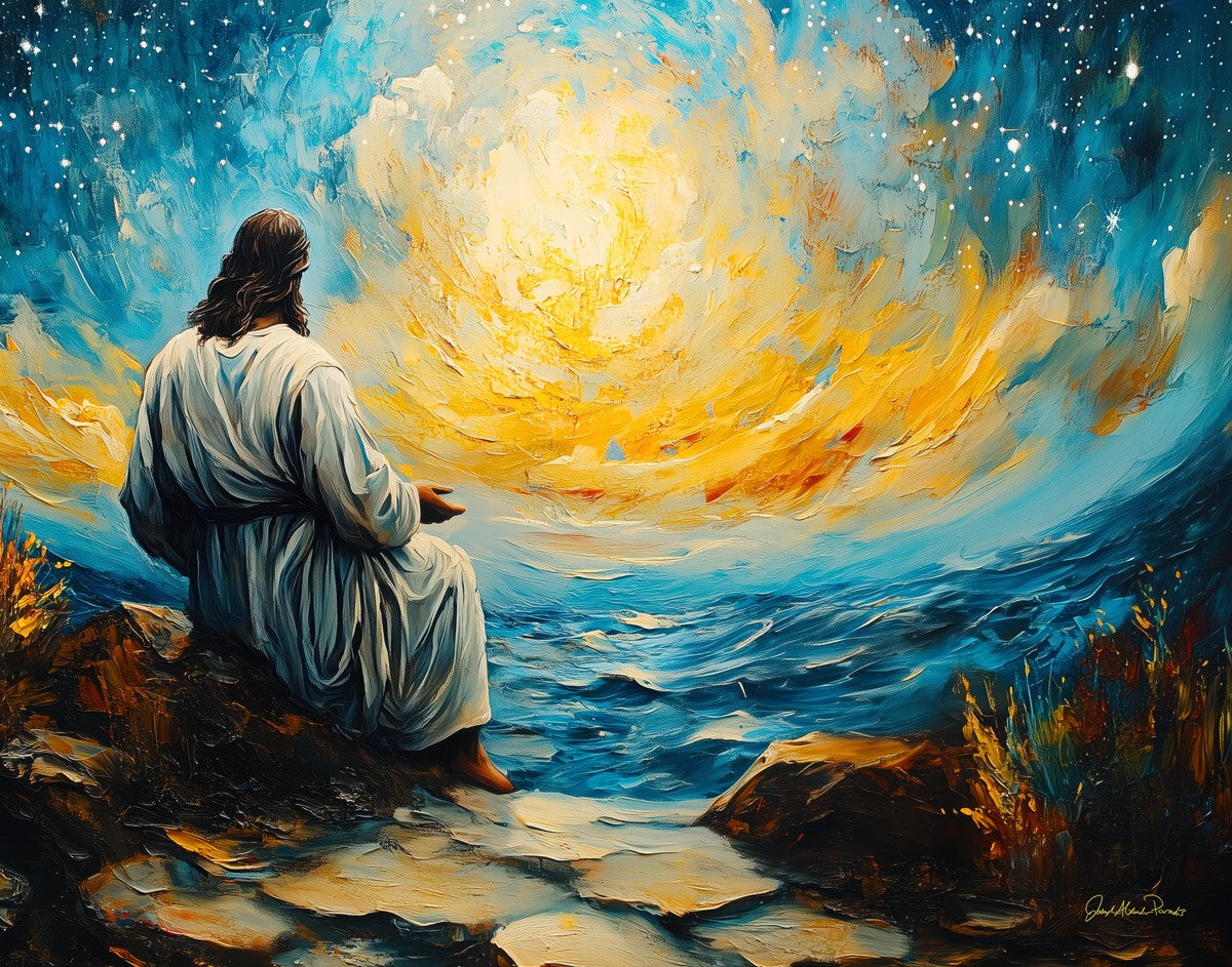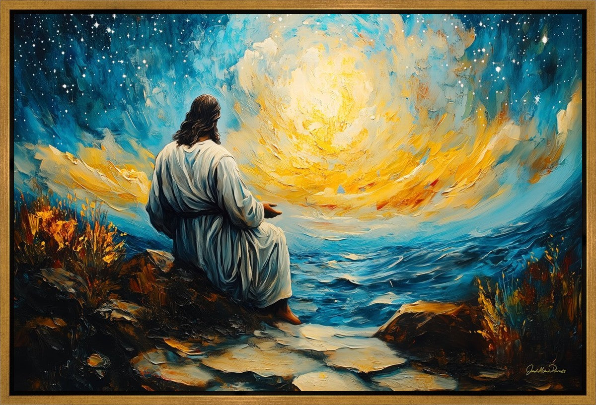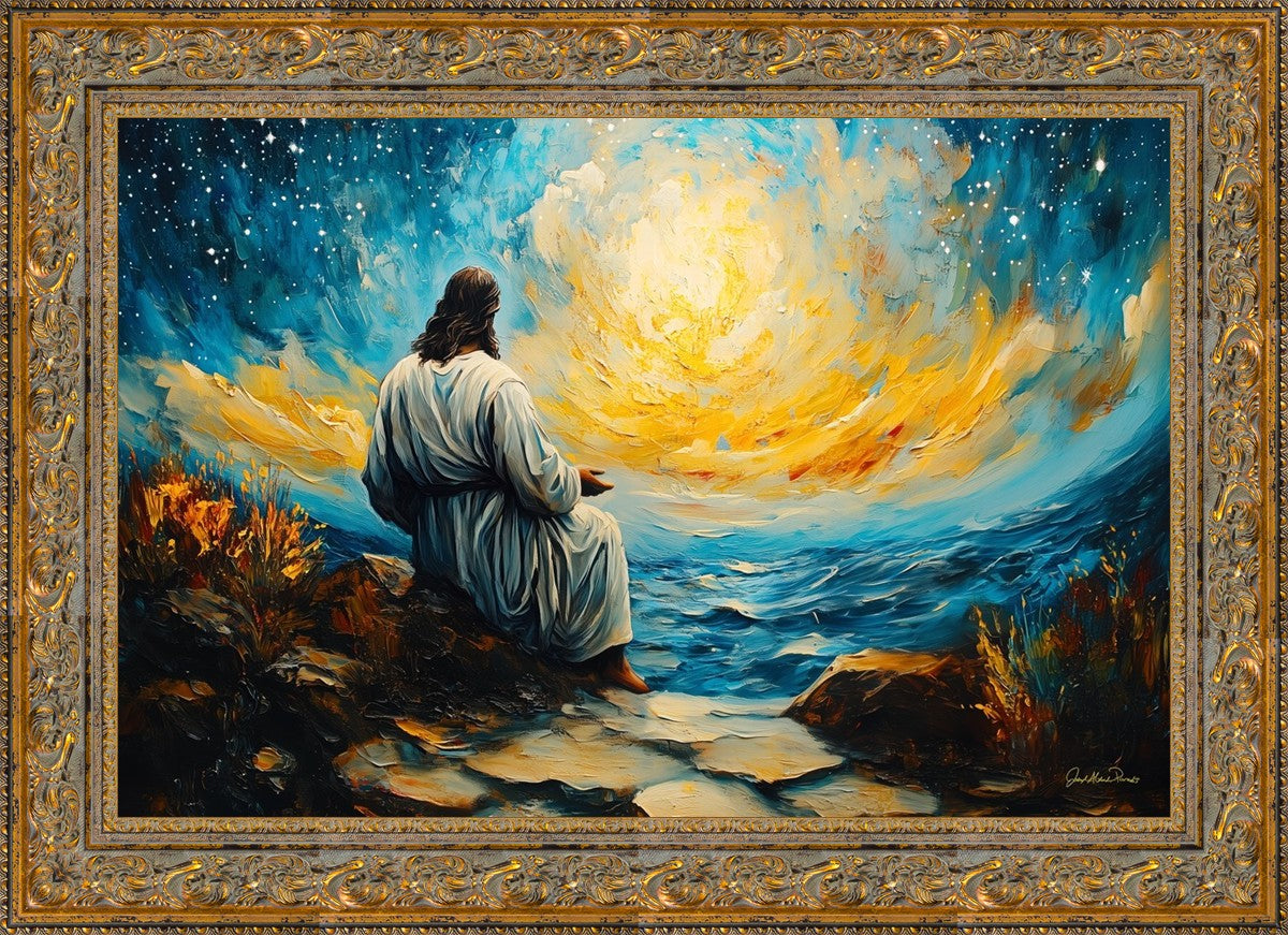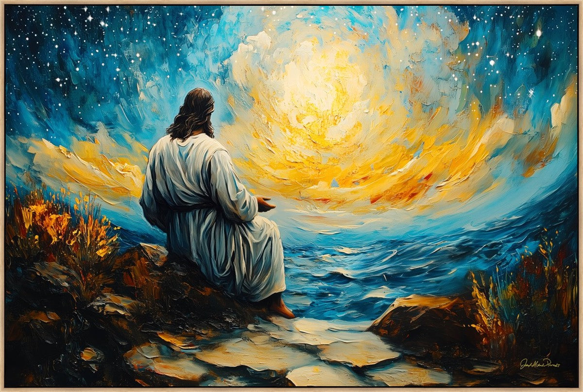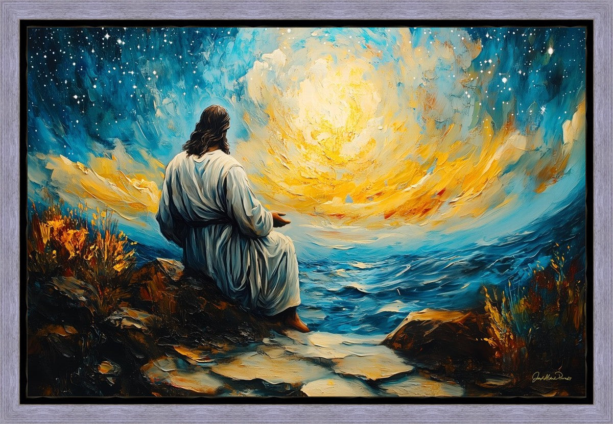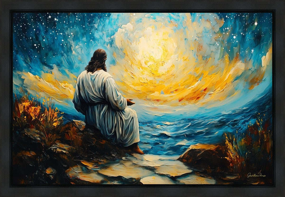 What if the Lord asked you to come sit with Him under a night sky? What would He tell you? What would He show you? How would you feel? This colorful piece ponders the serenity of the thought and explores the possibilities and curiosity of all creation.