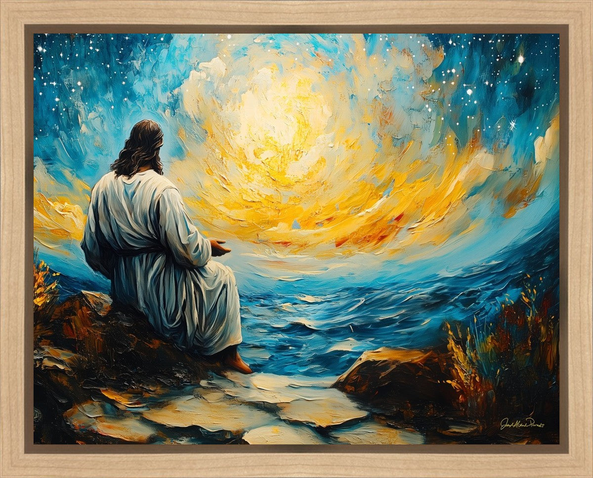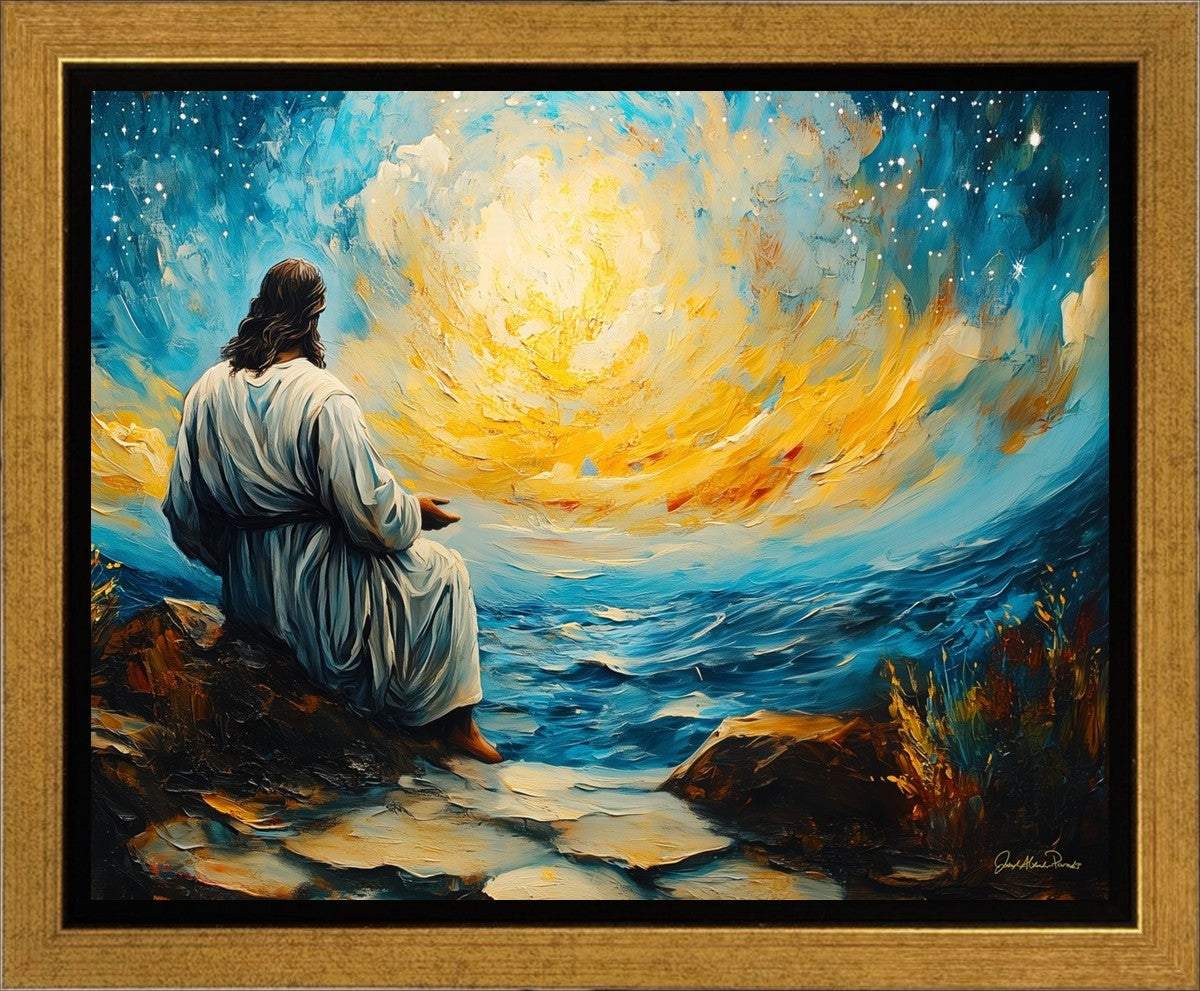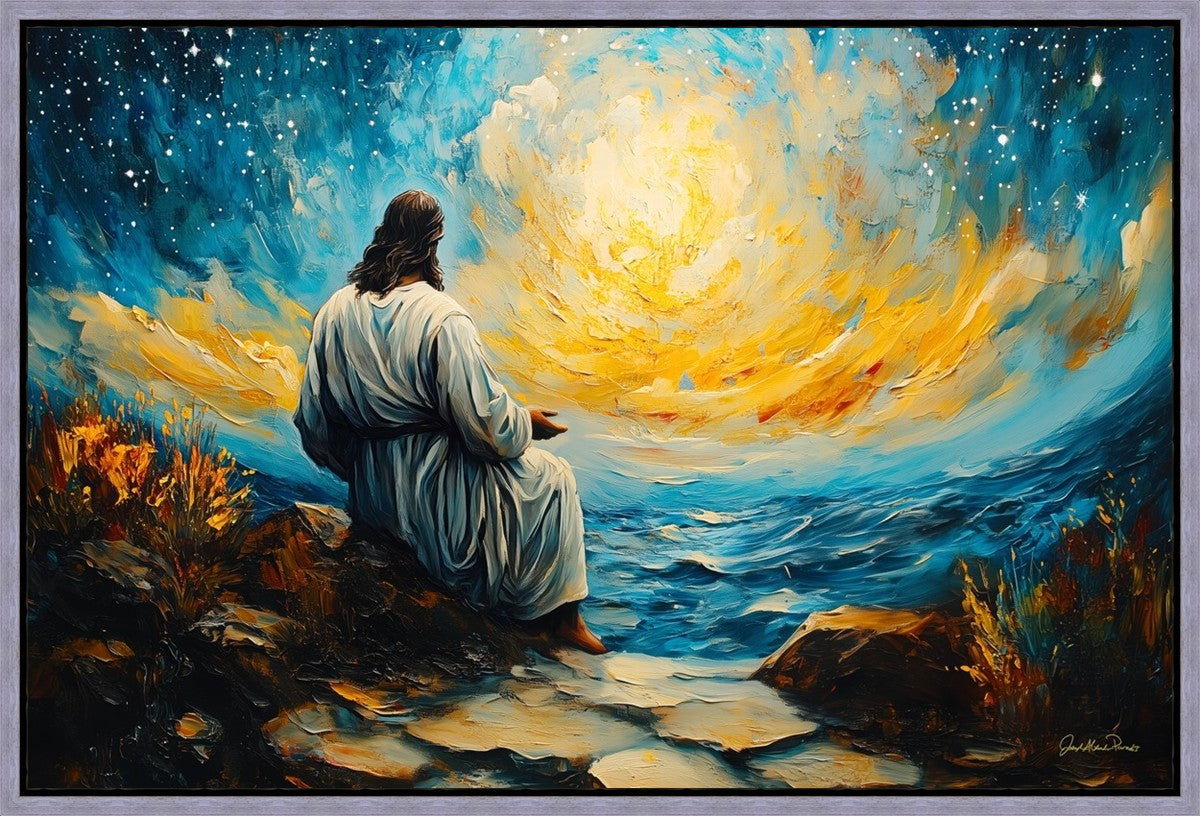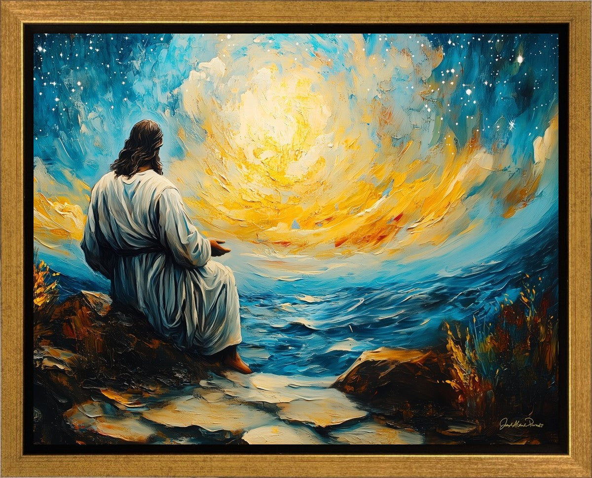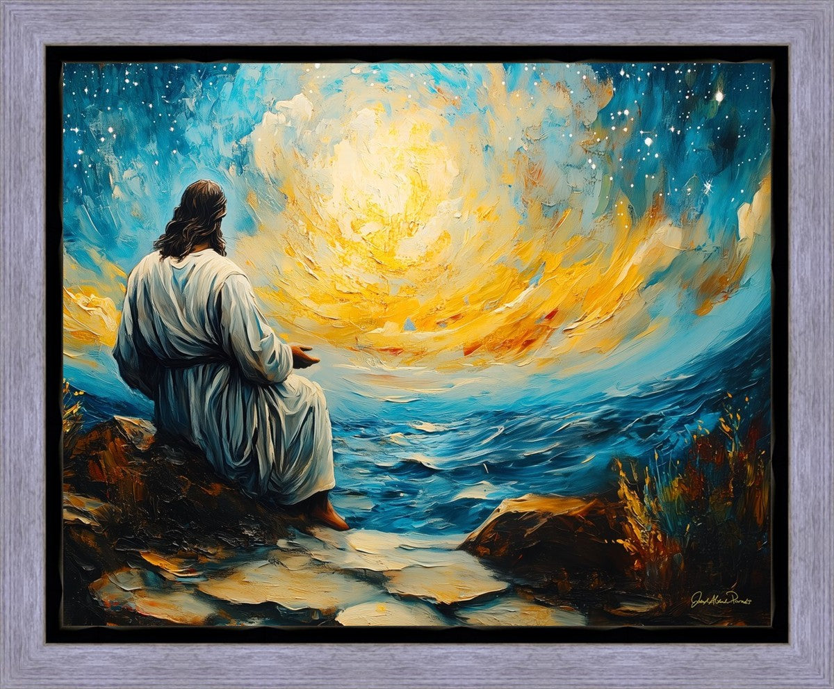 What if the Lord asked you to come sit with Him under a night sky? What would He tell you? What would He show you? How would you feel? This colorful piece ponders the serenity of the thought and explores the possibilities and curiosity of all creation.