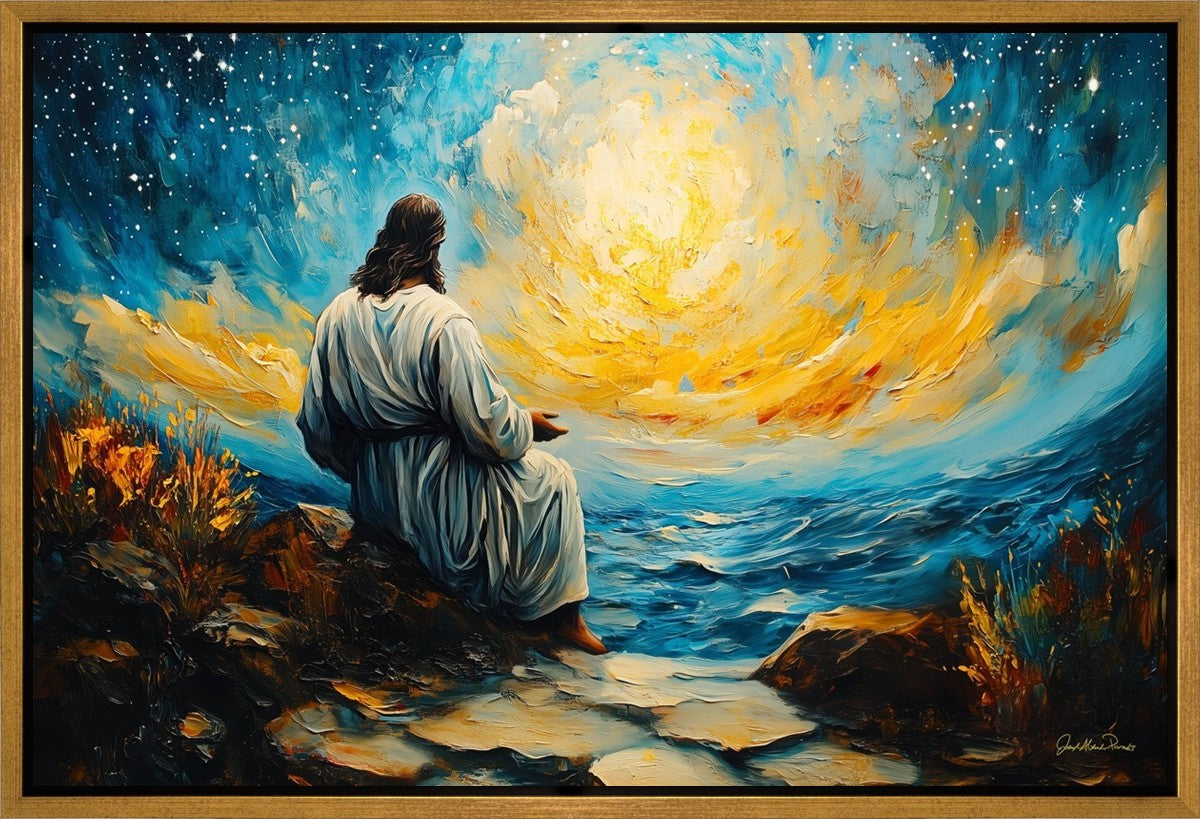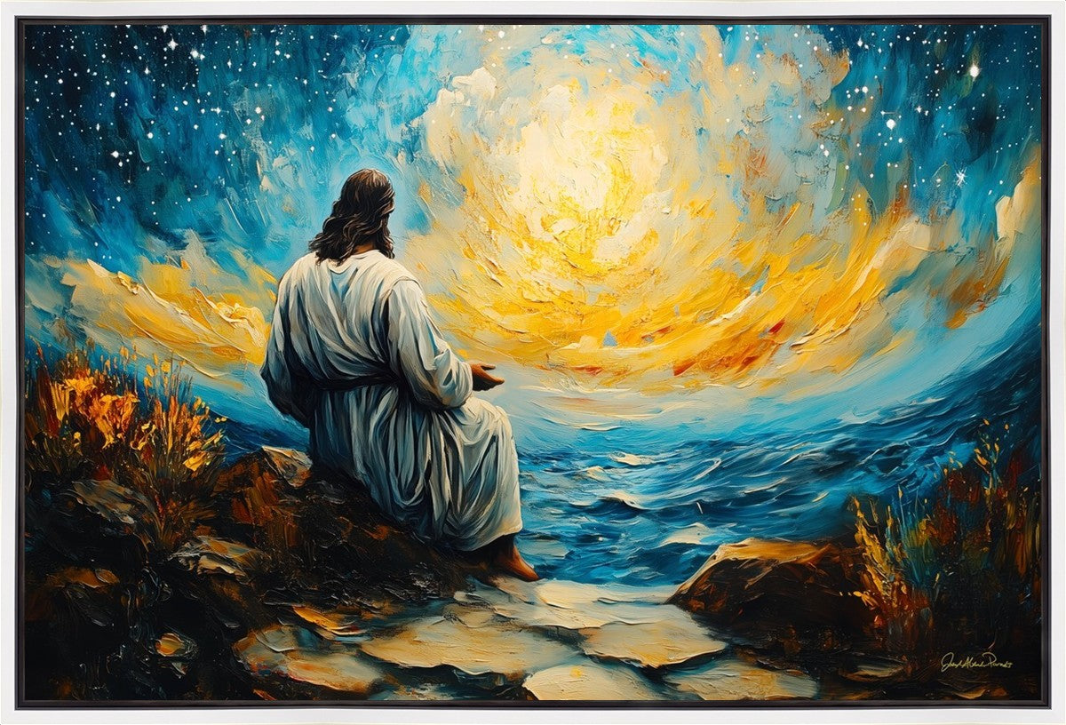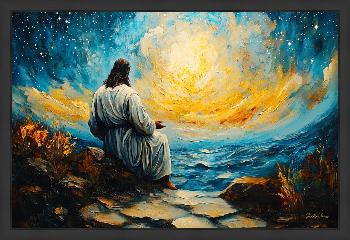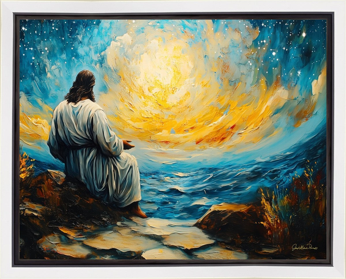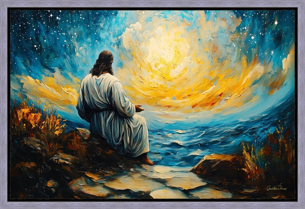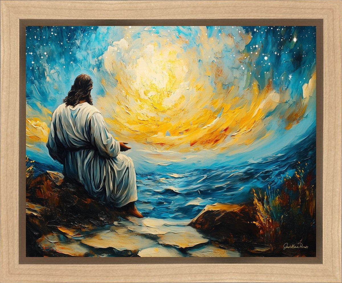 What if the Lord asked you to come sit with Him under a night sky? What would He tell you? What would He show you? How would you feel? This colorful piece ponders the serenity of the thought and explores the possibilities and curiosity of all creation.