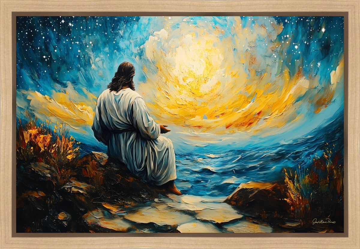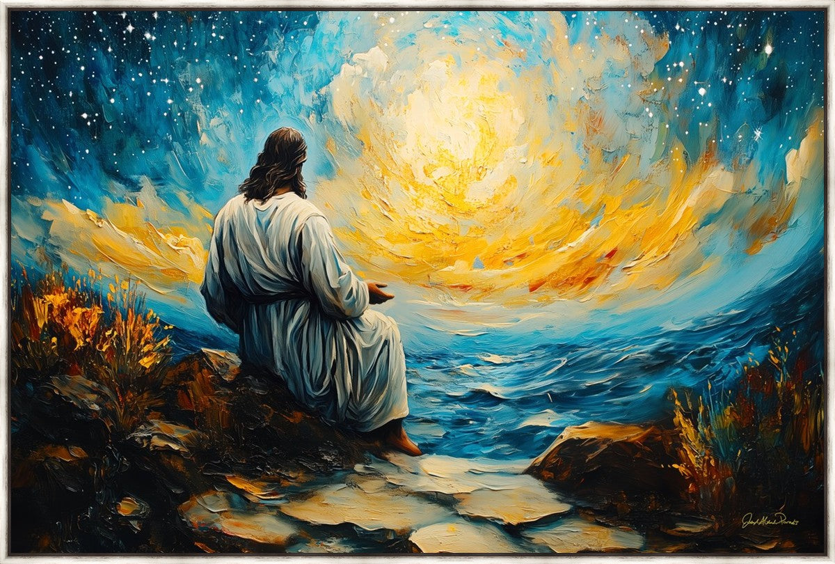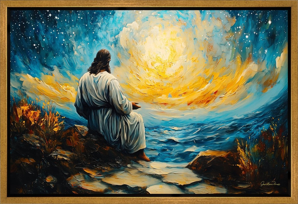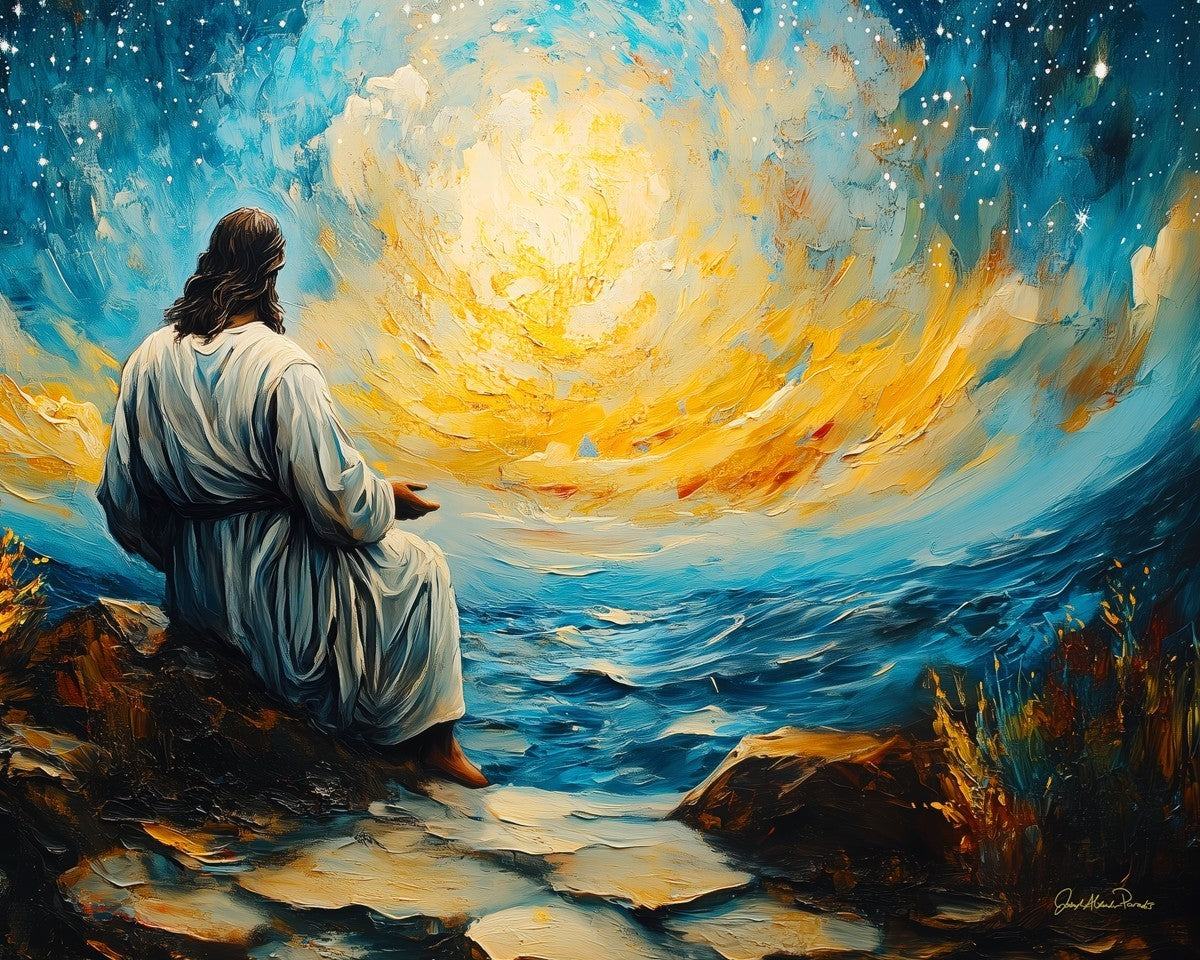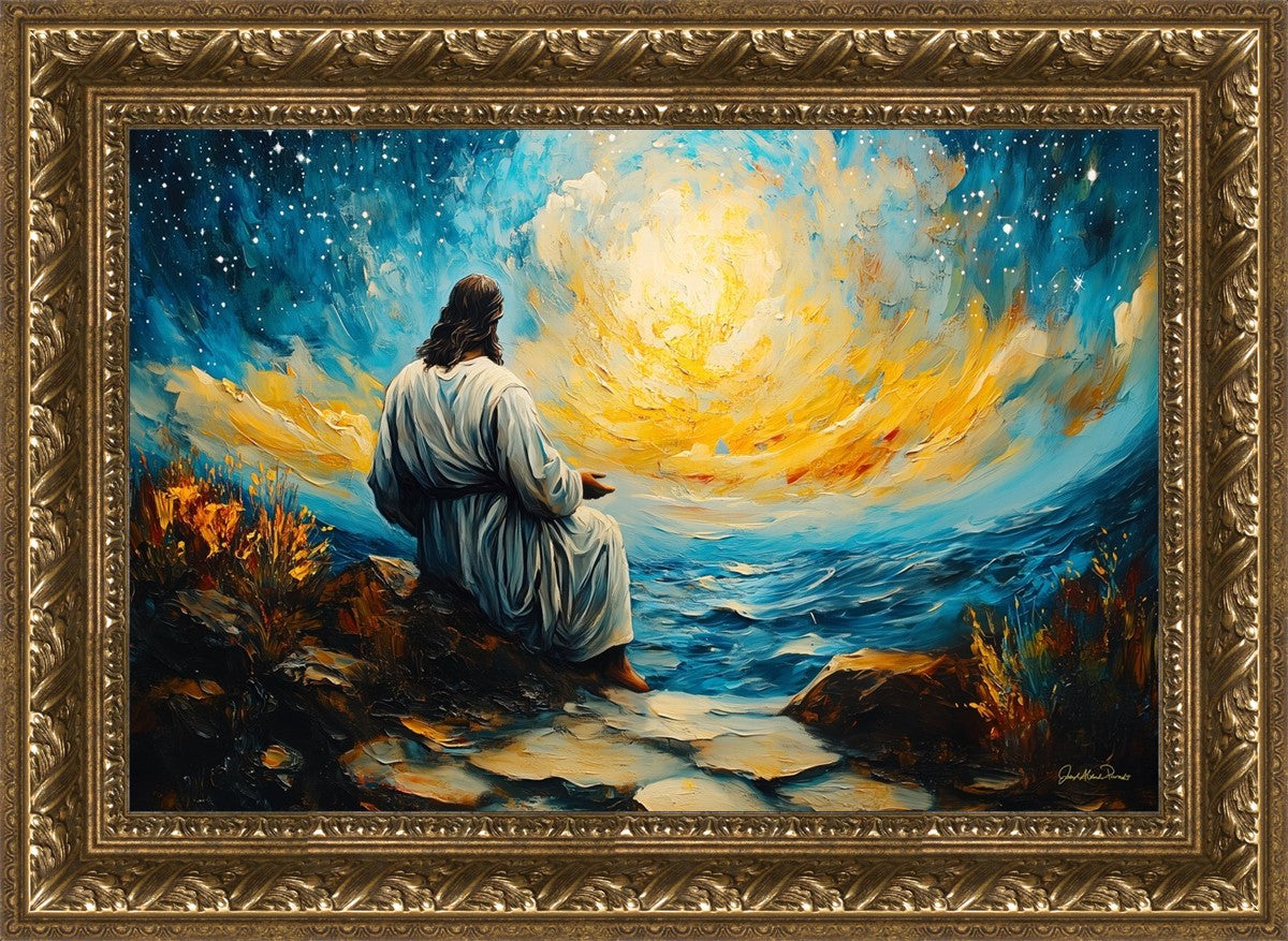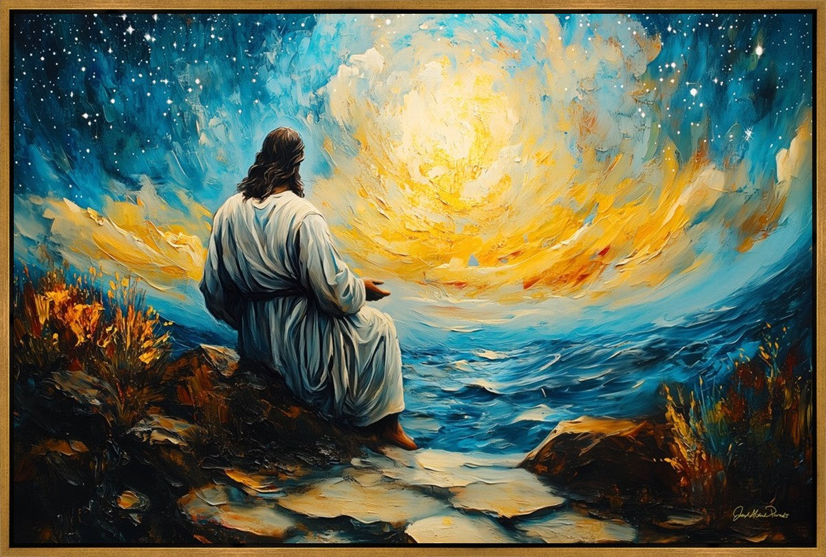 What if the Lord asked you to come sit with Him under a night sky? What would He tell you? What would He show you? How would you feel? This colorful piece ponders the serenity of the thought and explores the possibilities and curiosity of all creation.