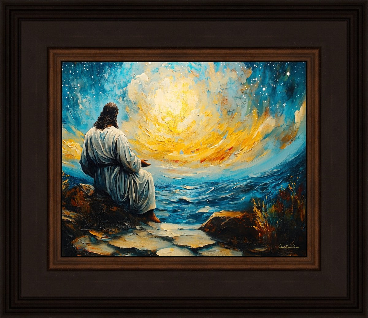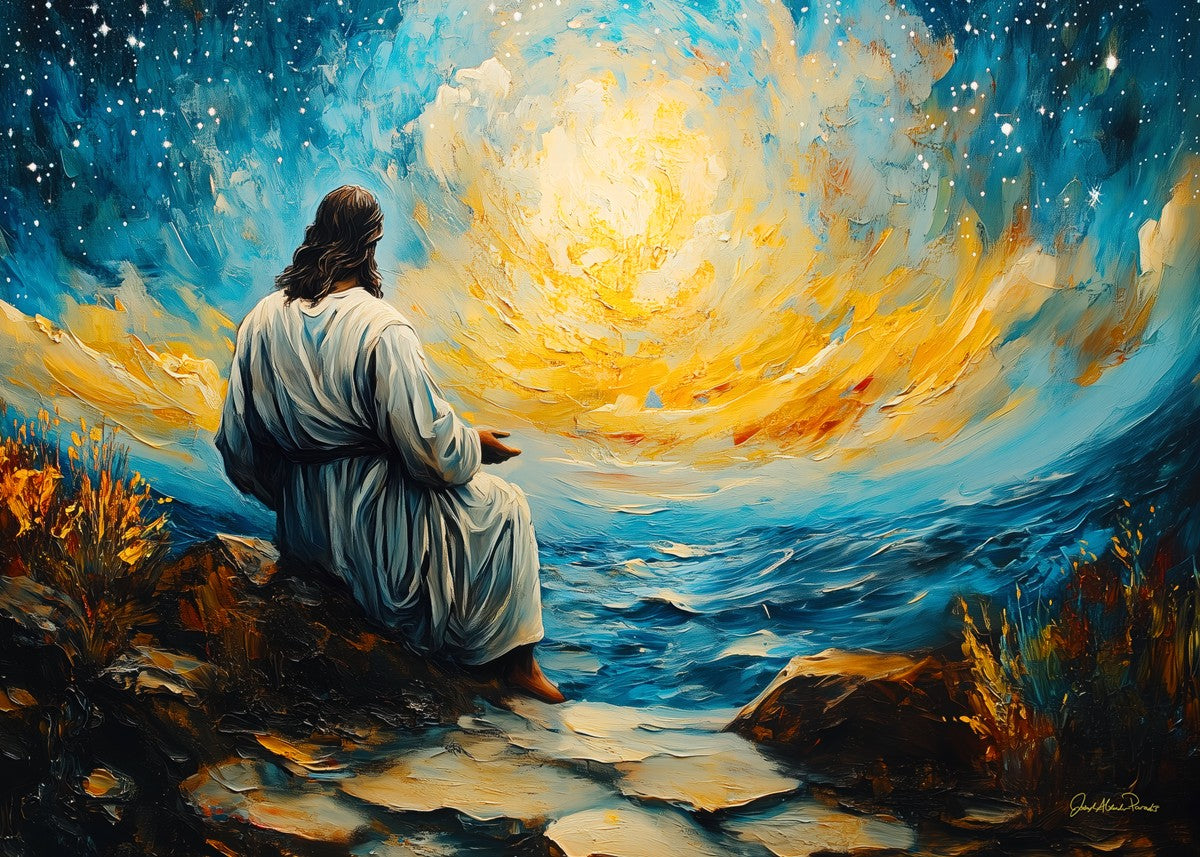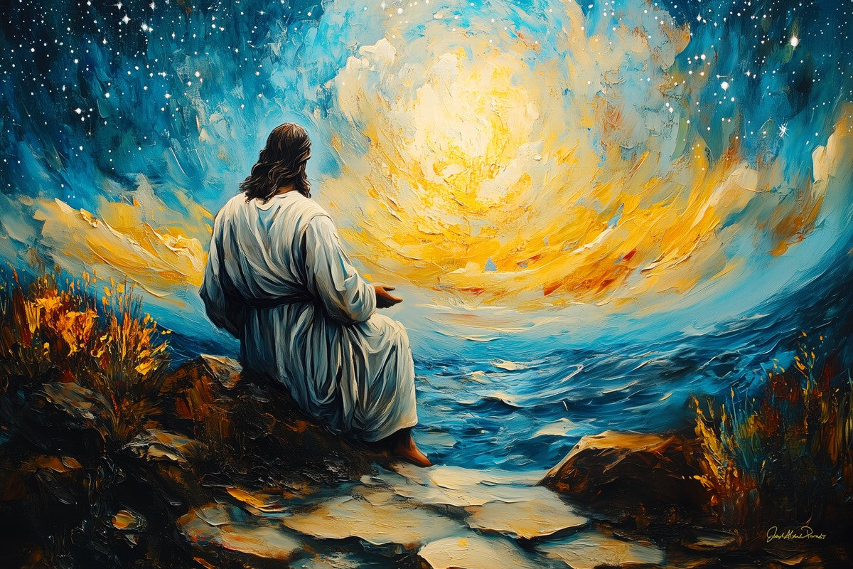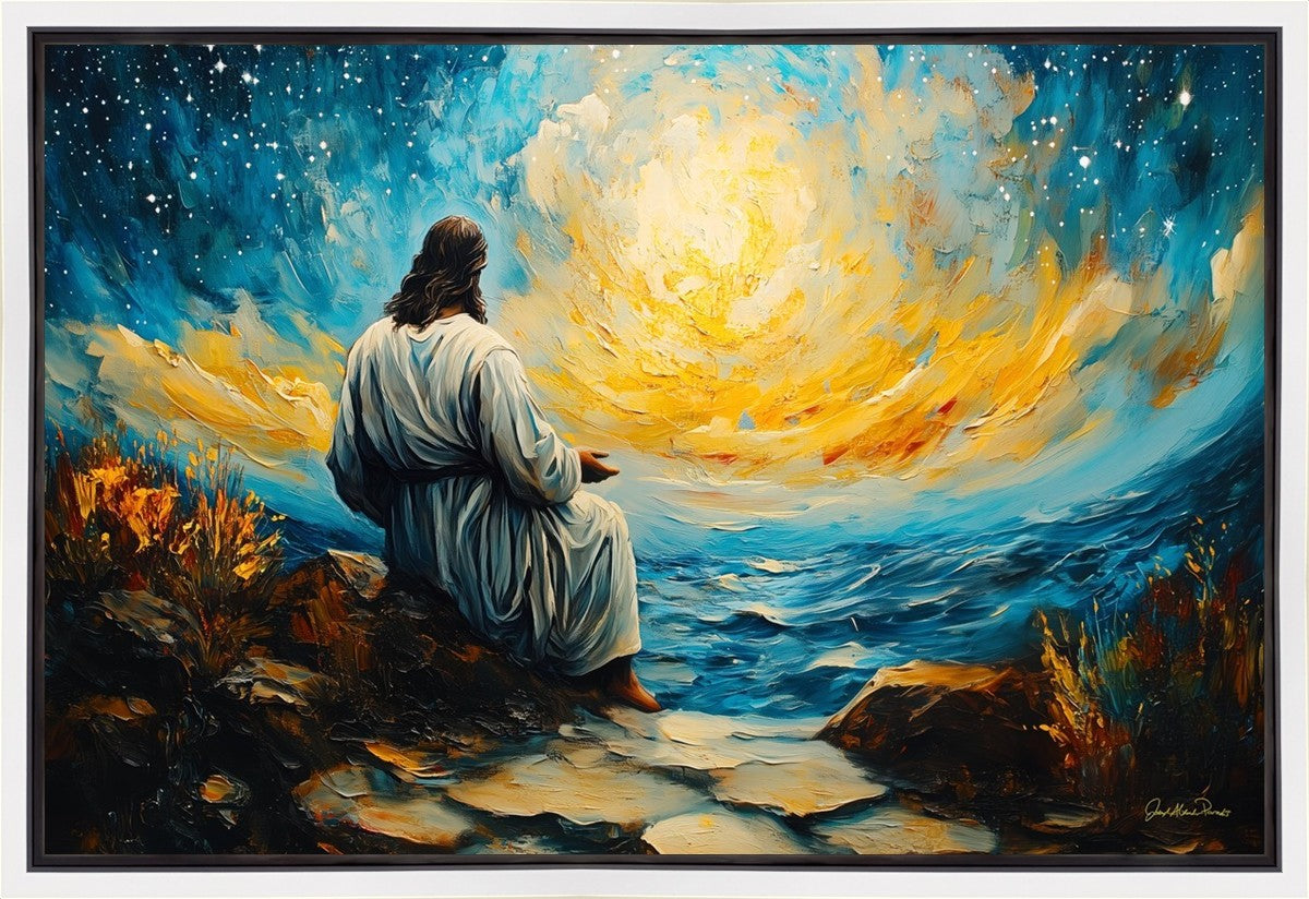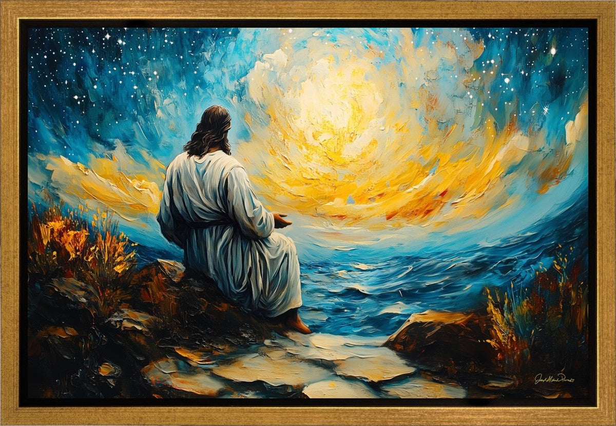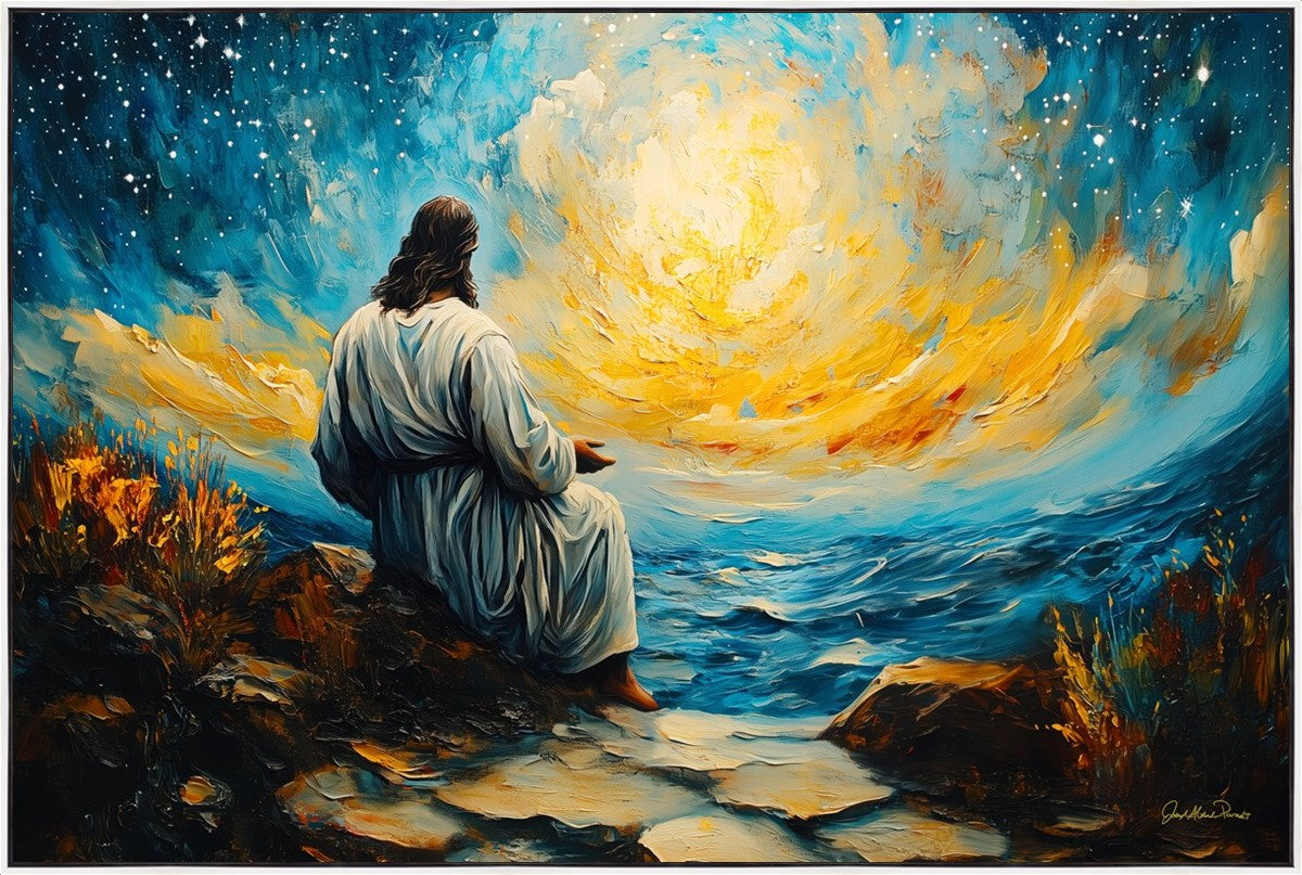 What if the Lord asked you to come sit with Him under a night sky? What would He tell you? What would He show you? How would you feel? This colorful piece ponders the serenity of the thought and explores the possibilities and curiosity of all creation.