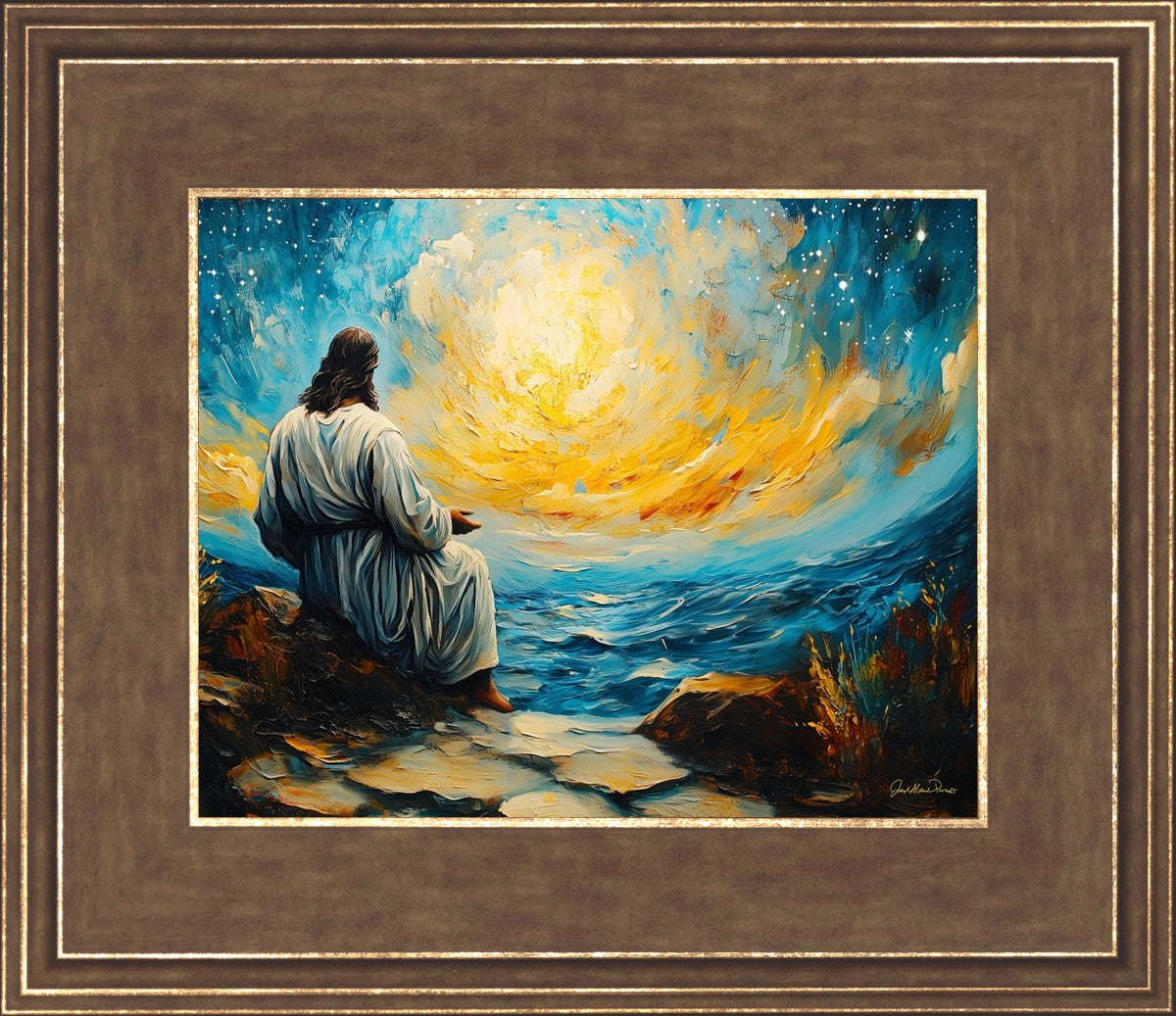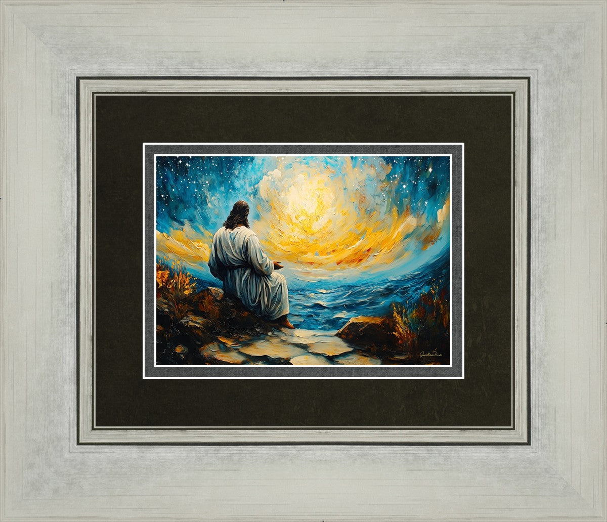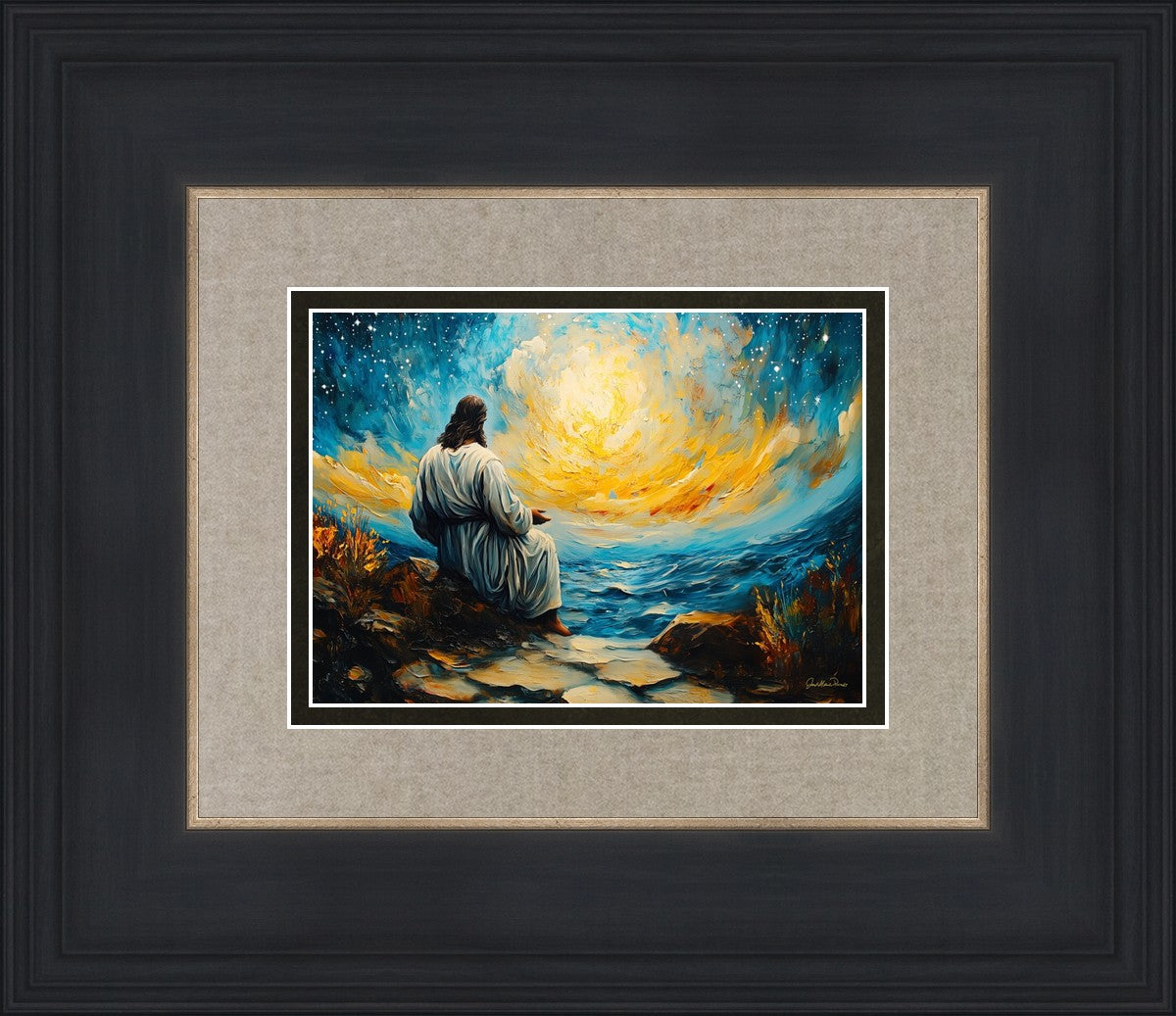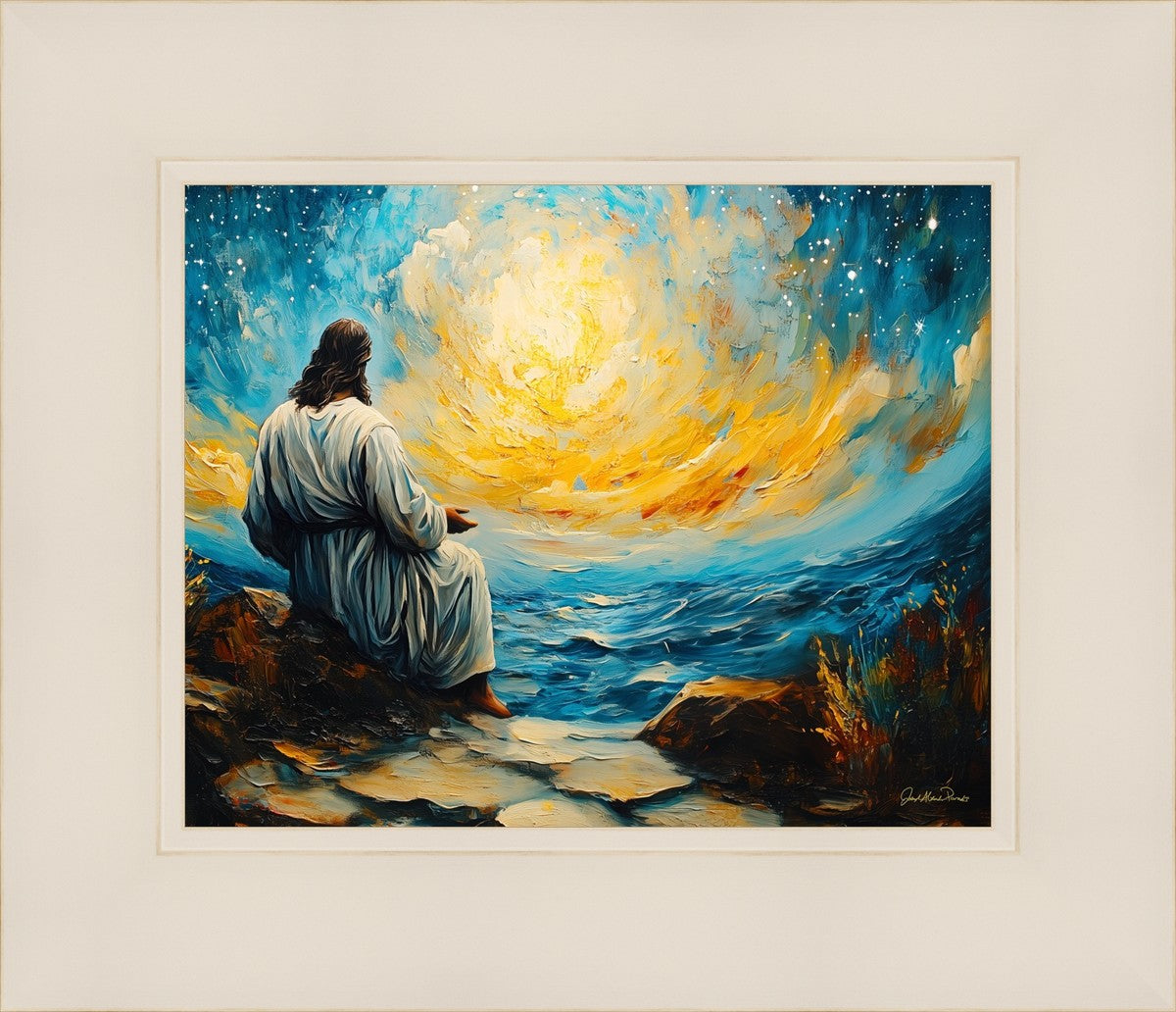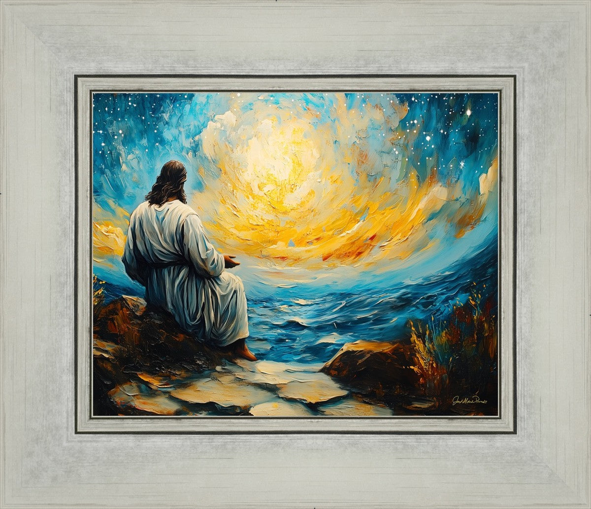 What if the Lord asked you to come sit with Him under a night sky? What would He tell you? What would He show you? How would you feel? This colorful piece ponders the serenity of the thought and explores the possibilities and curiosity of all creation.