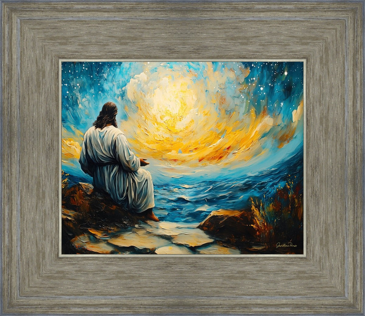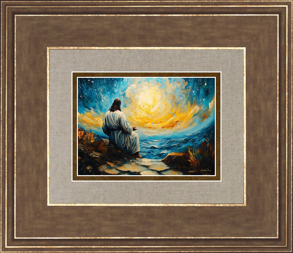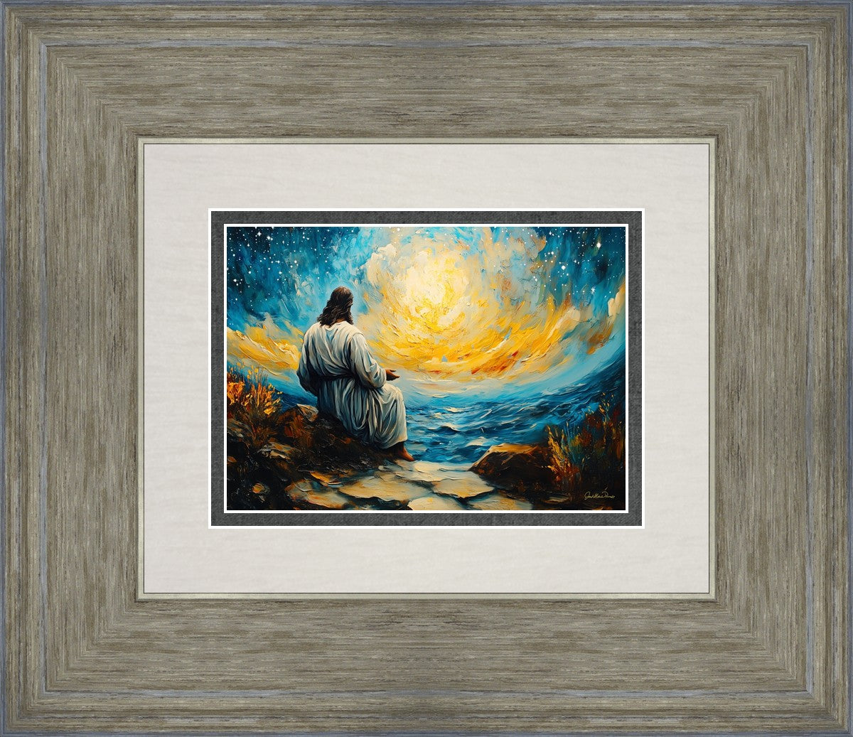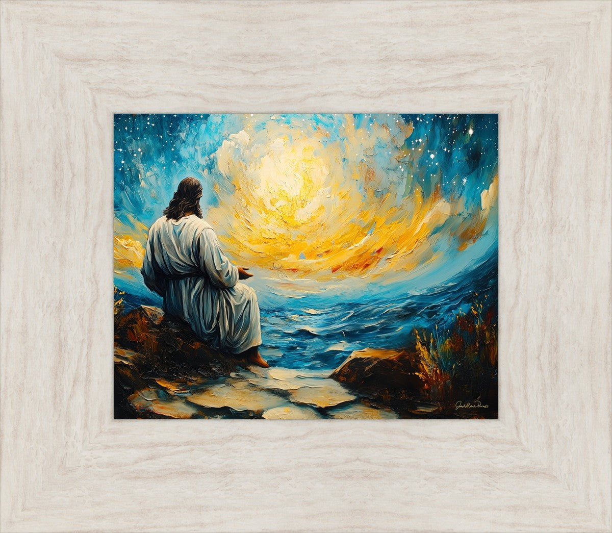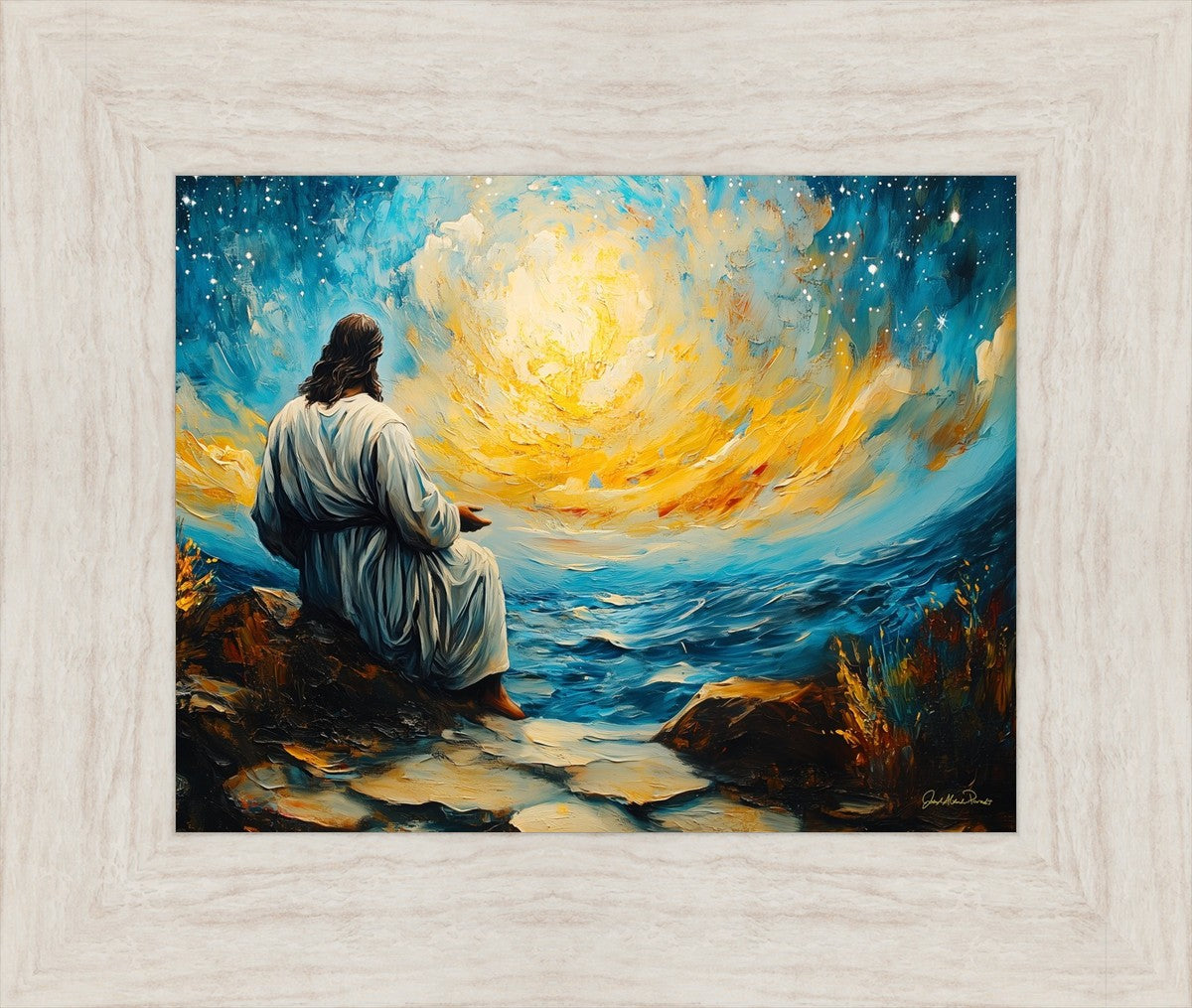 What if the Lord asked you to come sit with Him under a night sky? What would He tell you? What would He show you? How would you feel? This colorful piece ponders the serenity of the thought and explores the possibilities and curiosity of all creation.