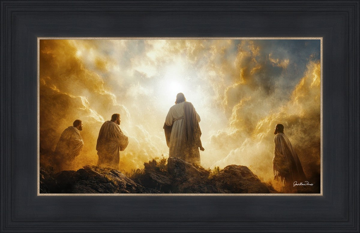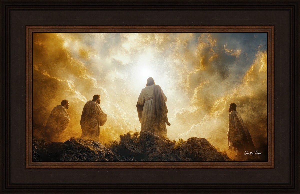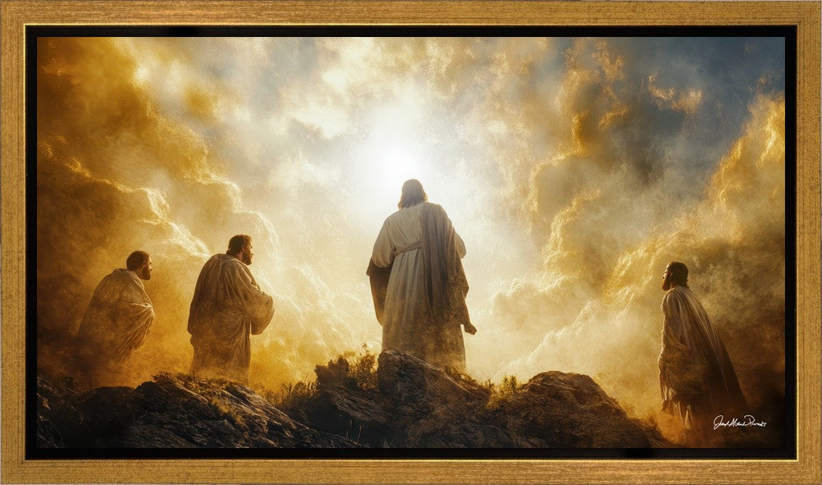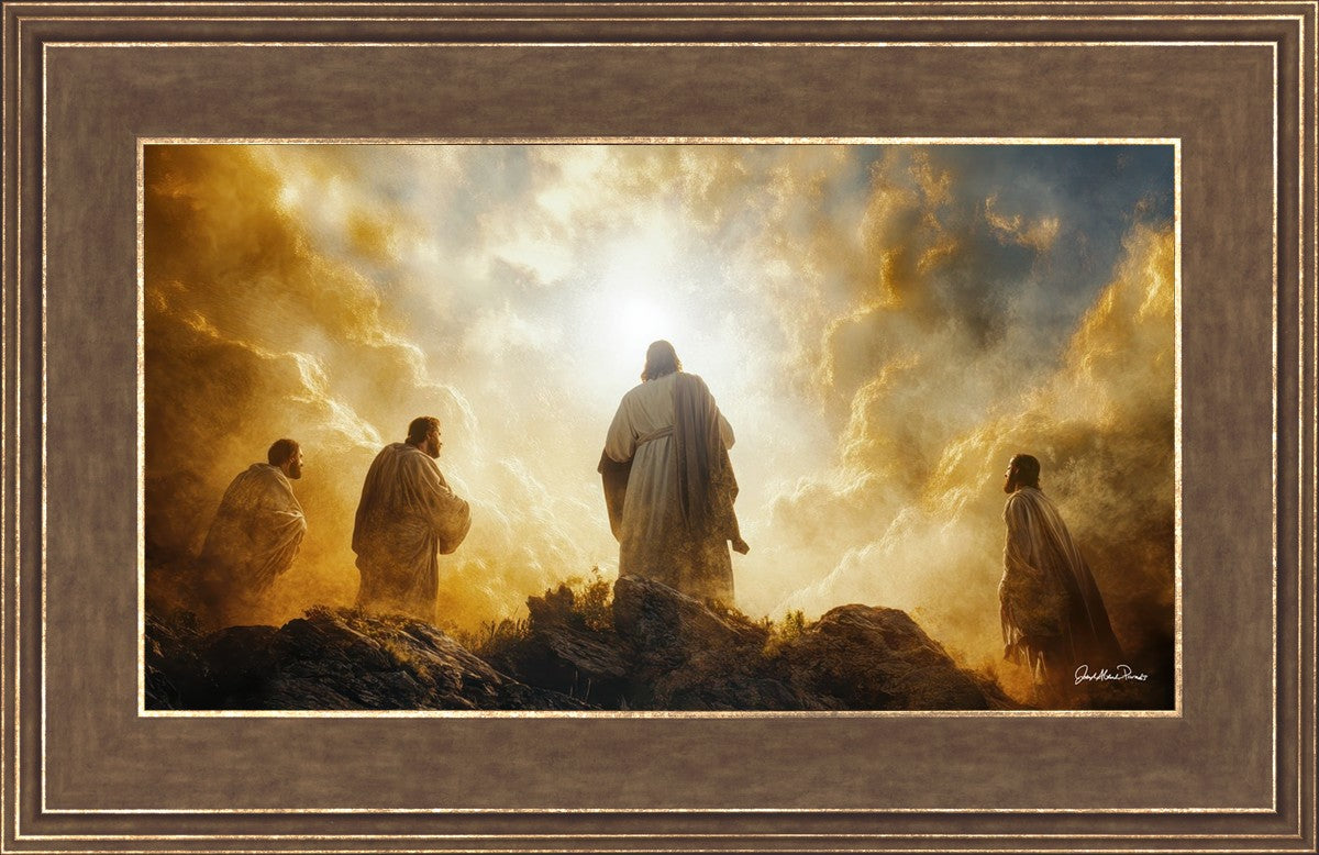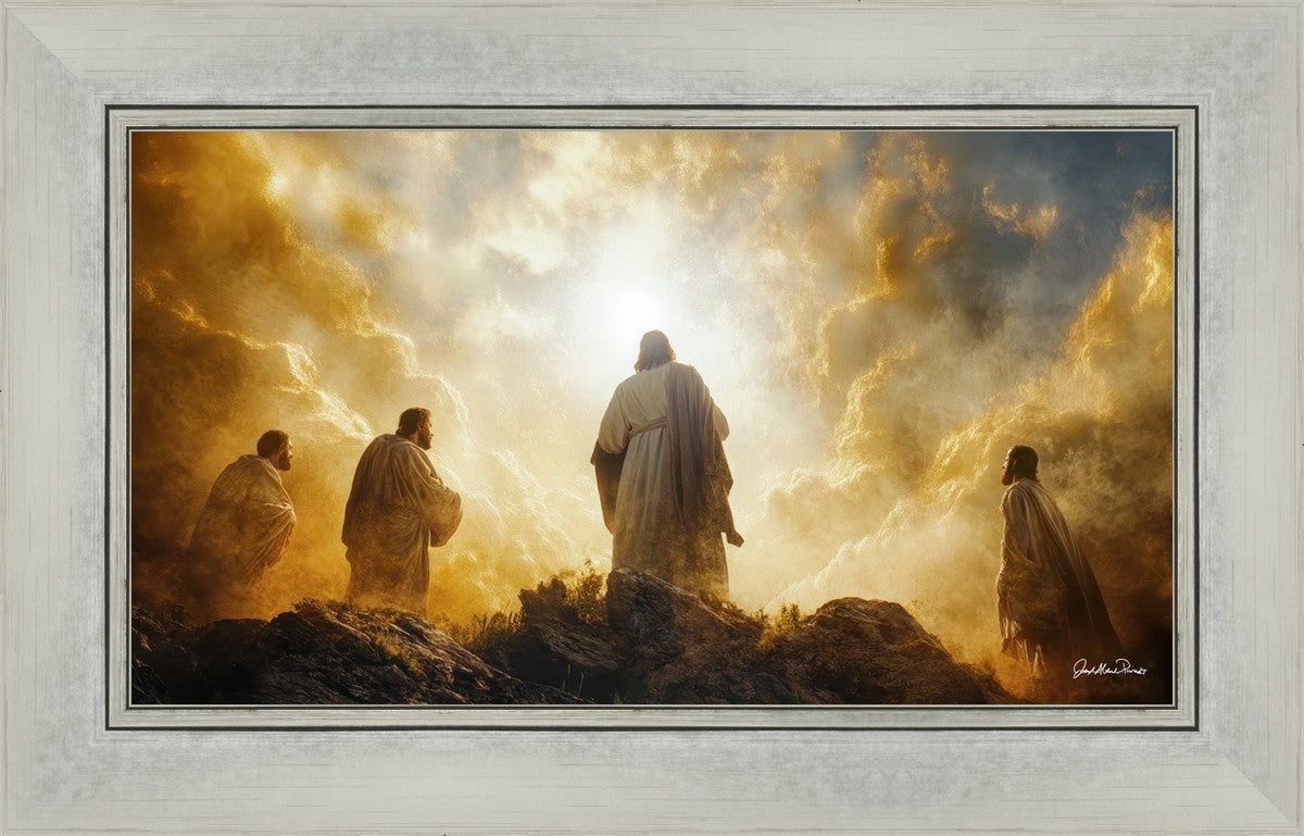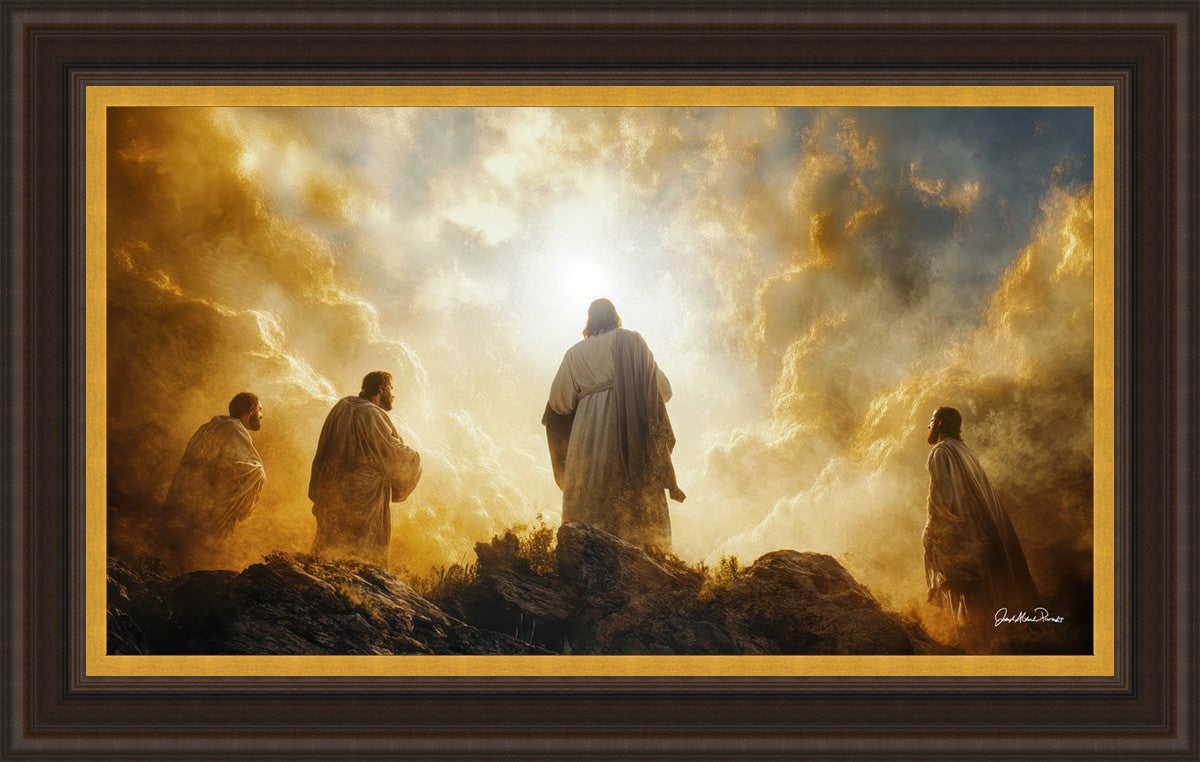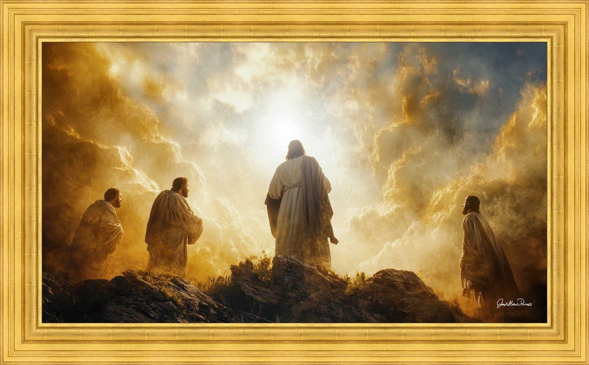 Imagine being witness to the Mount of Transfiguration, and the wonders that you might have beheld. It is said in the scriptures that Peter, James and John were so amazed by what they saw and heard, that they fell on their face. This artwork presents an upward looking perspective of reverence for the Lord and His power.