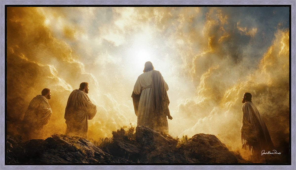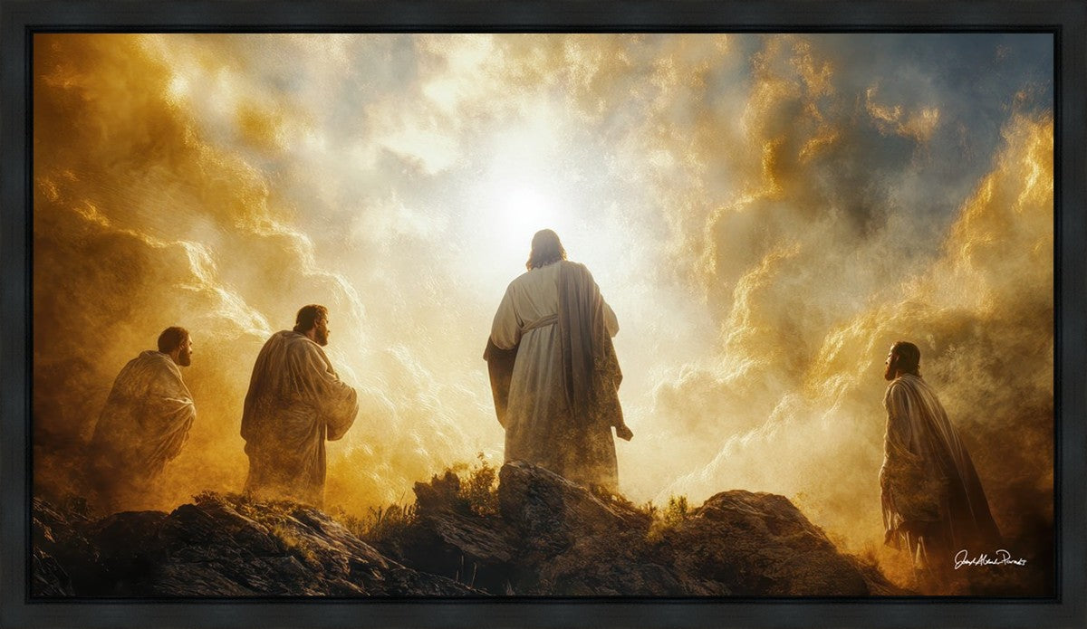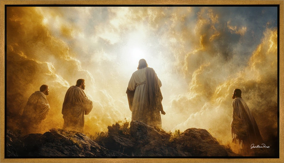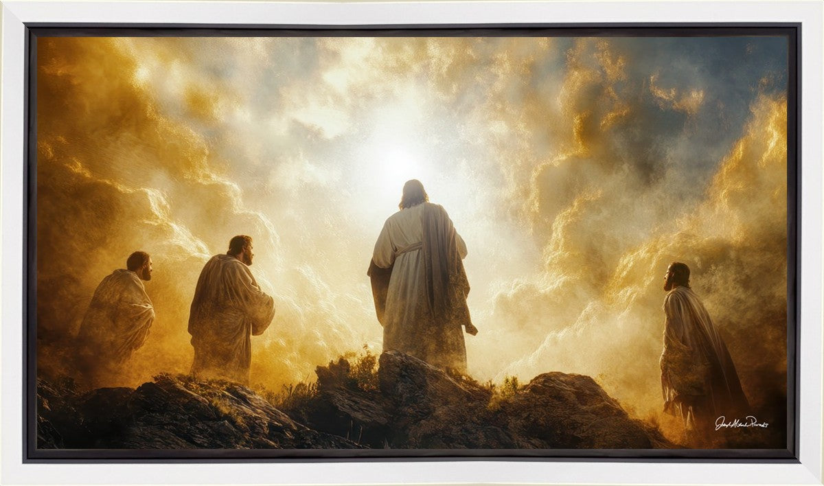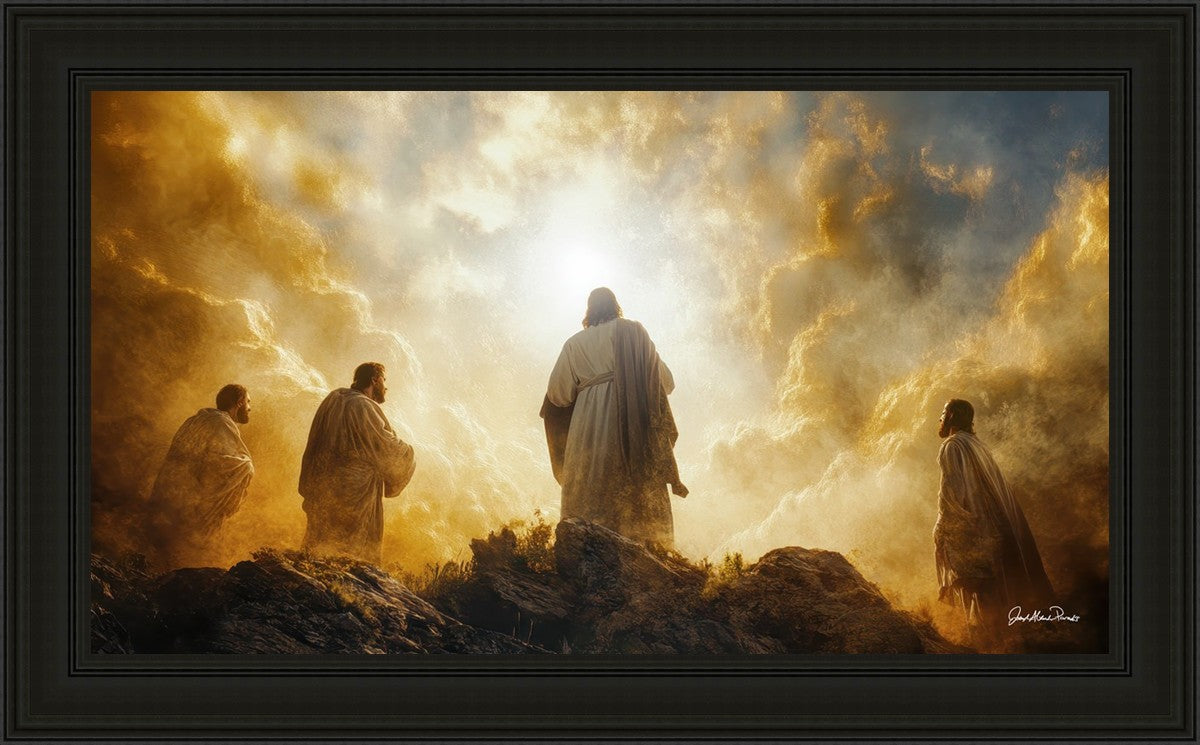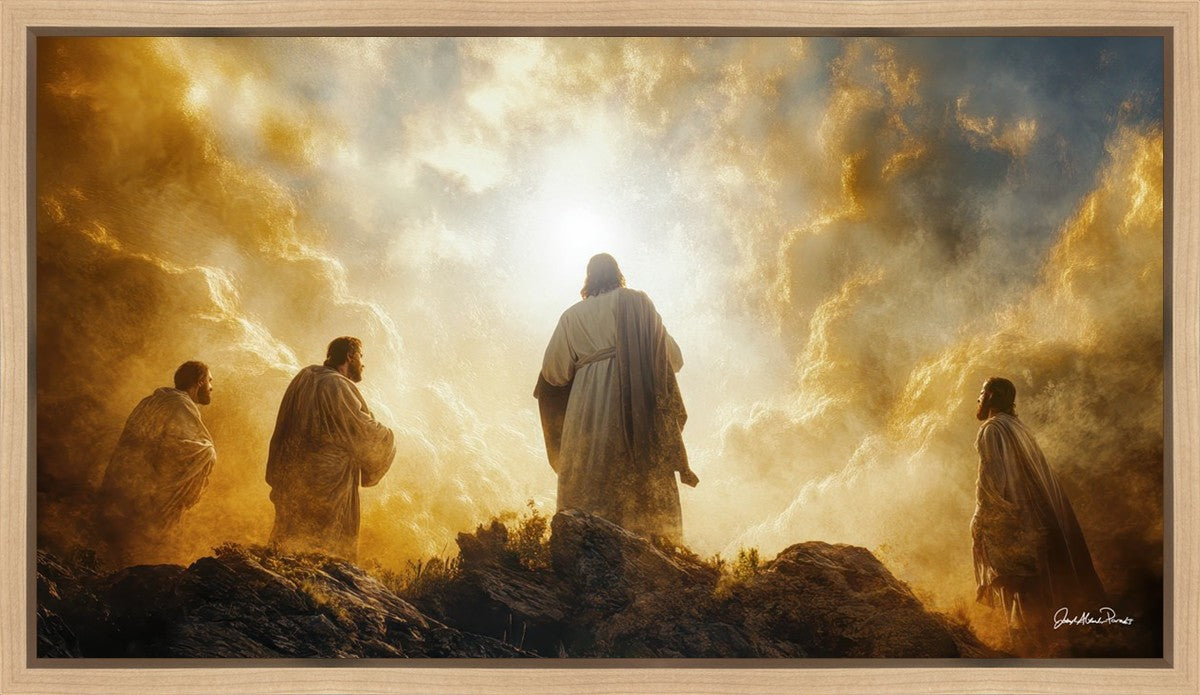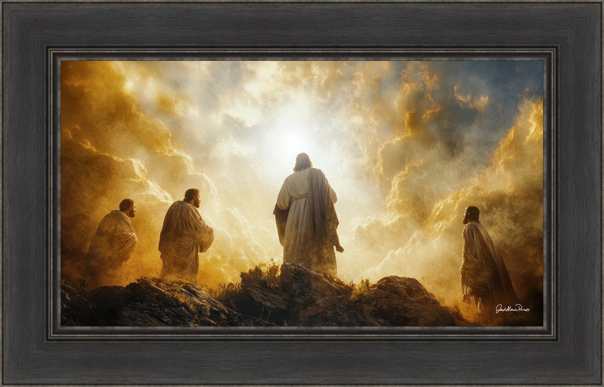 Imagine being witness to the Mount of Transfiguration, and the wonders that you might have beheld. It is said in the scriptures that Peter, James and John were so amazed by what they saw and heard, that they fell on their face. This artwork presents an upward looking perspective of reverence for the Lord and His power.