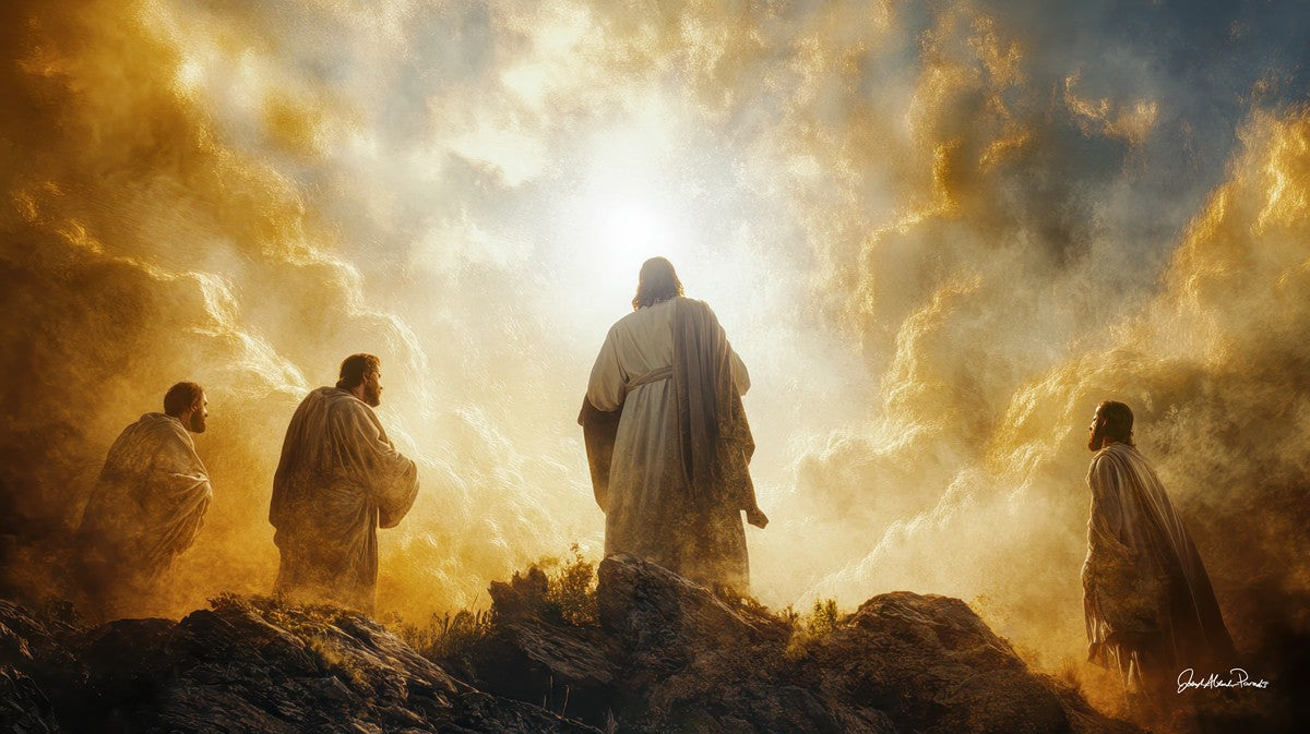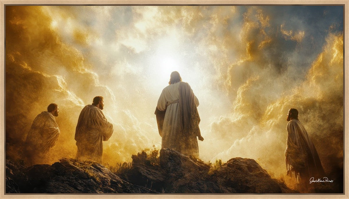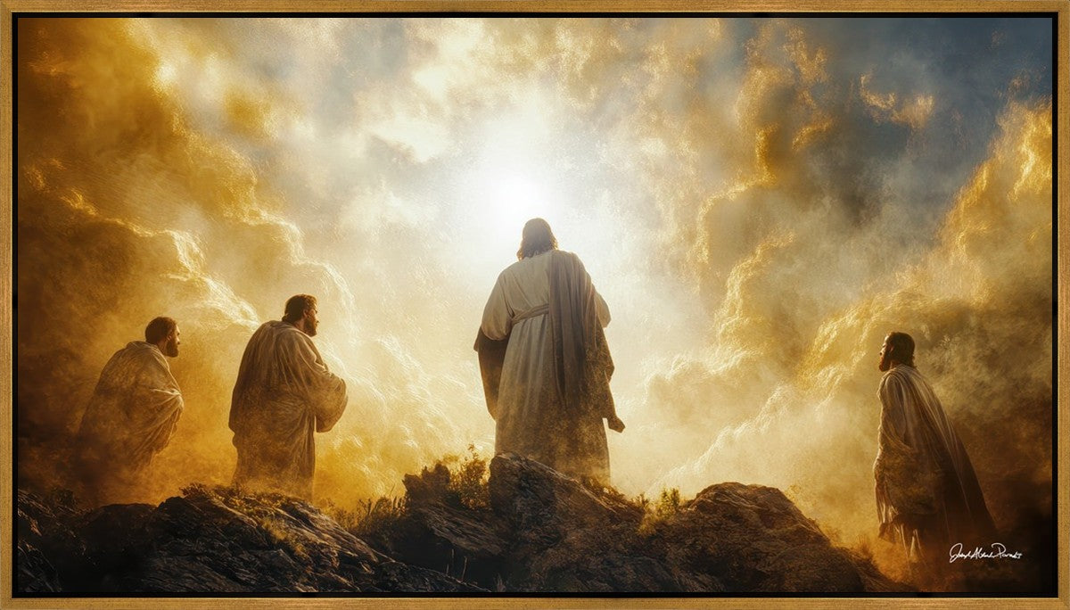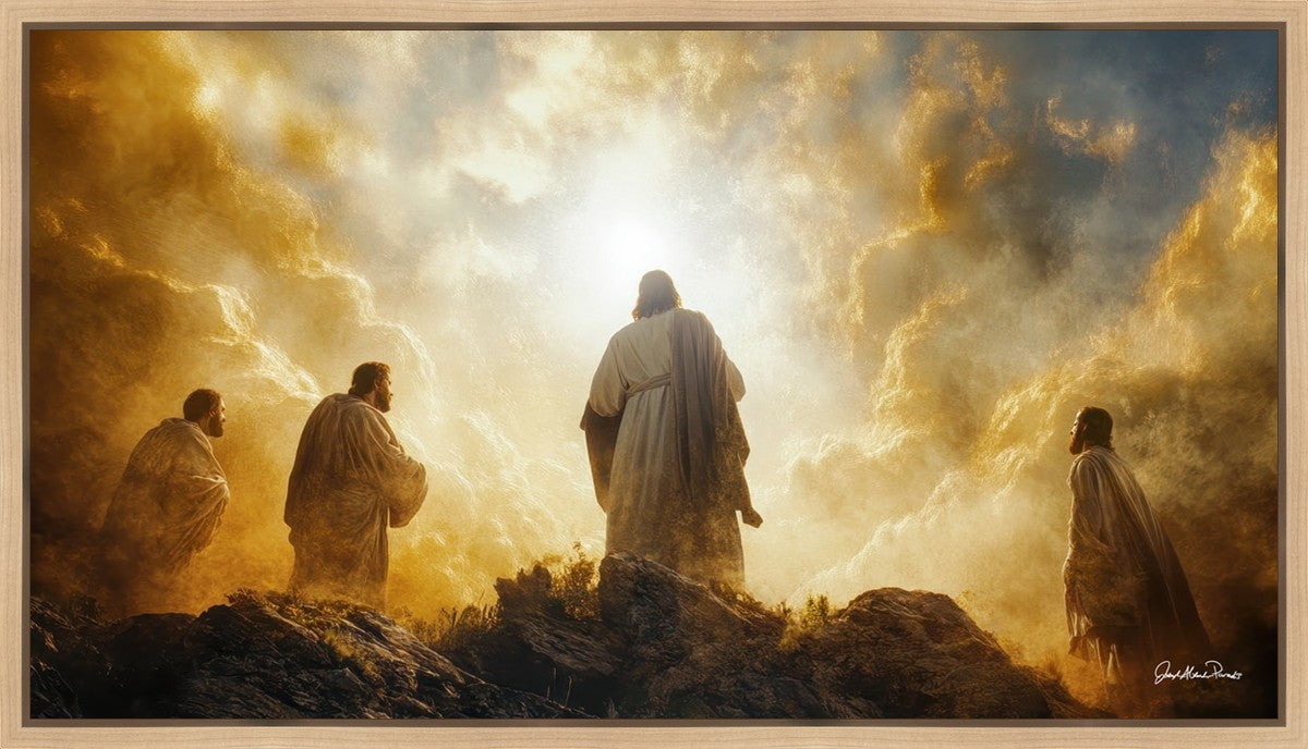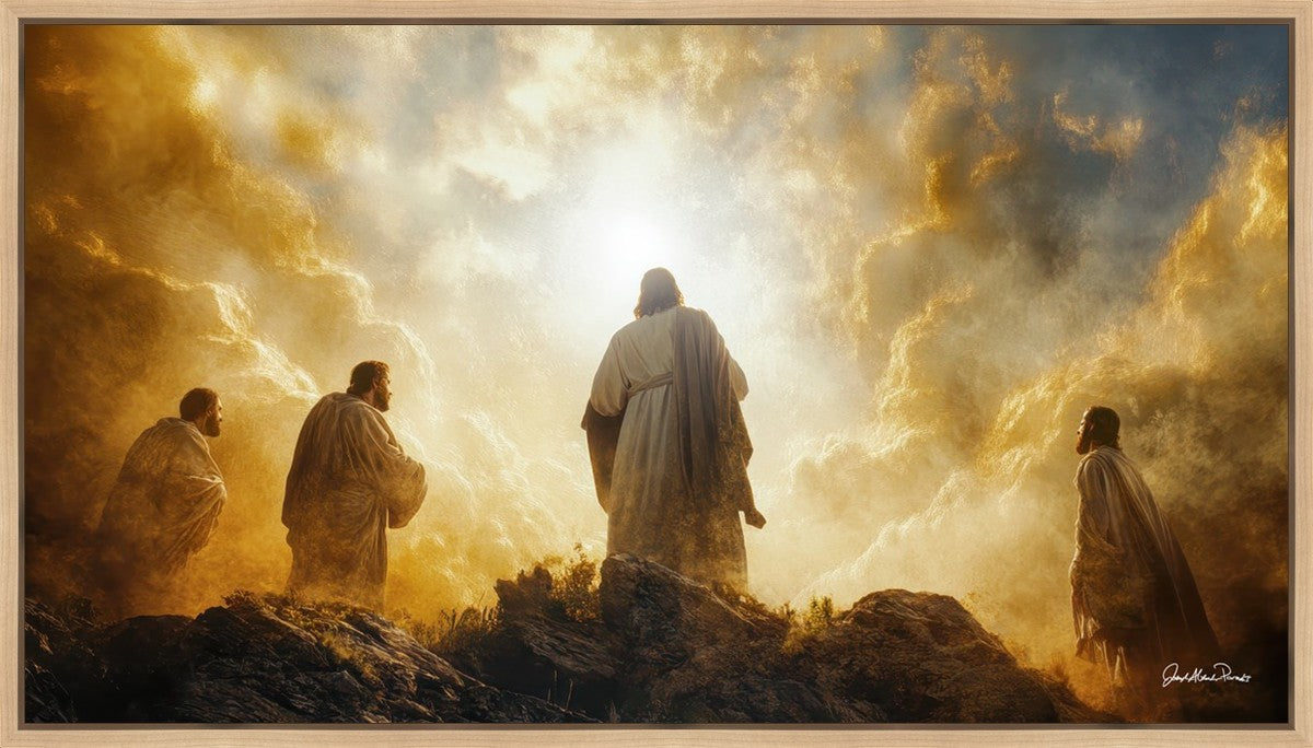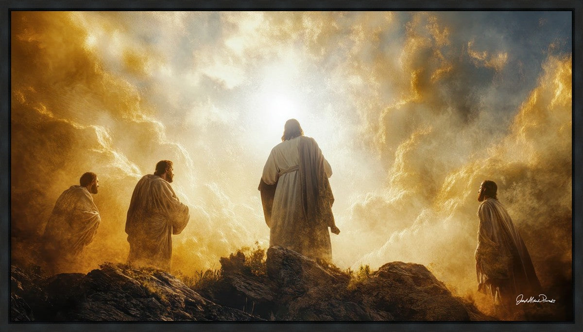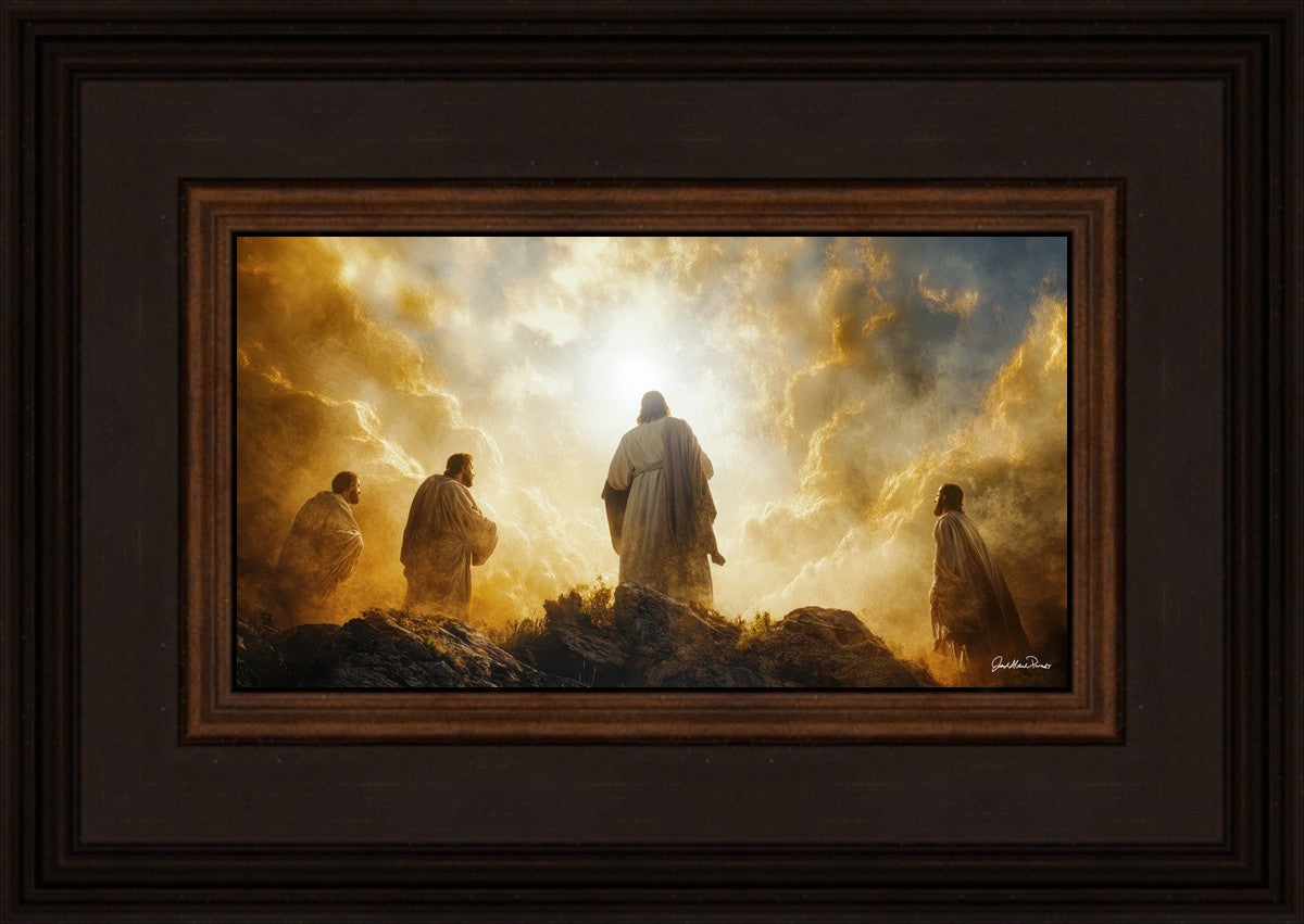Imagine being witness to the Mount of Transfiguration, and the wonders that you might have beheld. It is said in the scriptures that Peter, James and John were so amazed by what they saw and heard, that they fell on their face. This artwork presents an upward looking perspective of reverence for the Lord and His power.
