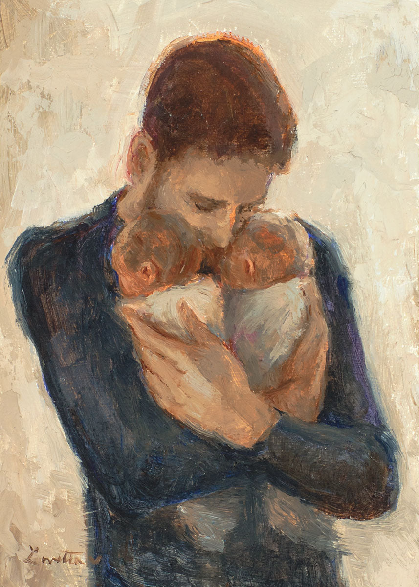 Father With Twins - Open Edition Canvas / 10 X 15 / Rolled Canvas in Tube is backordered and will ship as soon as it is back in stock.