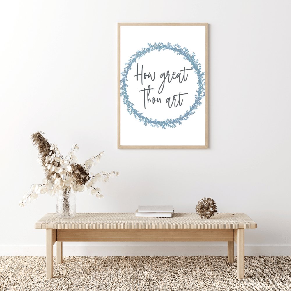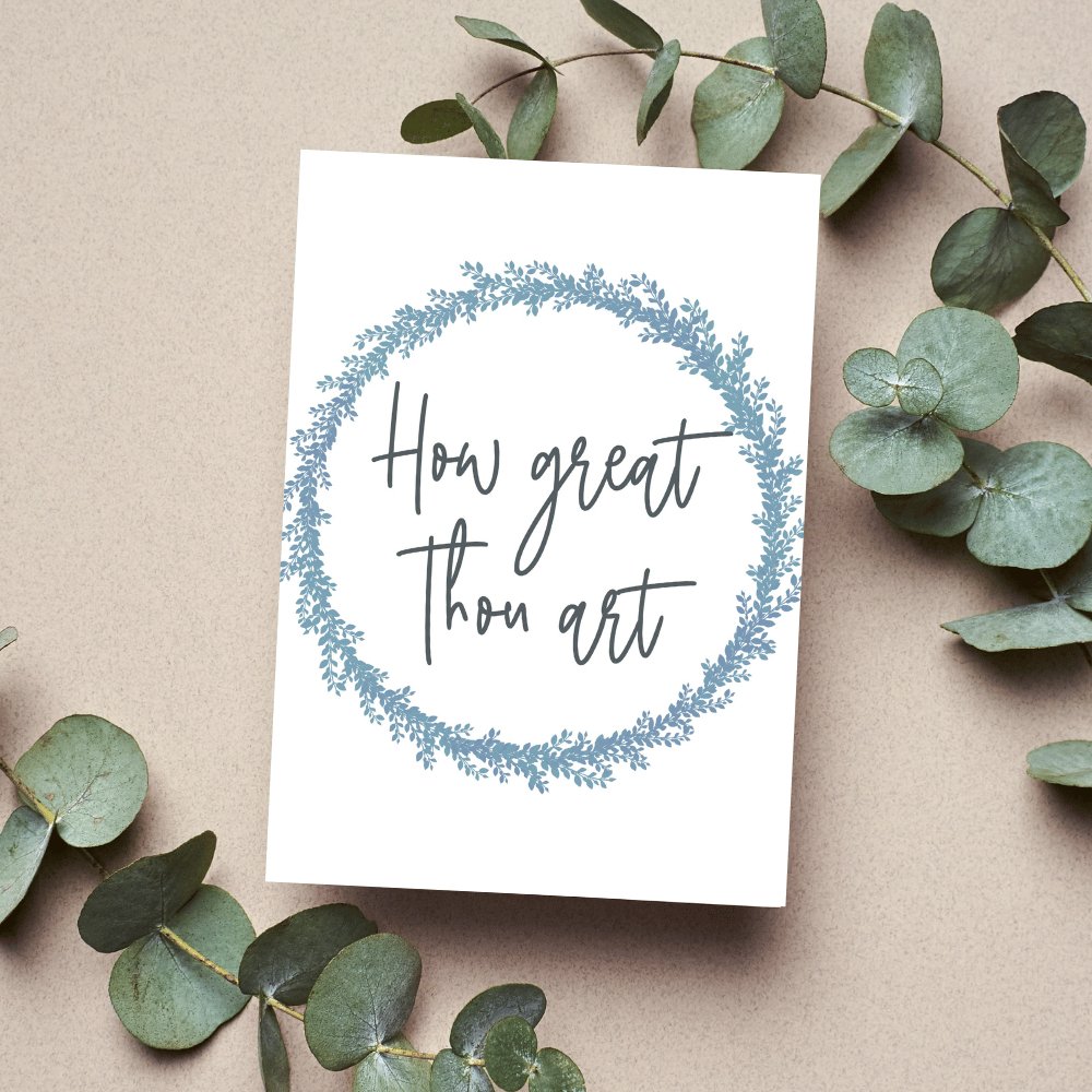A calligraphy digital download that says, "How Great Thou Art."