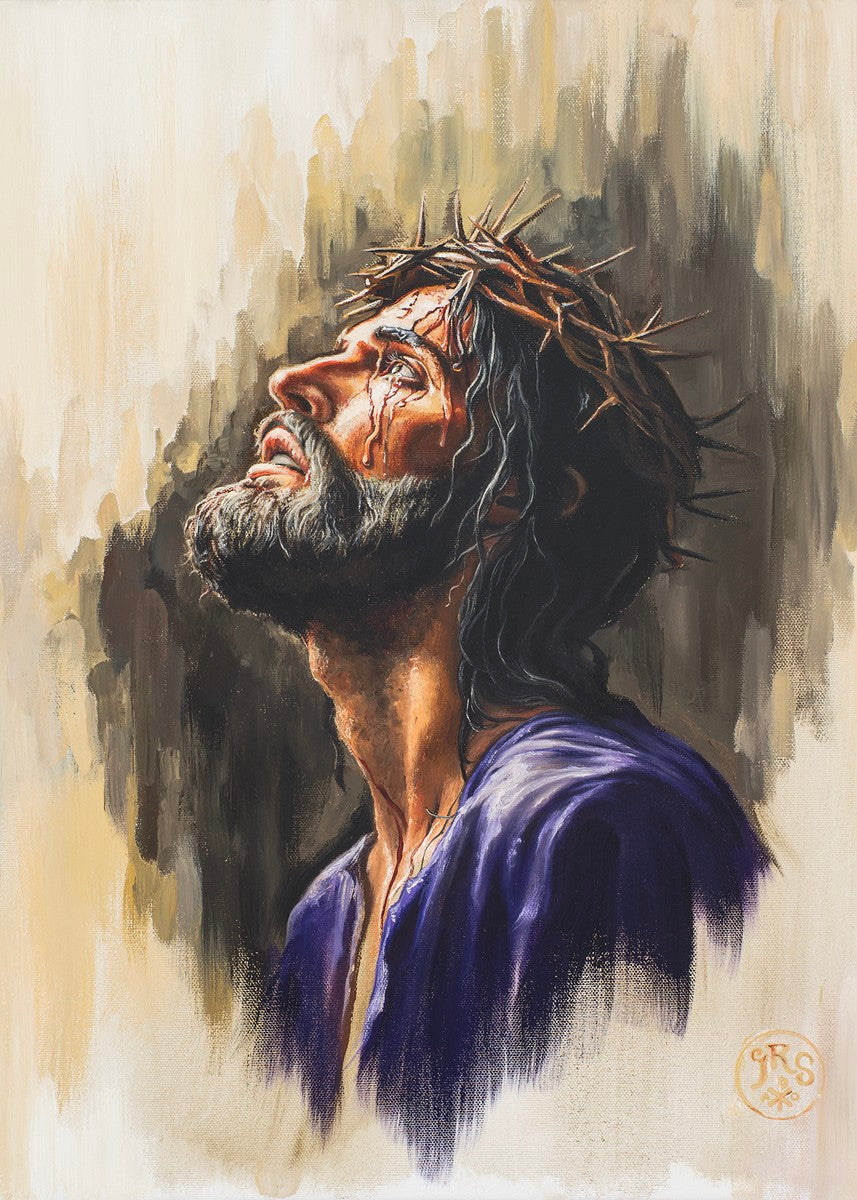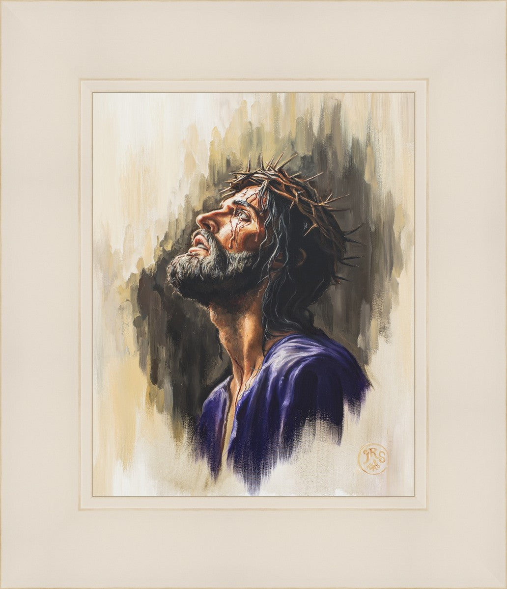 "Coronation II" is a depiction of Christ with the crown of thorns being placed upon his head by the roman soldiers. In this artwork, Christ is depicted with his chin held high. This choice in posing demonstrates how even while bearing the most painful form of tortuous murder in the ancient world, Christ, as our sovereign Lord, has not been overcome by those who oppose him, but rather is actively submitting himself to these abuses as a means for expiating the sins of the world.