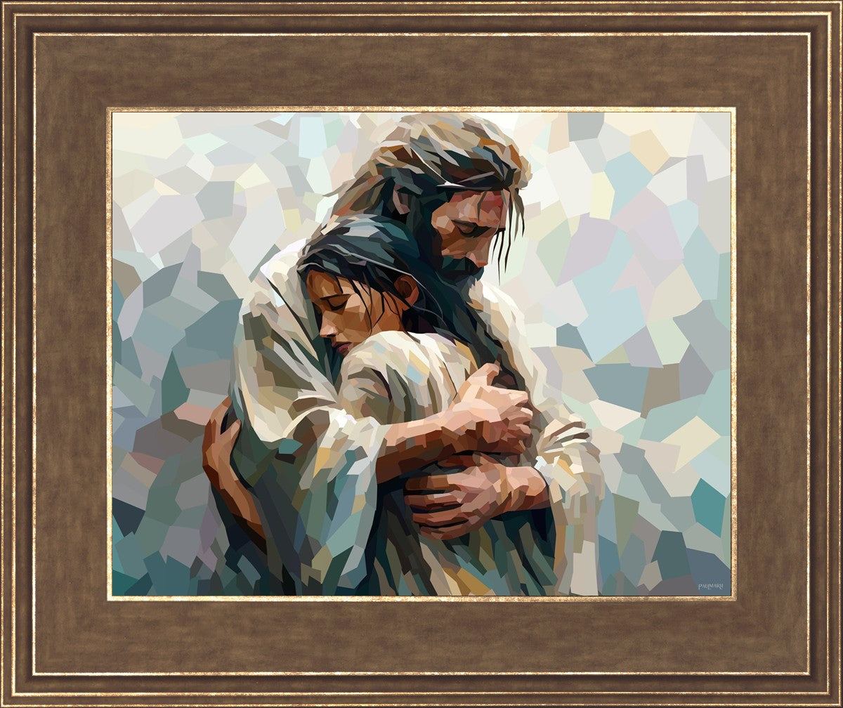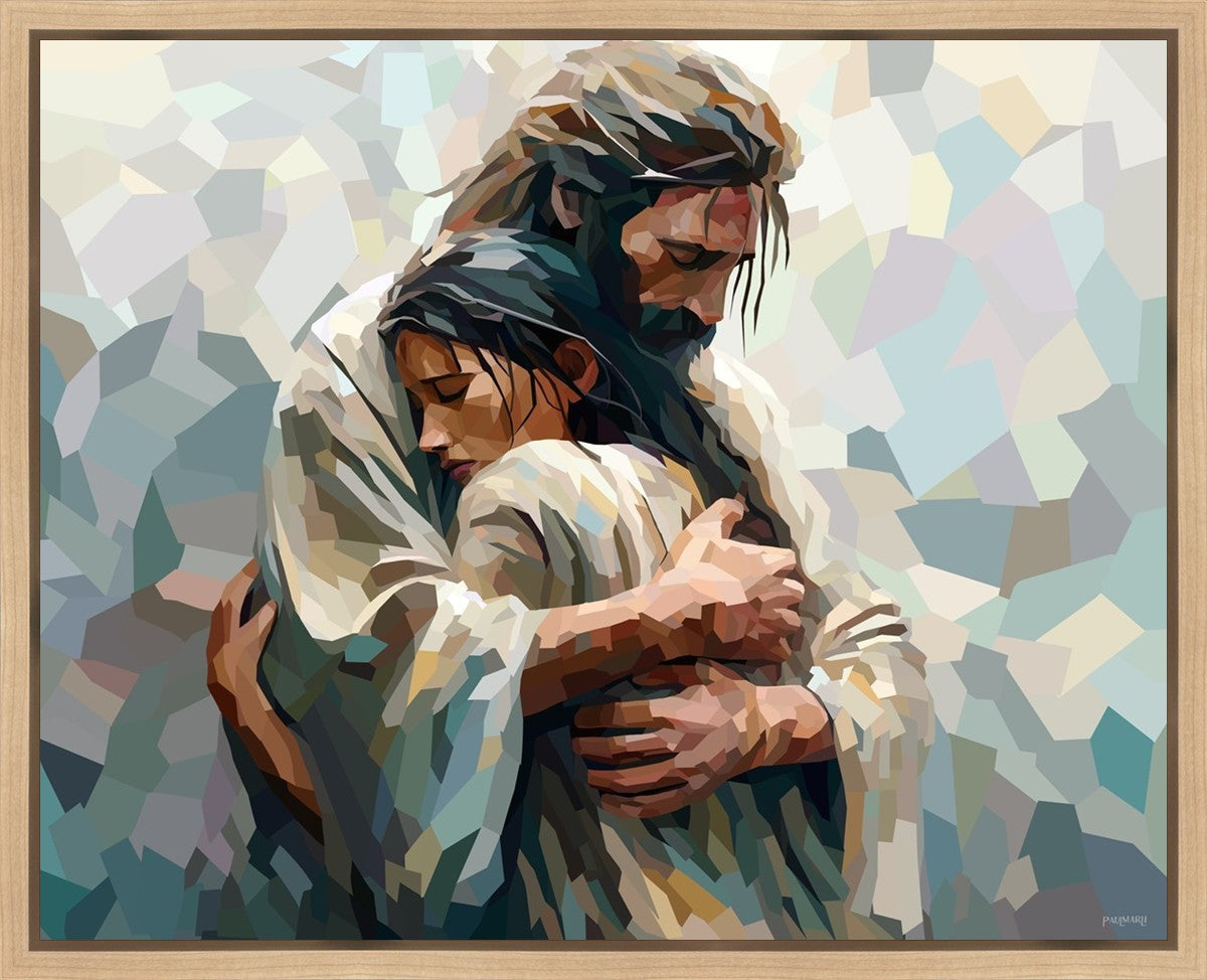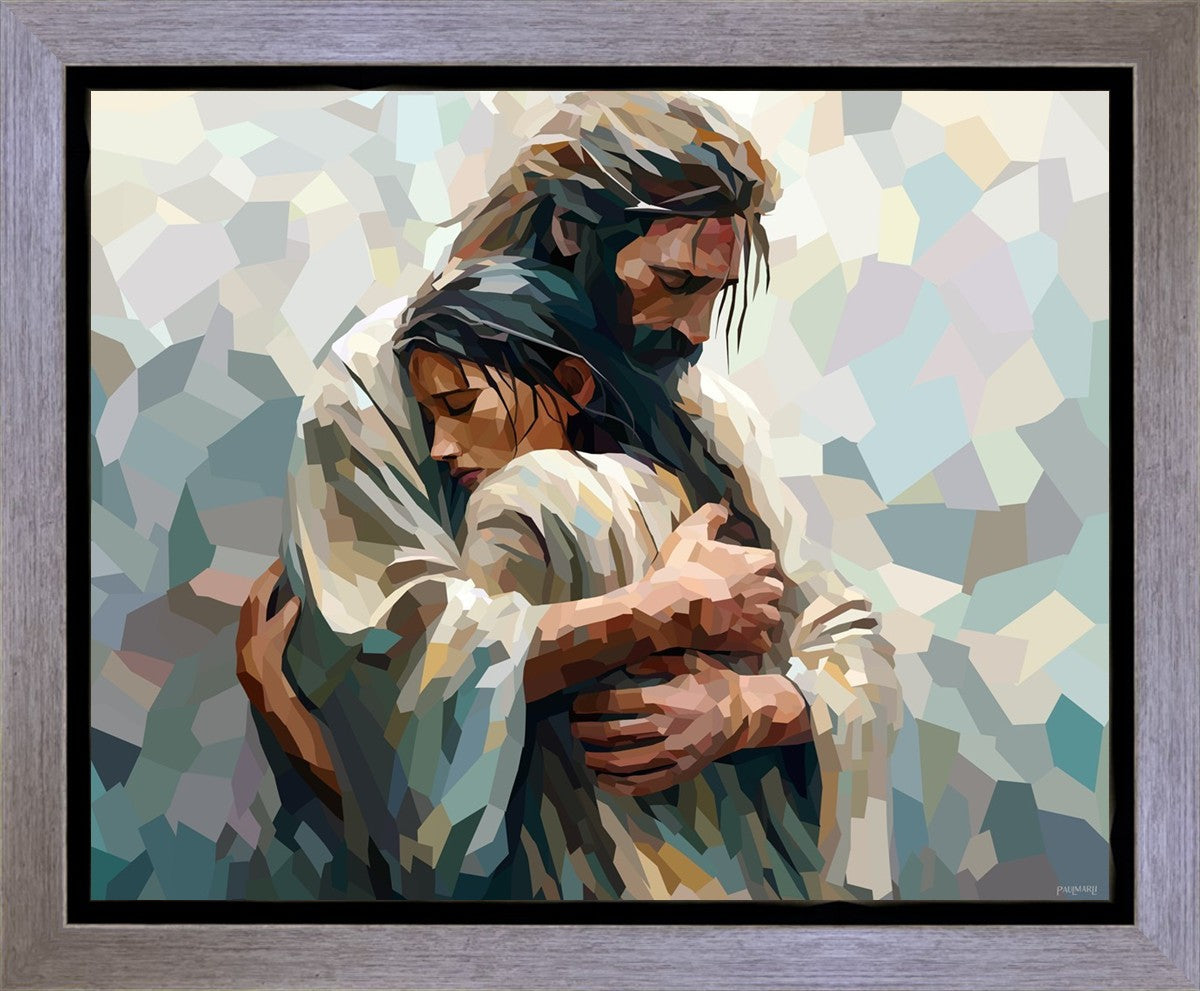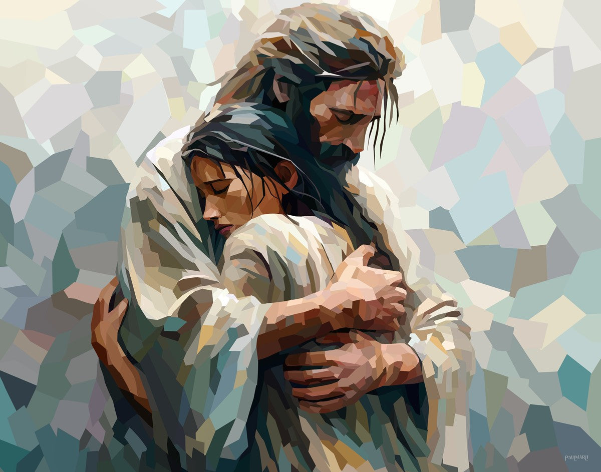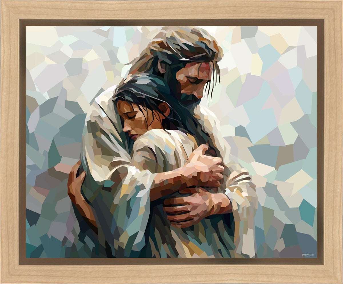 In this particular piece, a woman is embraced by Christ who not only perfectly understands, but perfectly feels every experience (generic or unique) that she has felt.