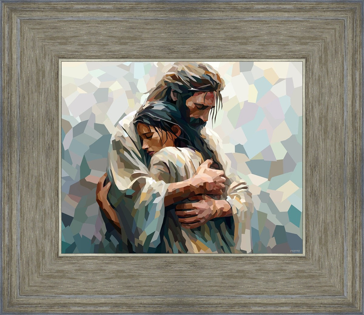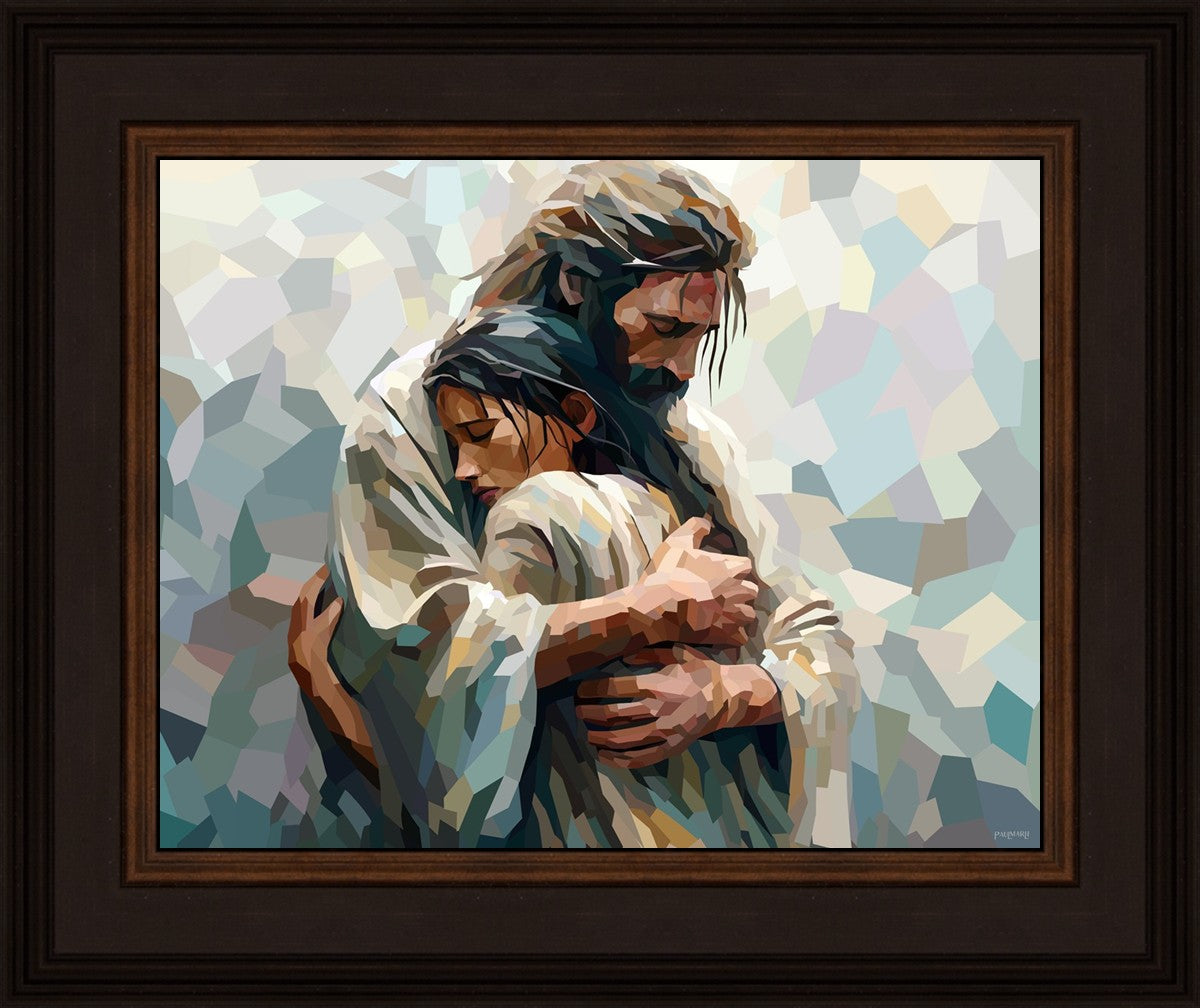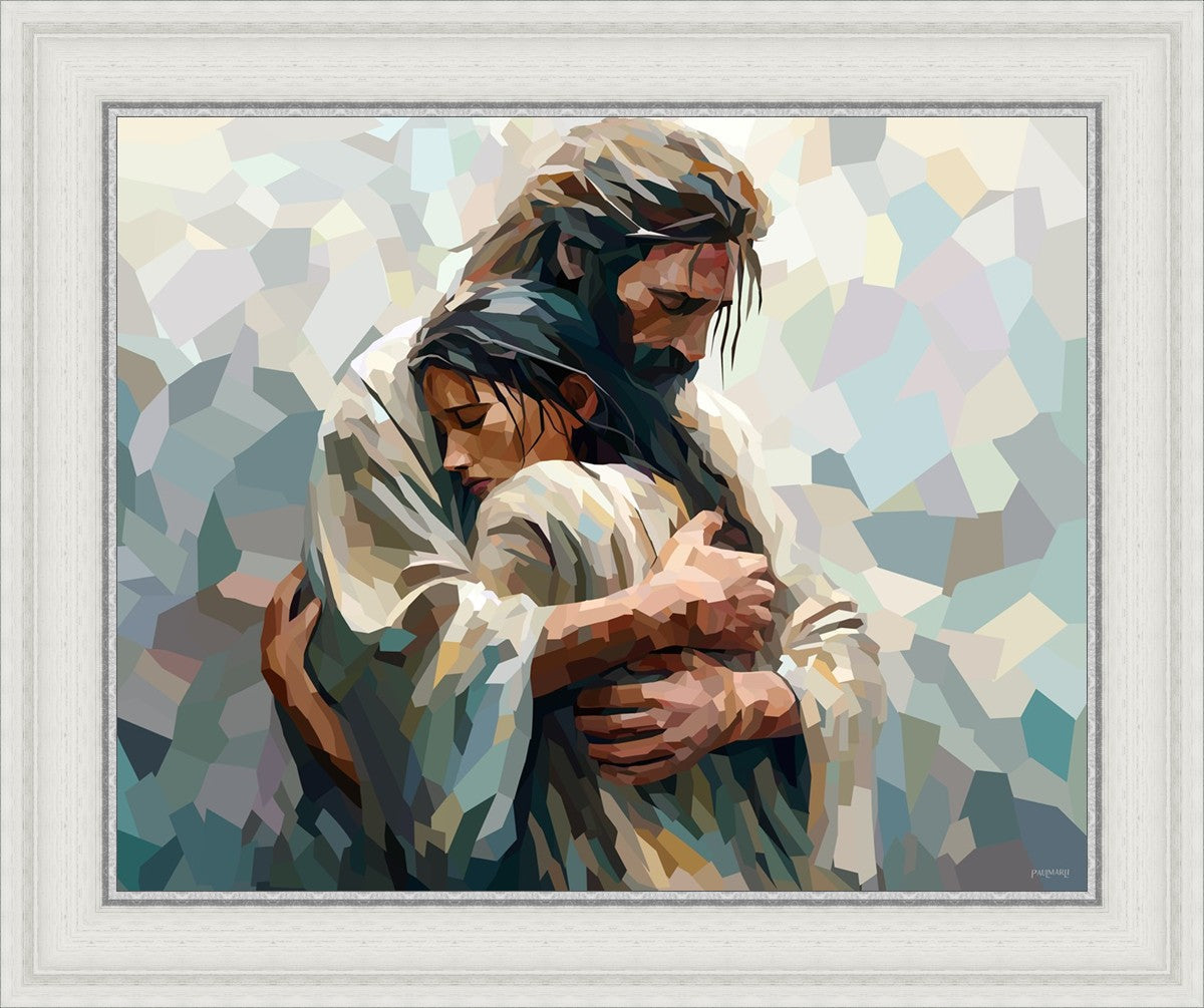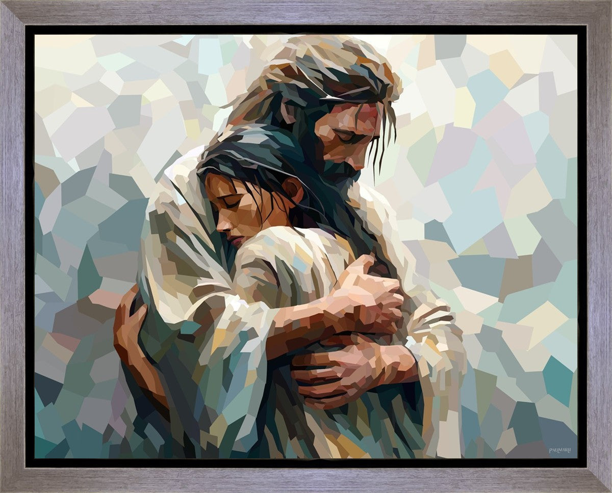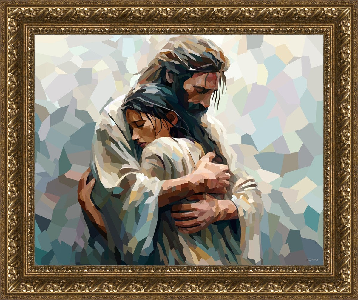 In this particular piece, a woman is embraced by Christ who not only perfectly understands, but perfectly feels every experience (generic or unique) that she has felt.