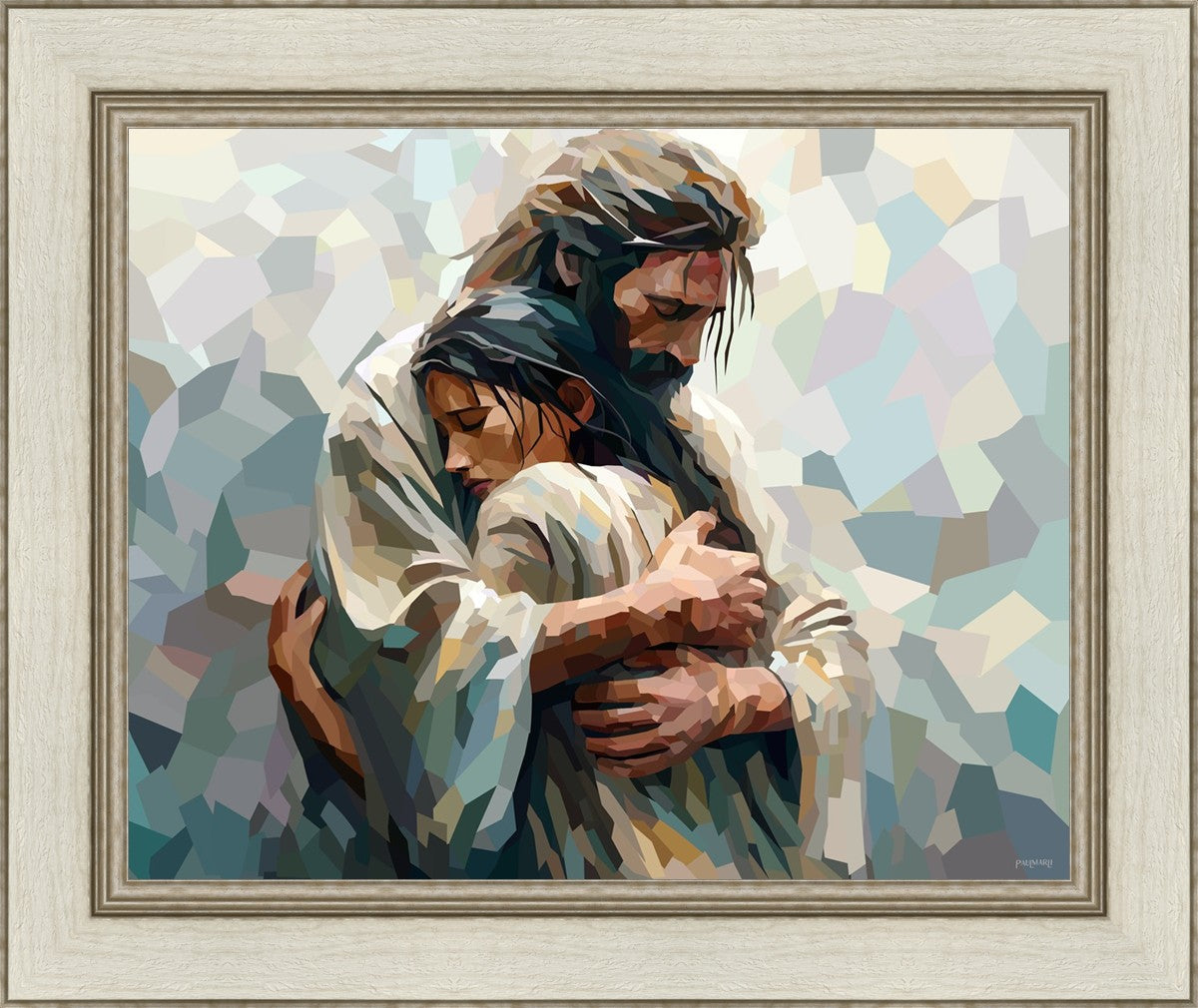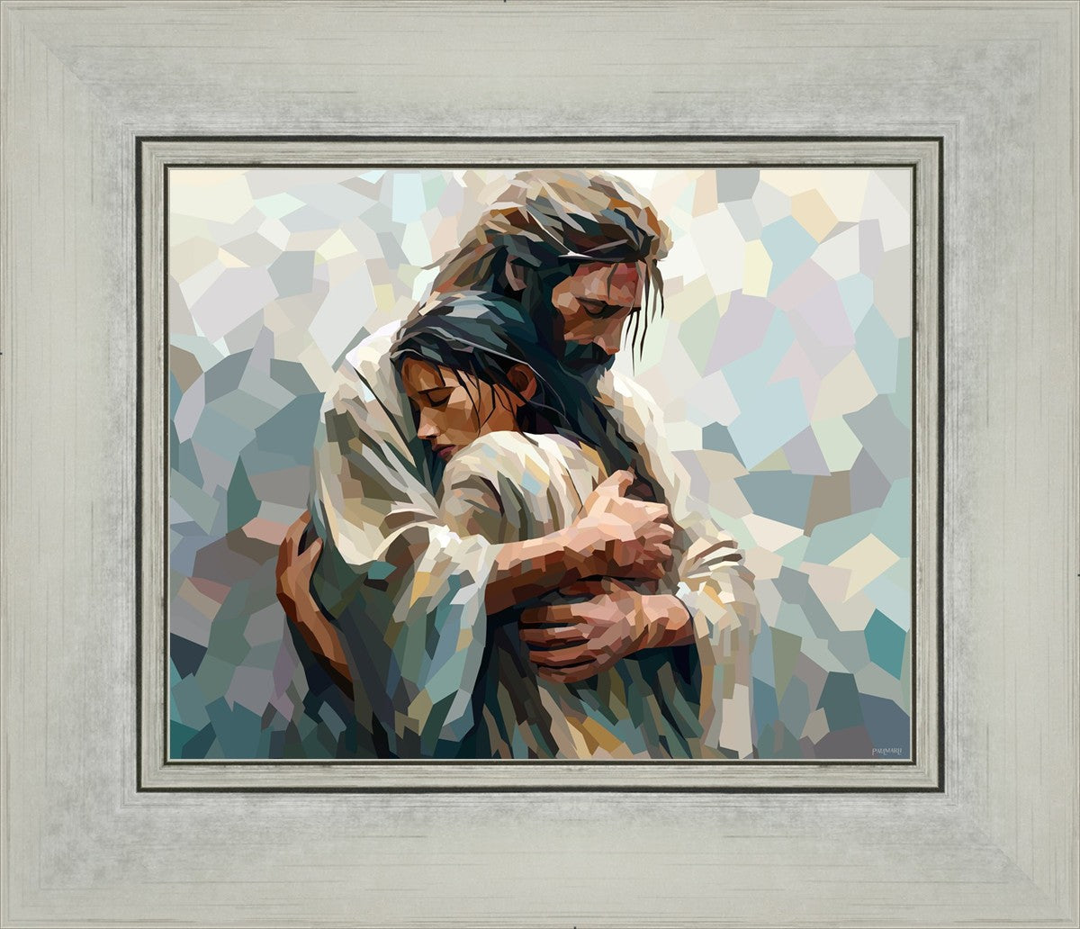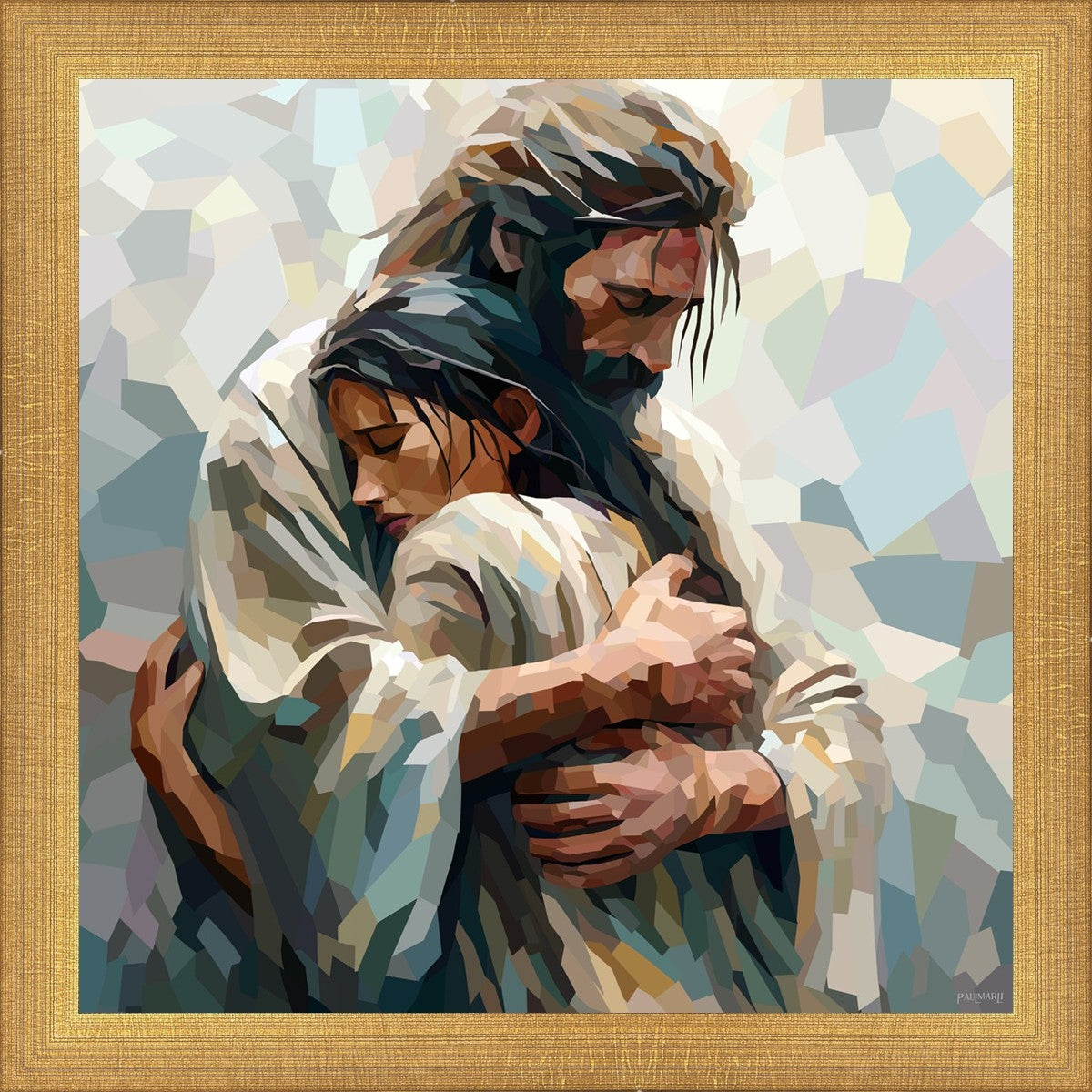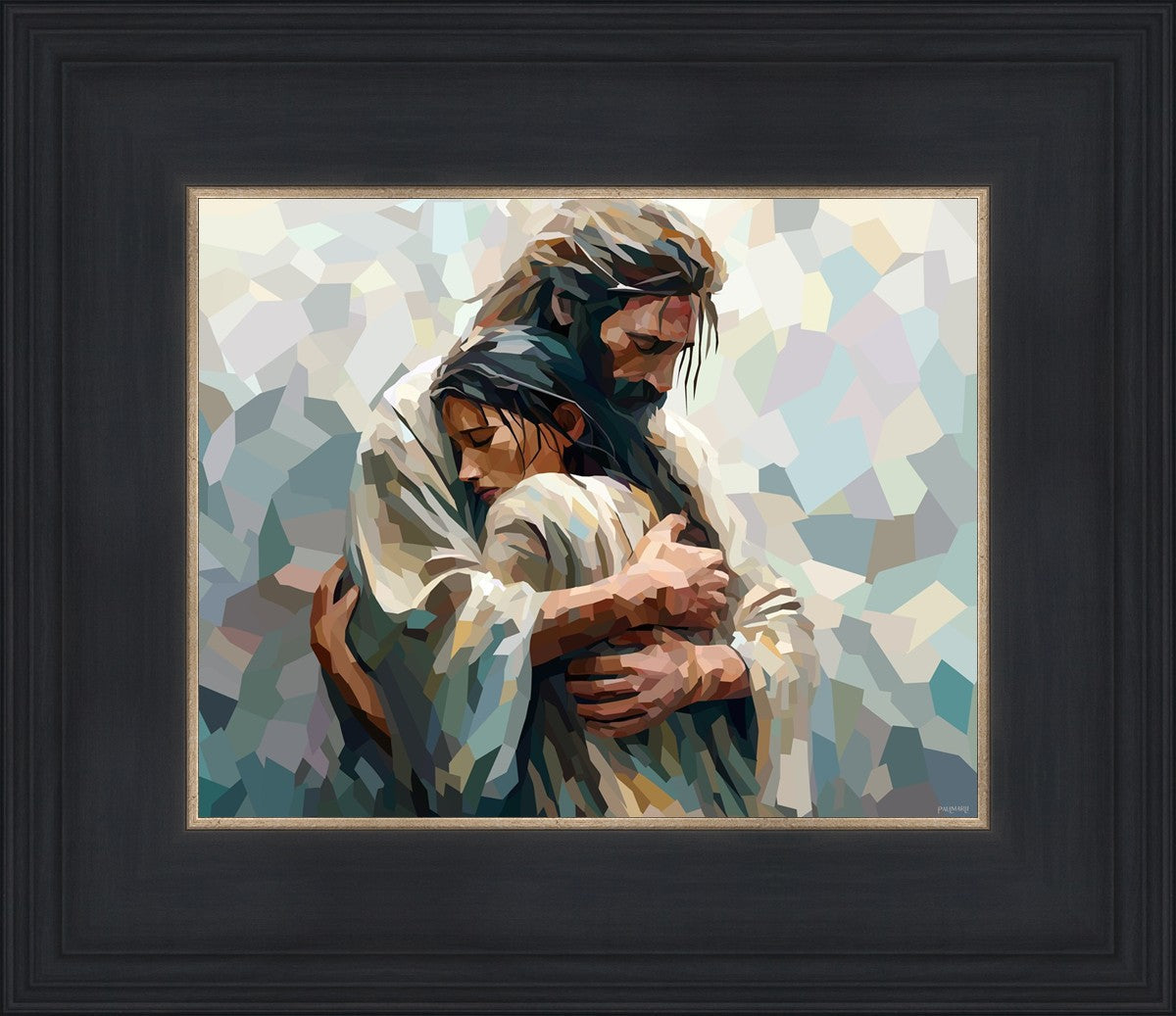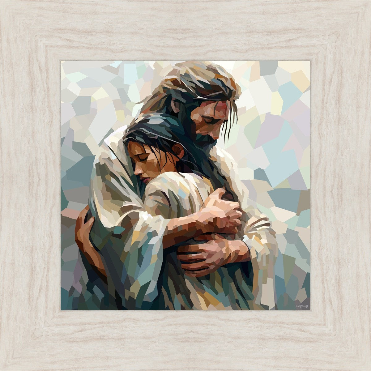 In this particular piece, a woman is embraced by Christ who not only perfectly understands, but perfectly feels every experience (generic or unique) that she has felt.