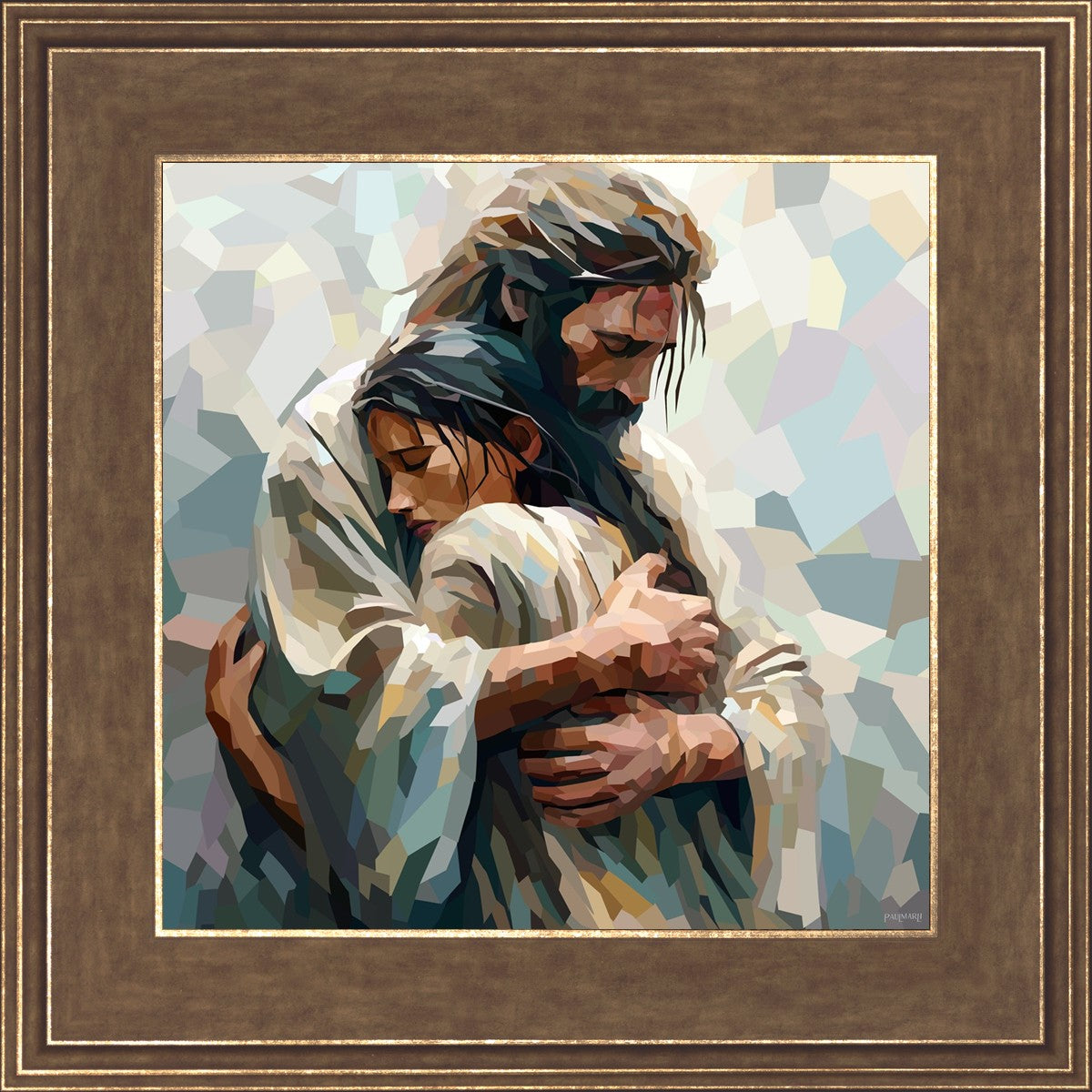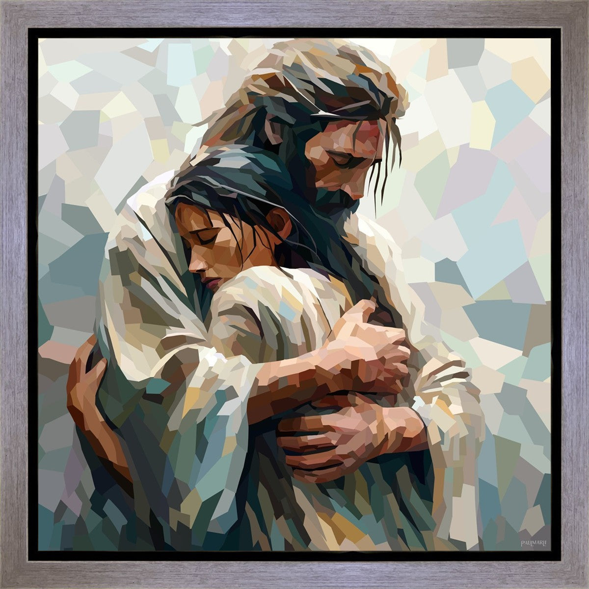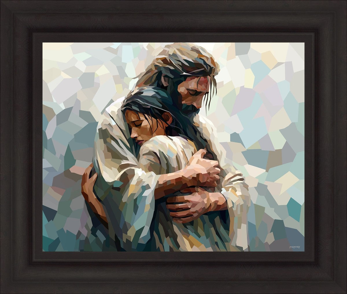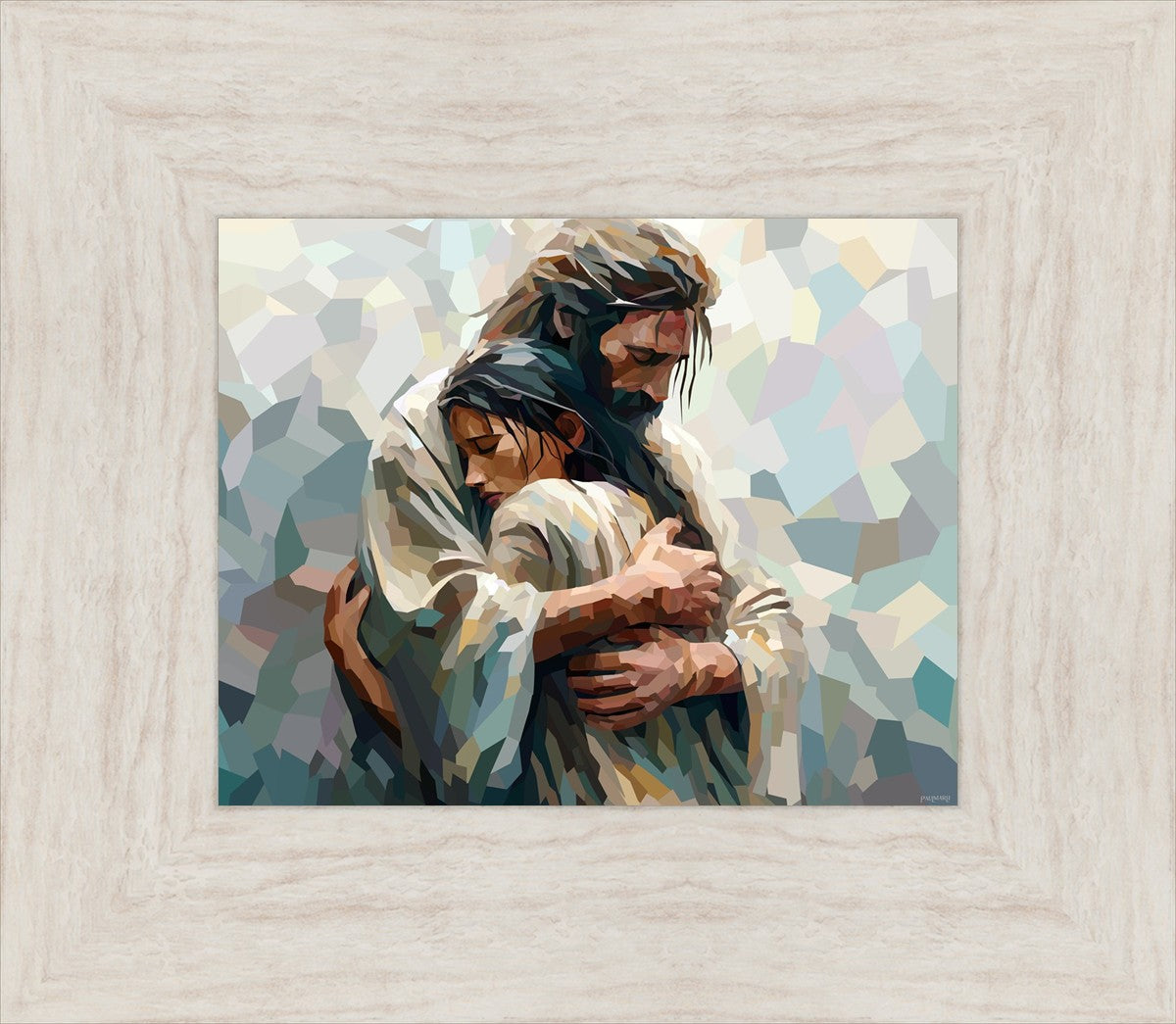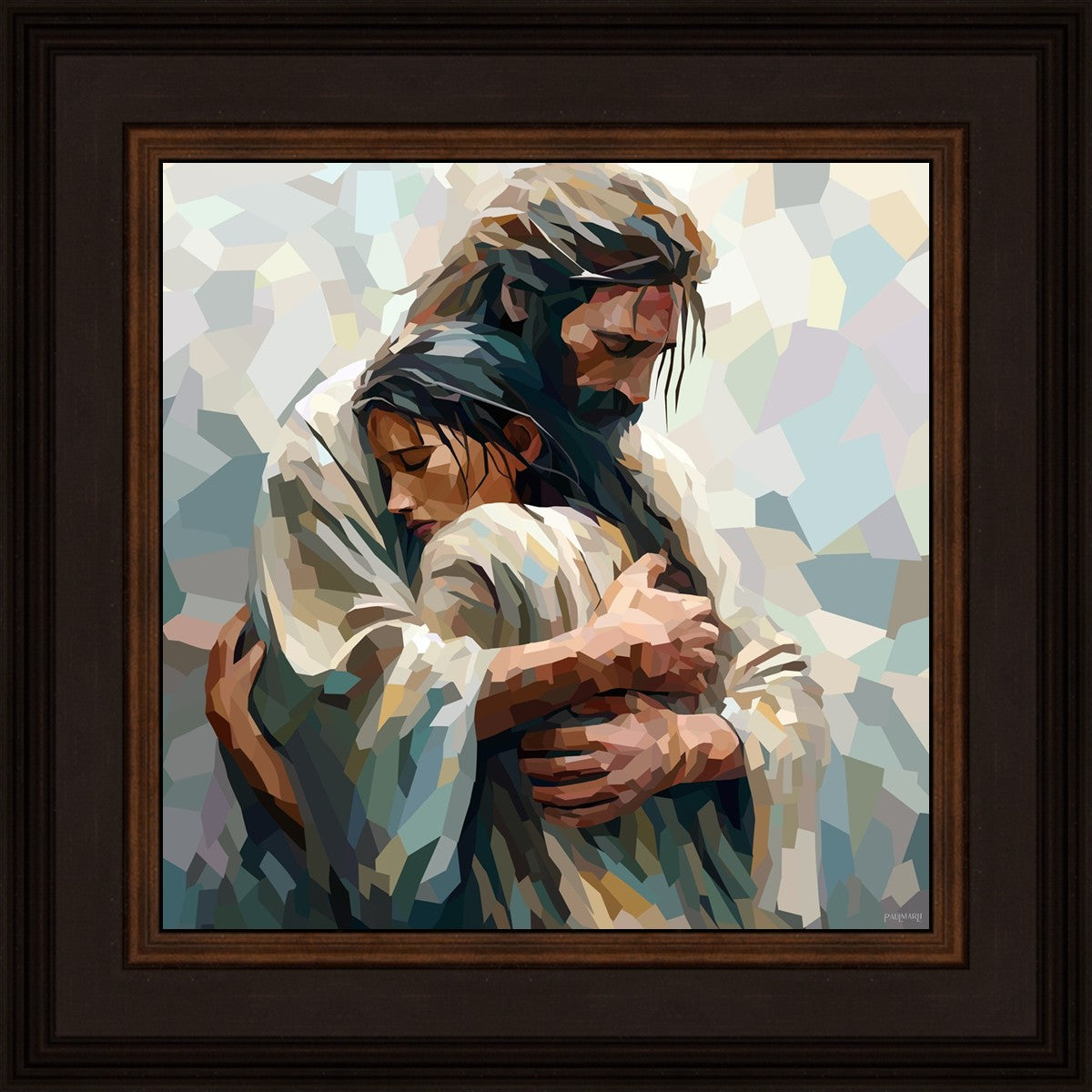 In this particular piece, a woman is embraced by Christ who not only perfectly understands, but perfectly feels every experience (generic or unique) that she has felt.