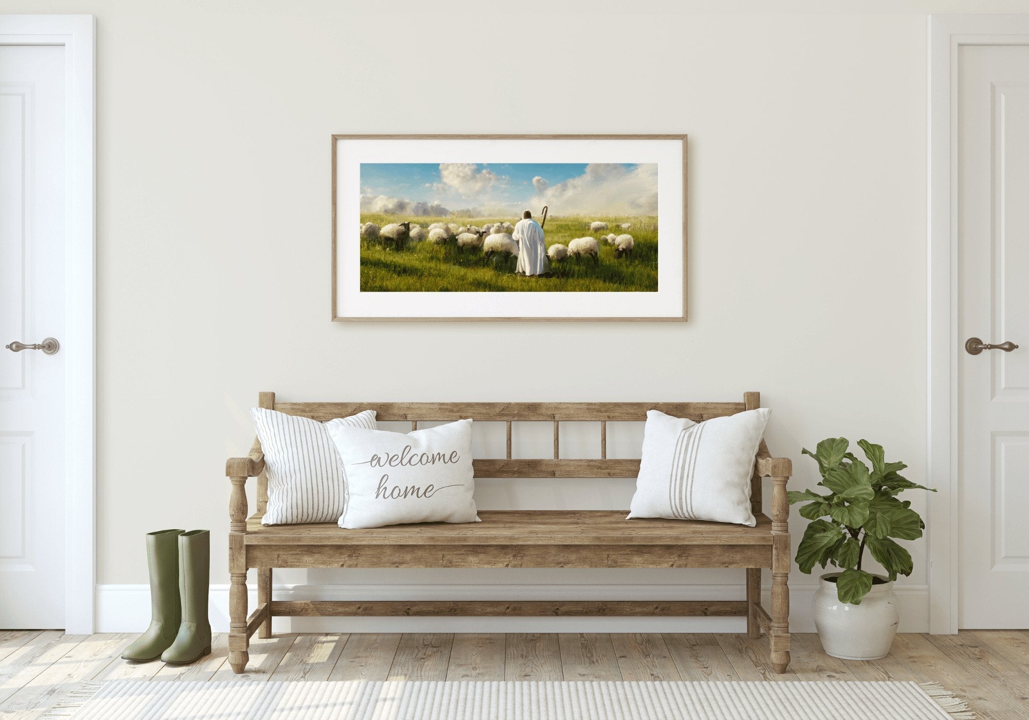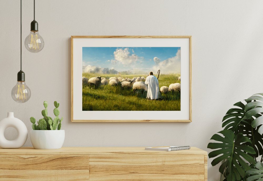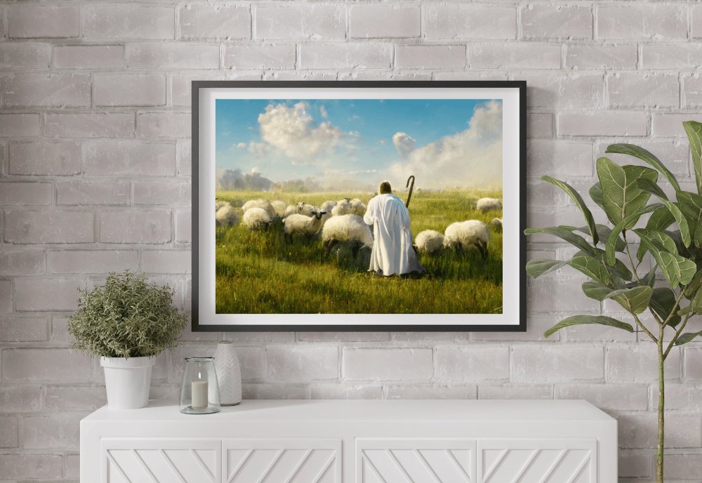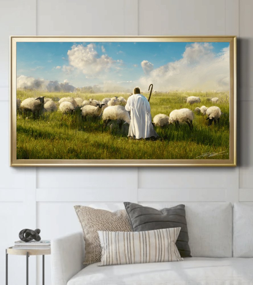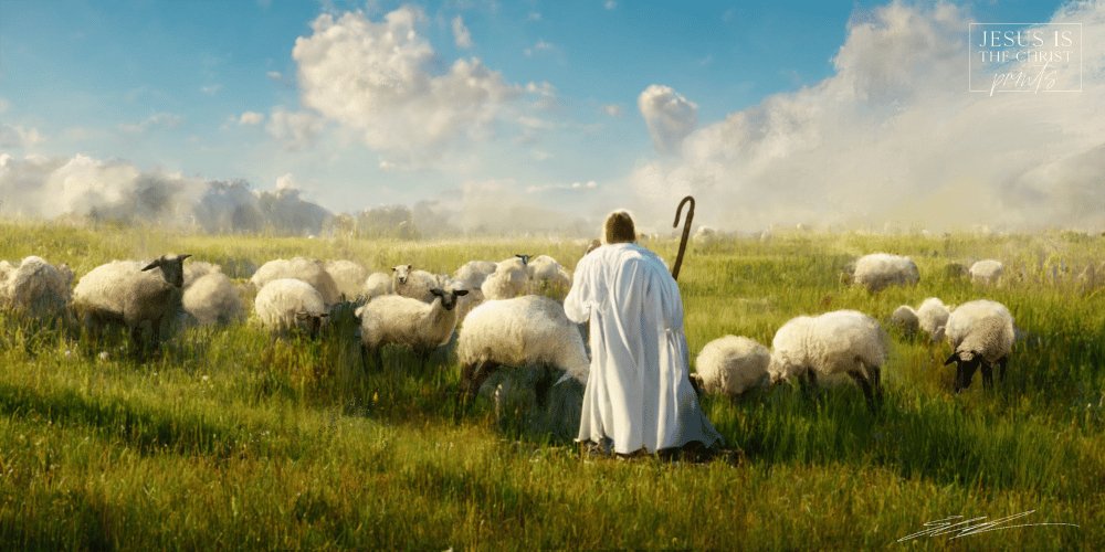 A masterful piece of the Savior amidst His sheep.