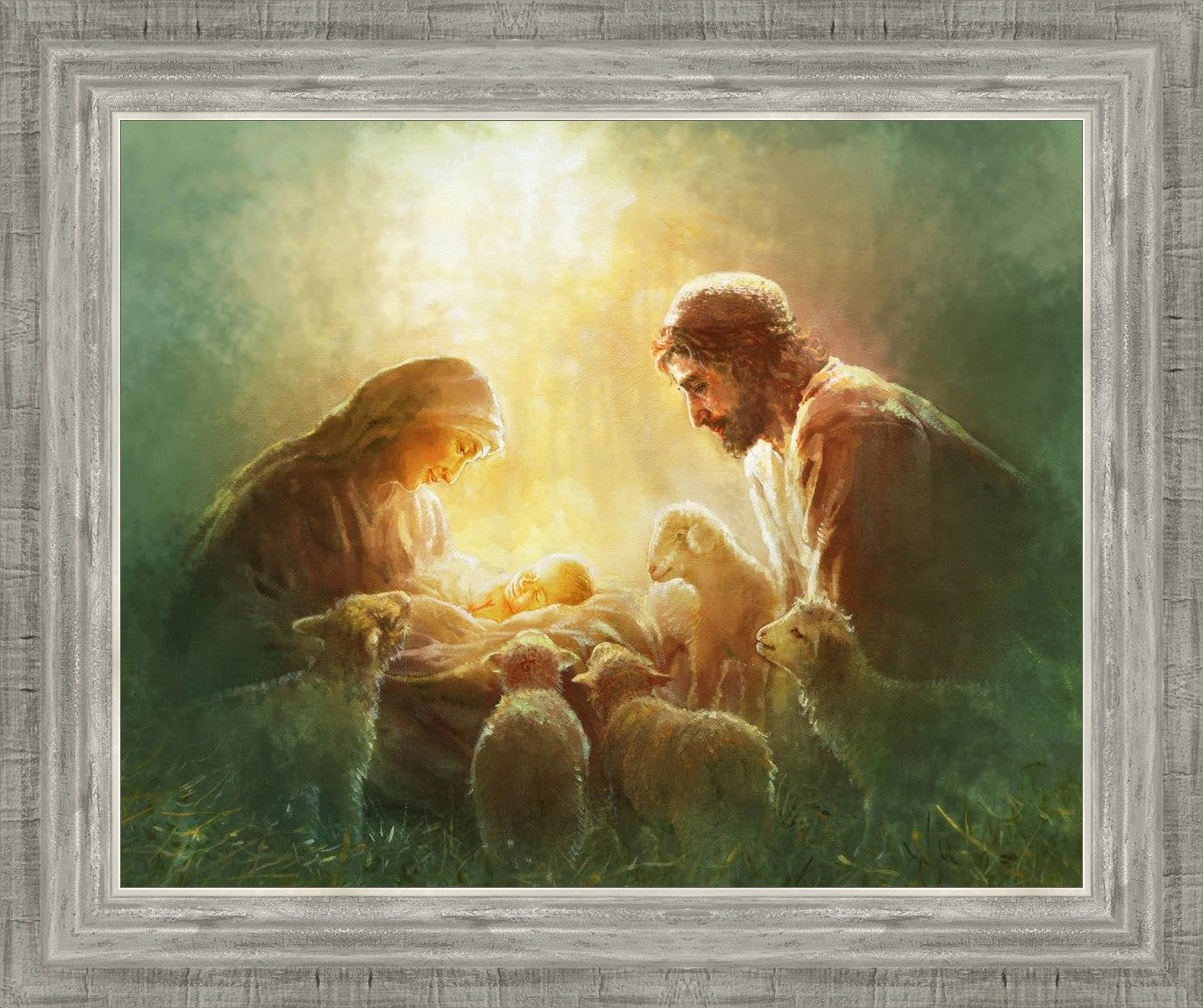 Immanuel by Yongsung Kim captures the serene moment of Mary and Joseph gazing at baby Jesus, evoking feelings of peace and joy.